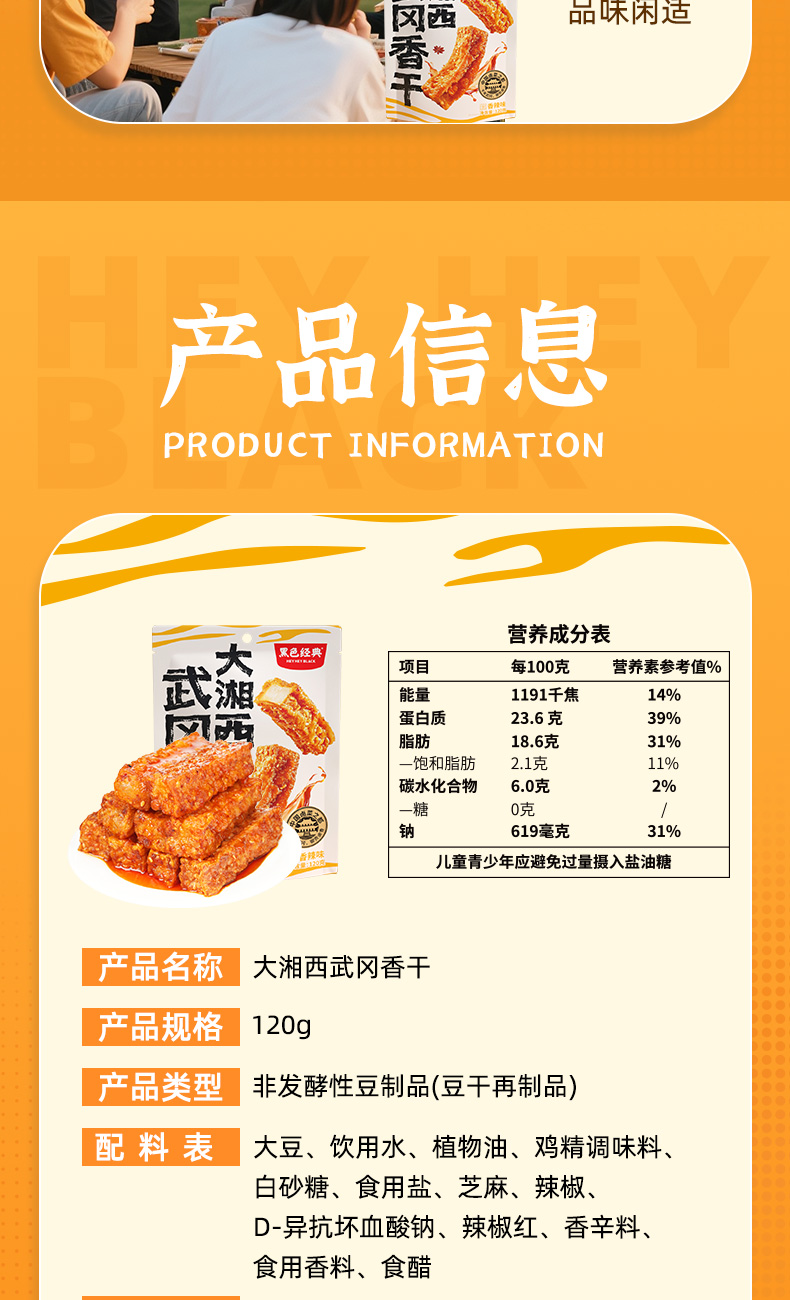 【新品尝鲜】黑色经典大湘西武冈虎皮香干香辣味120g/袋