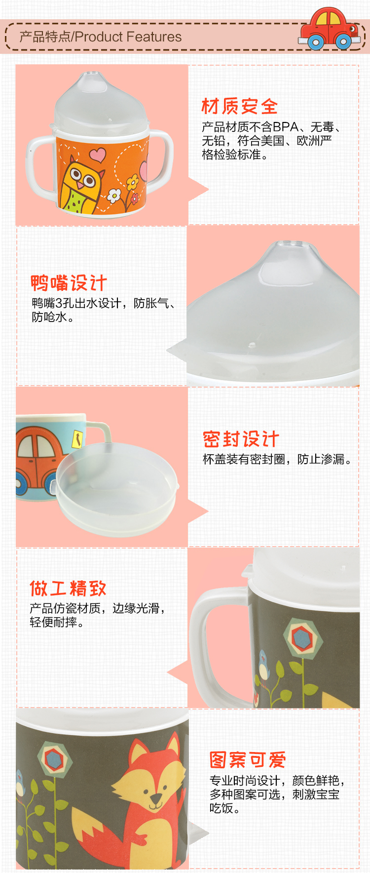 款式精致可爱,鸭嘴防呛,胶圈防漏,重量轻,手柄好握