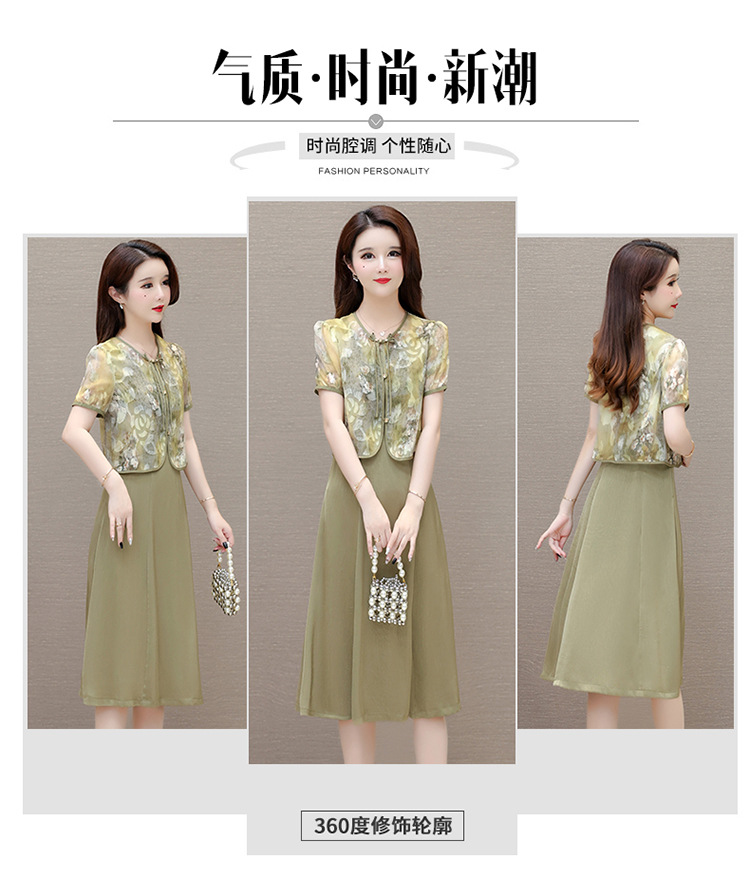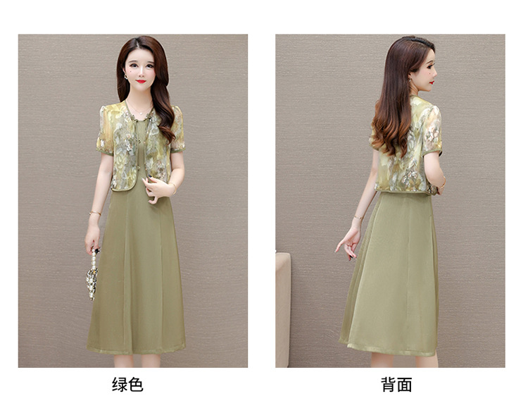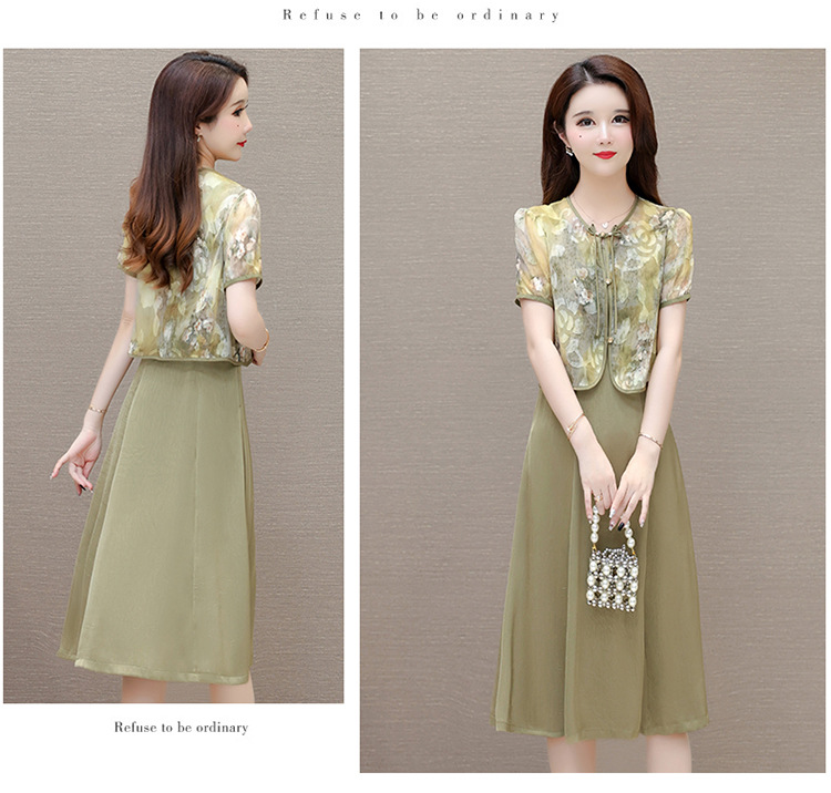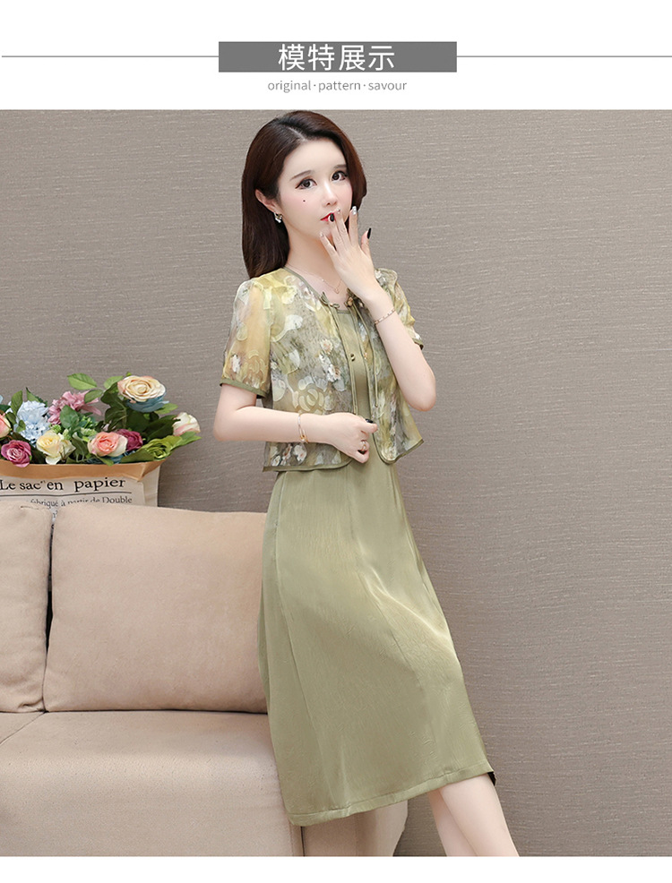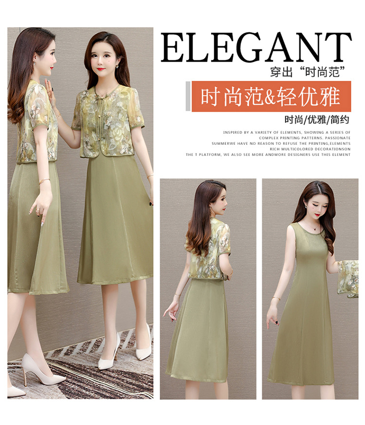 时尚两件套连衣裙,印花短袖外套+内搭无袖连衣裙QYM- LRX-822472-Y