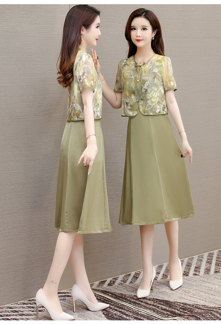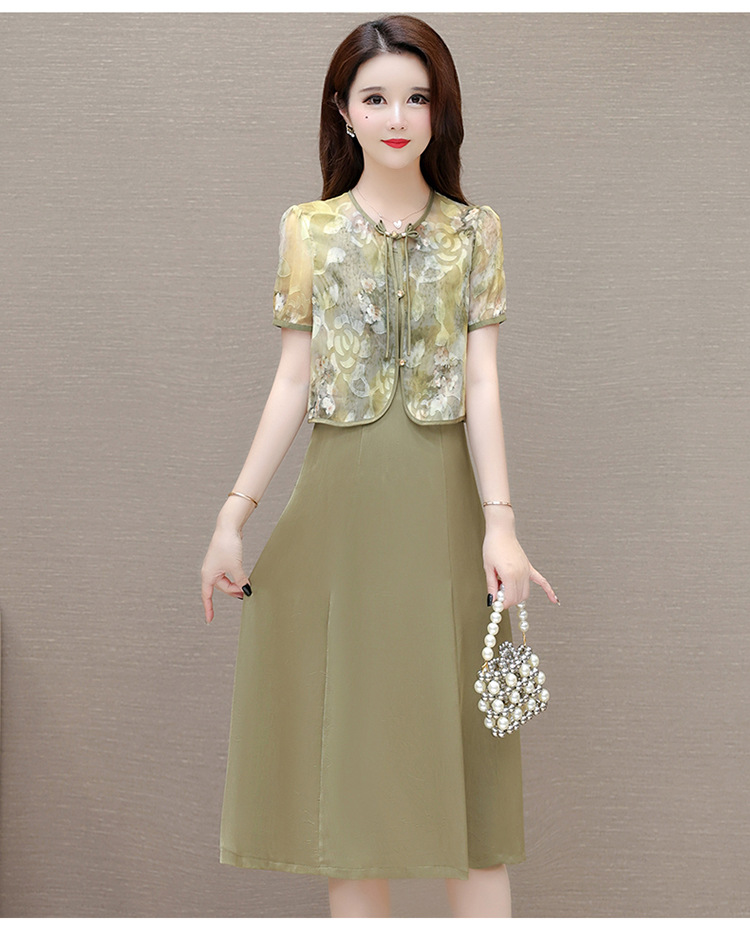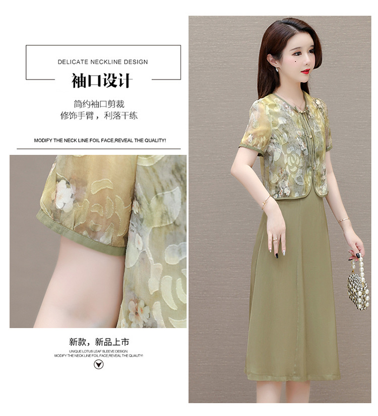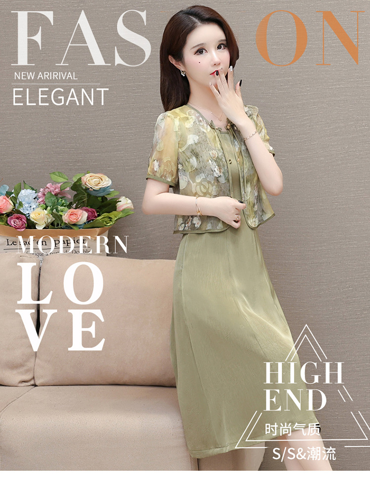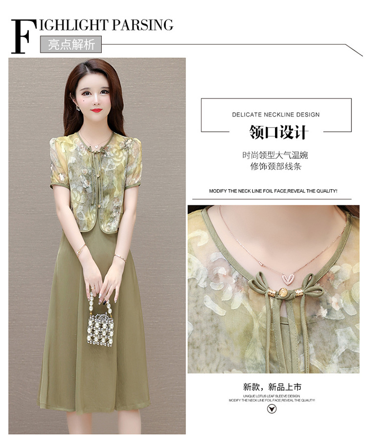 时尚两件套连衣裙,印花短袖外套+内搭无袖连衣裙QYM- LRX-822472-Y