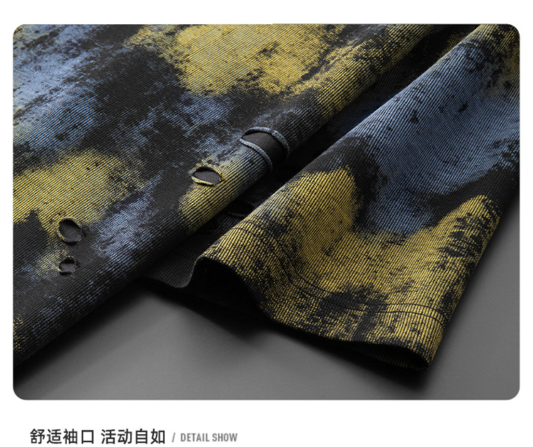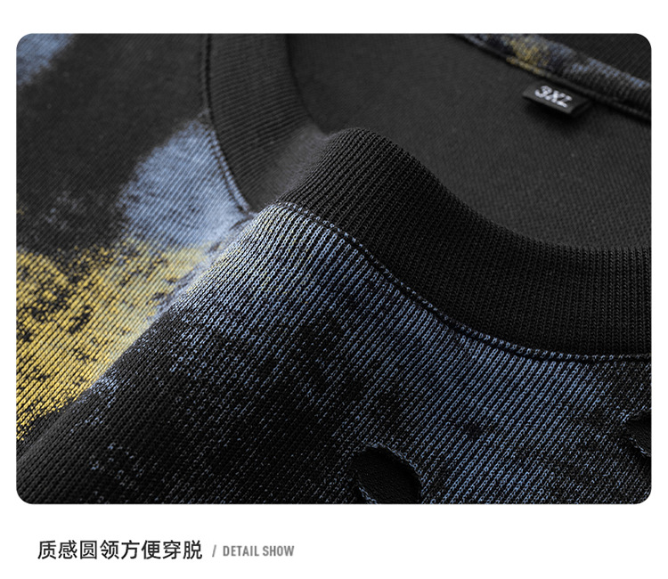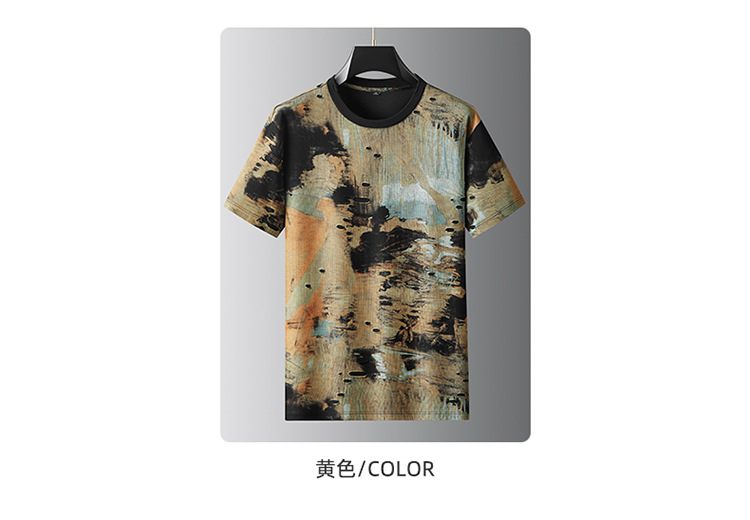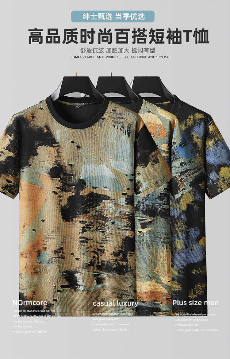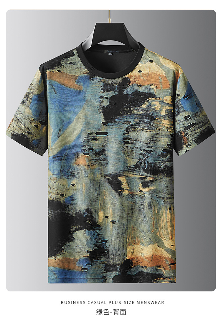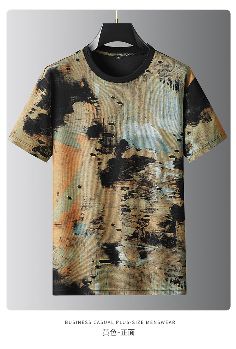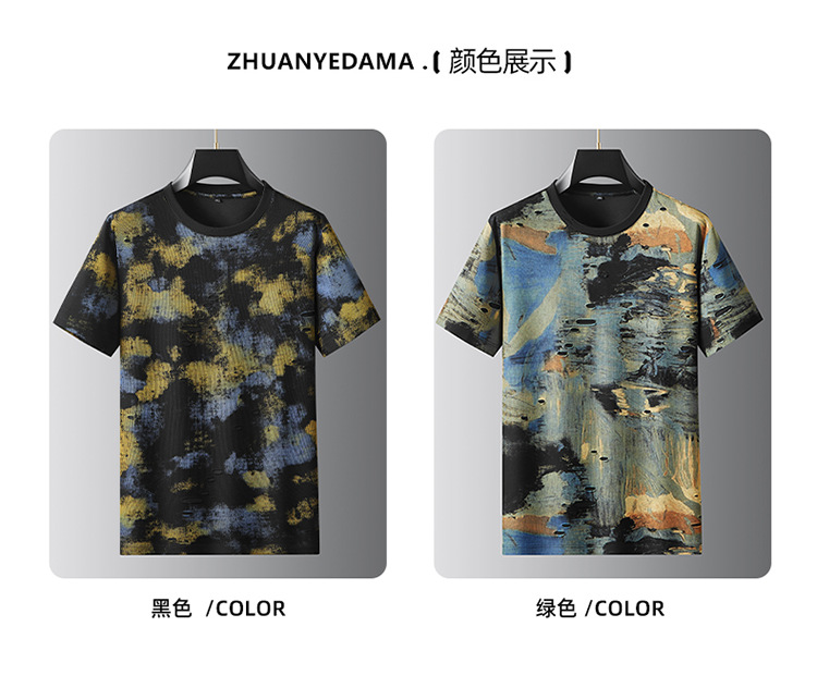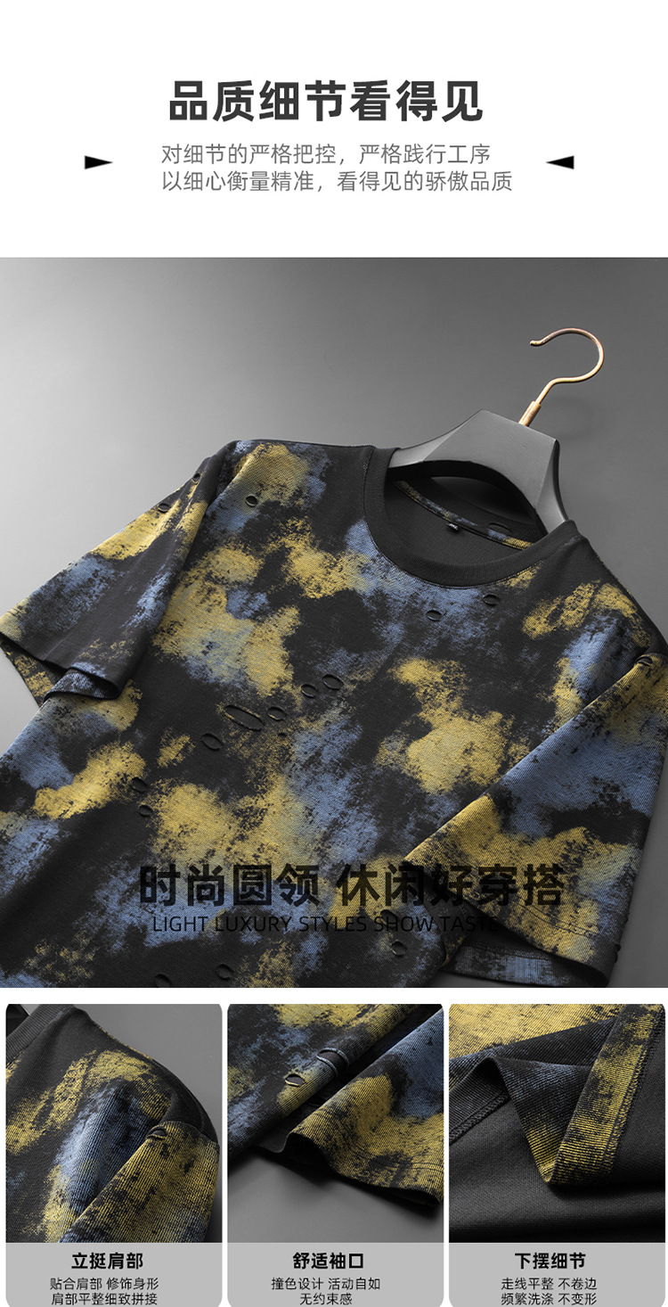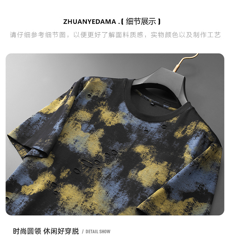 【破洞设计】【DDA】大依优型大码短袖T恤夏季圆领半袖加肥加大码高克重重工扎染短袖上衣
