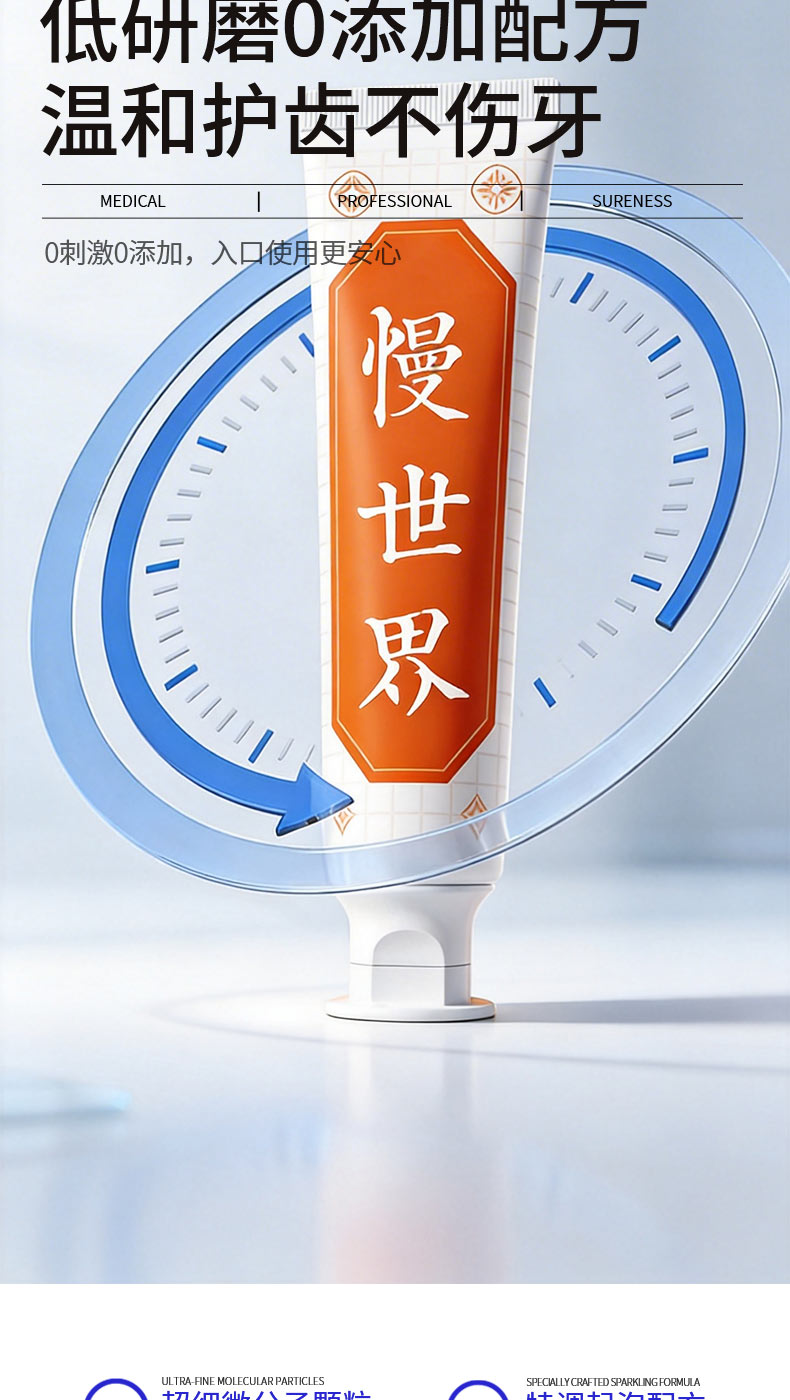 慢世界速感白牙膏成人热感美白去黄男士去烟渍去口臭官方正品PA