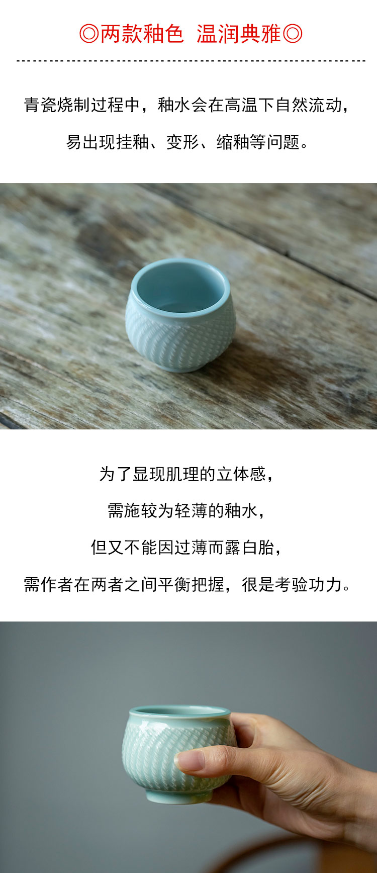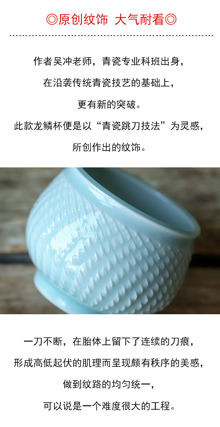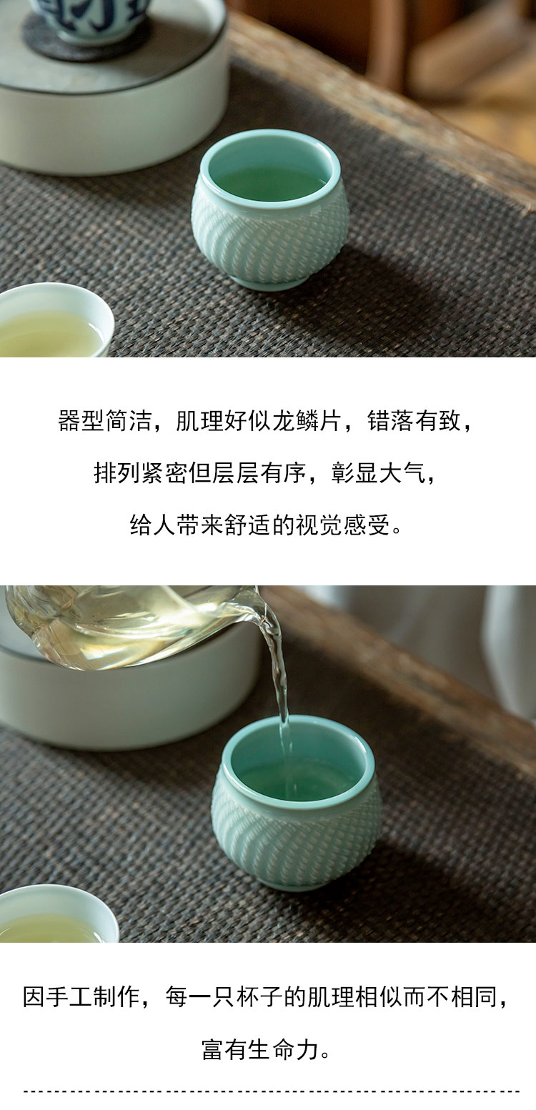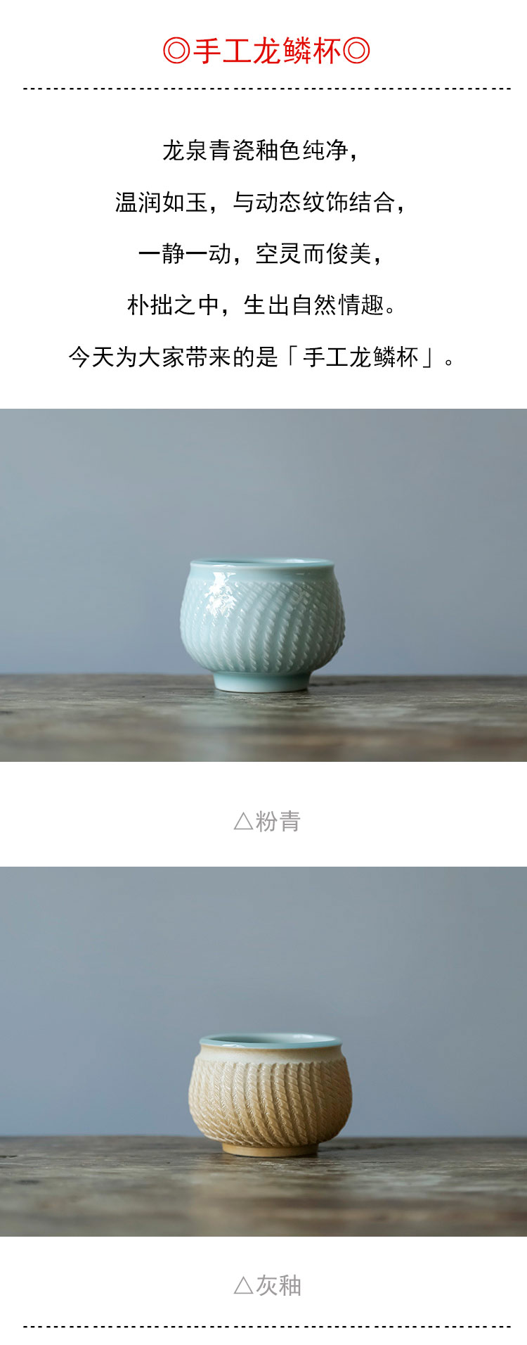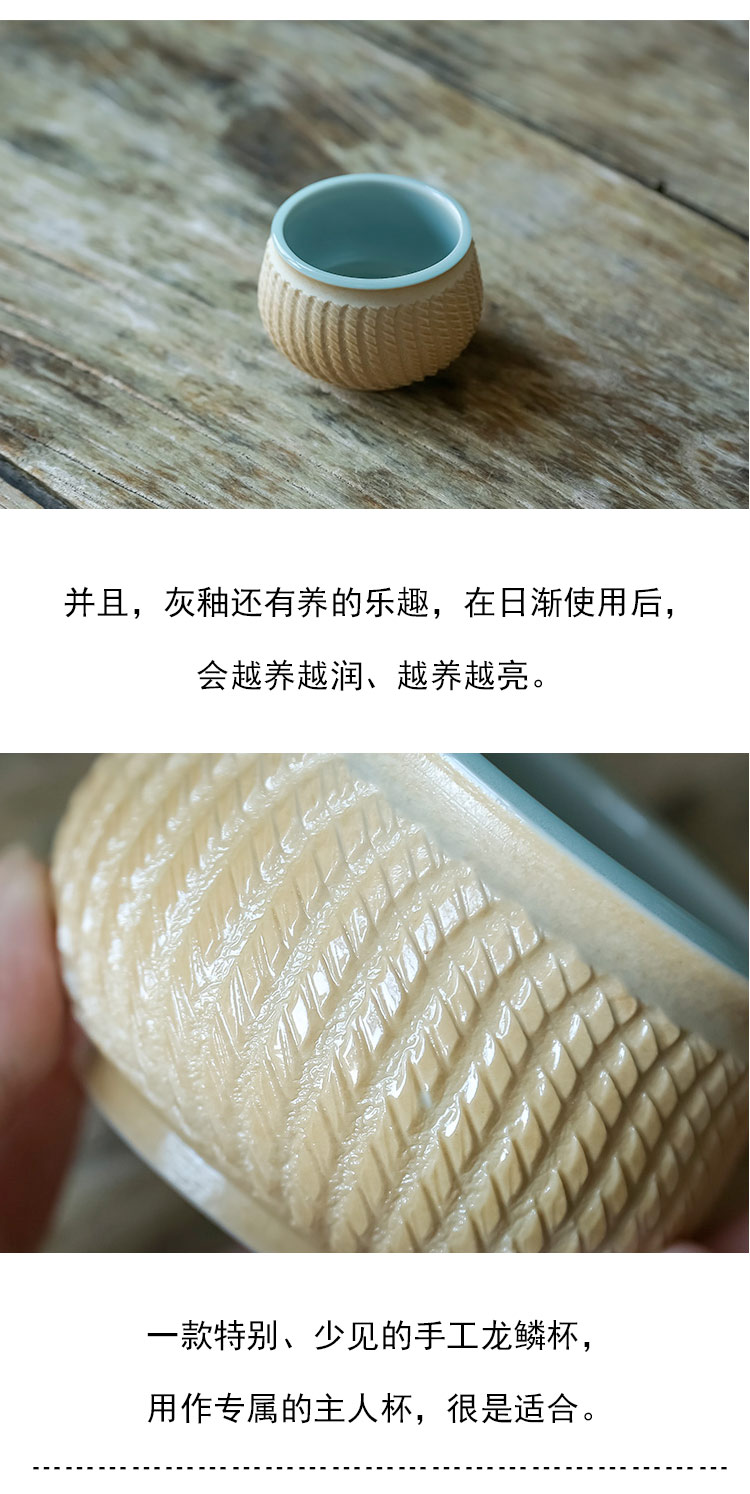 茶香记 手工龙鳞杯90ml吴冲粉青釉灰釉原创纹饰大气耐看茶杯品杯