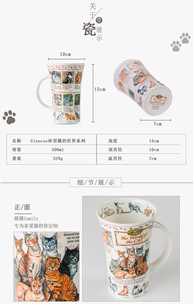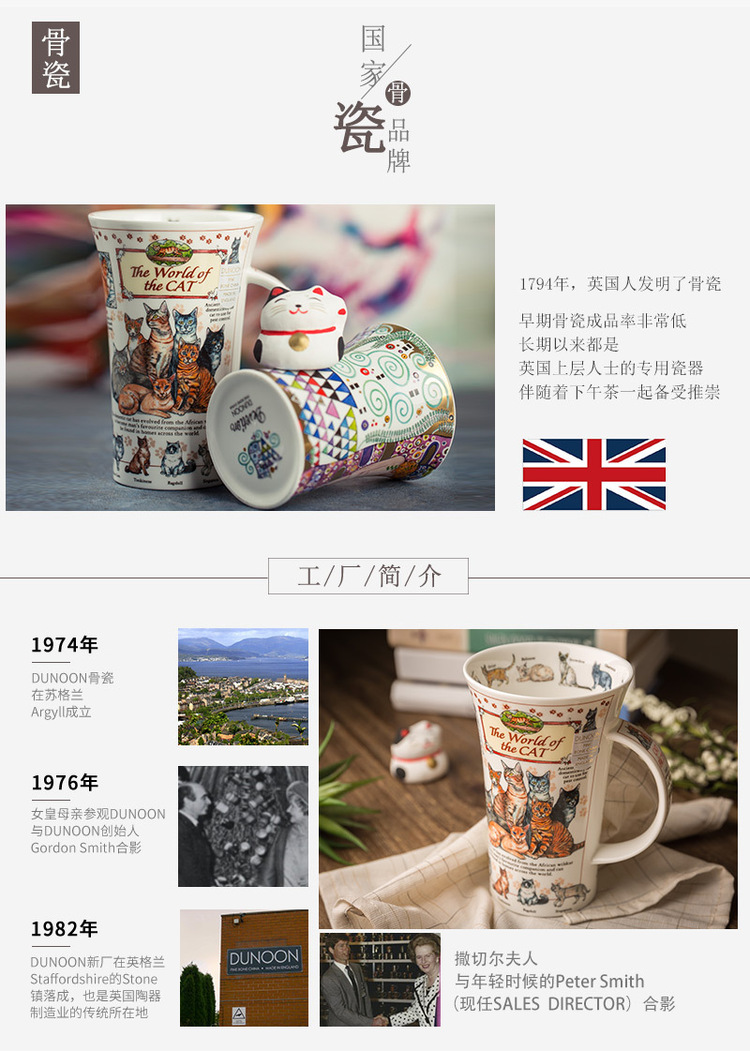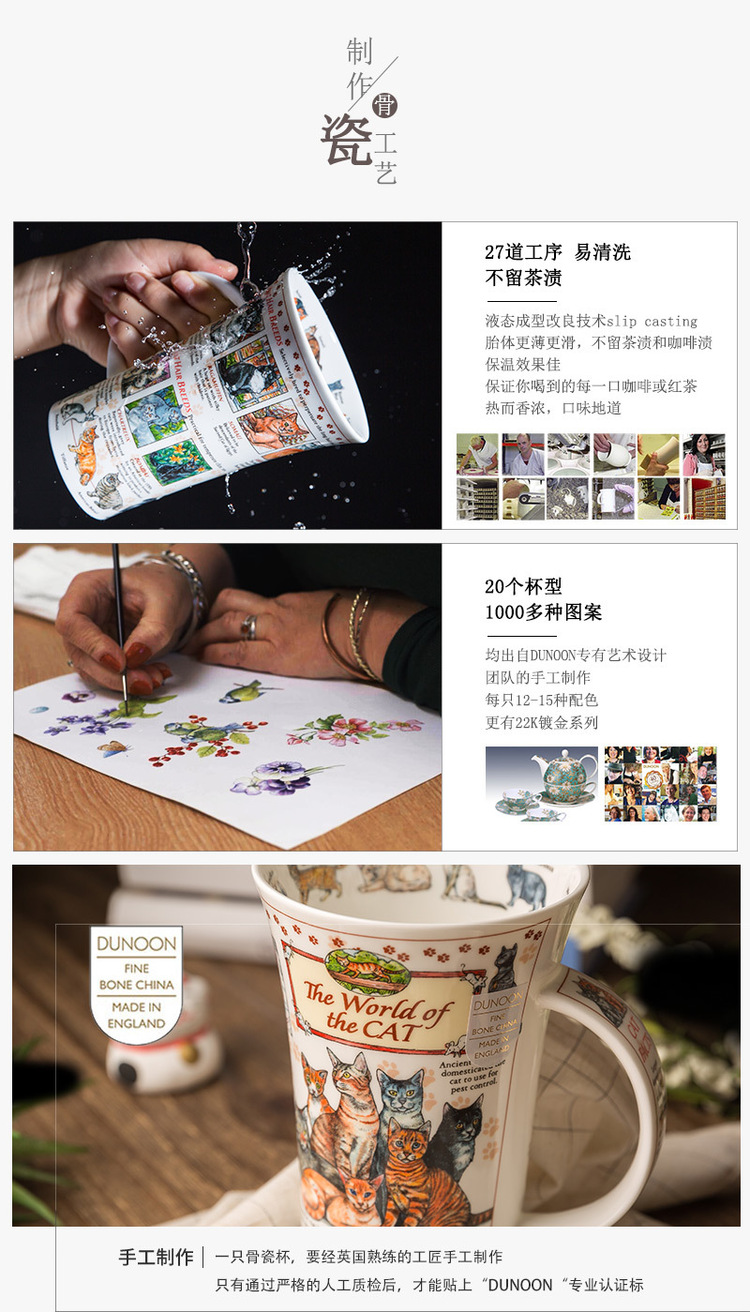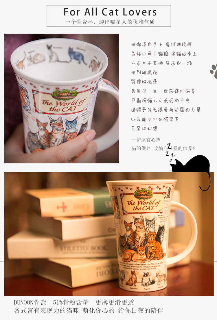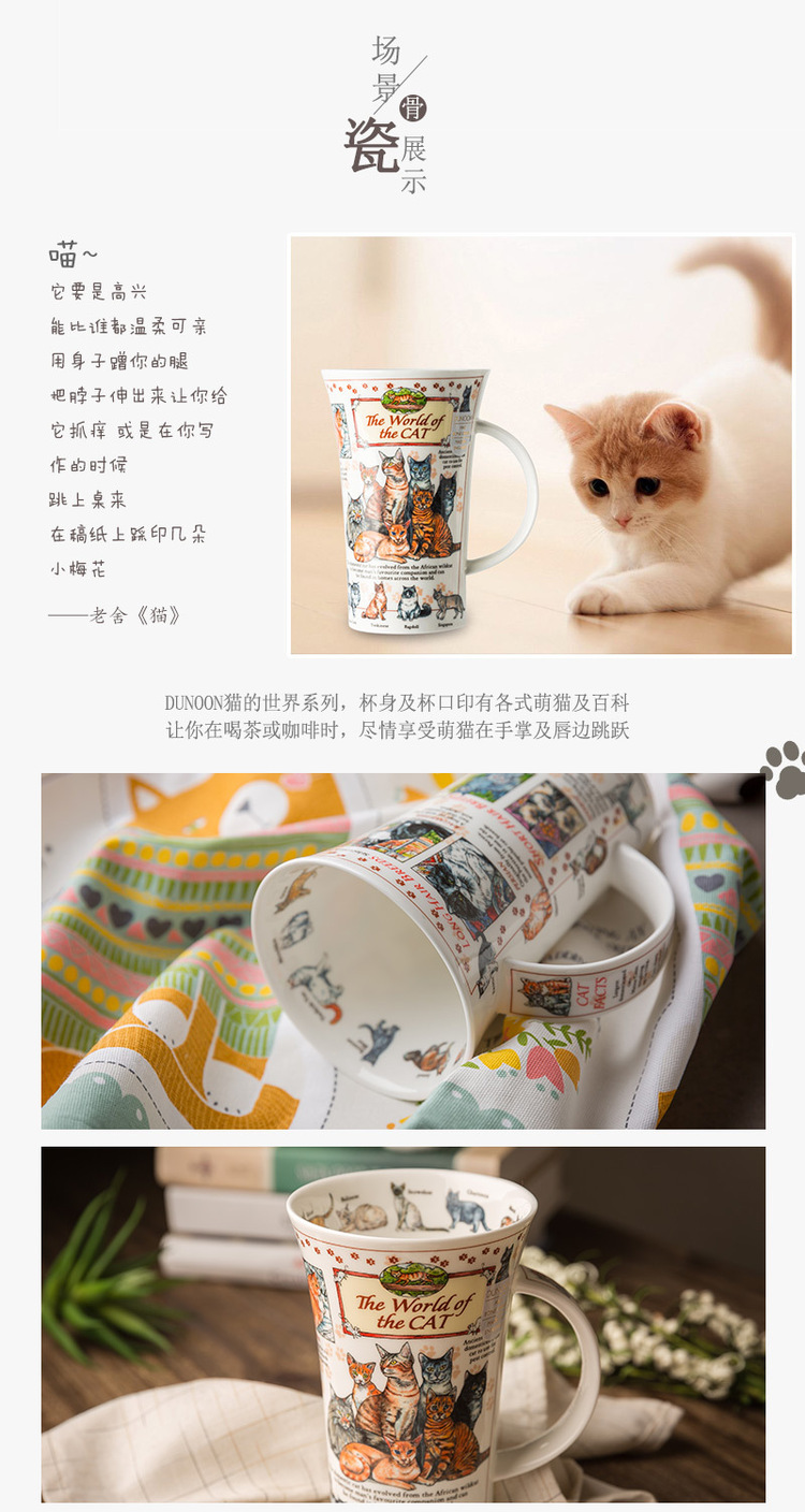 英国DUNOON丹侬峡谷型骨瓷马克杯猫的世界 蓝色礼盒