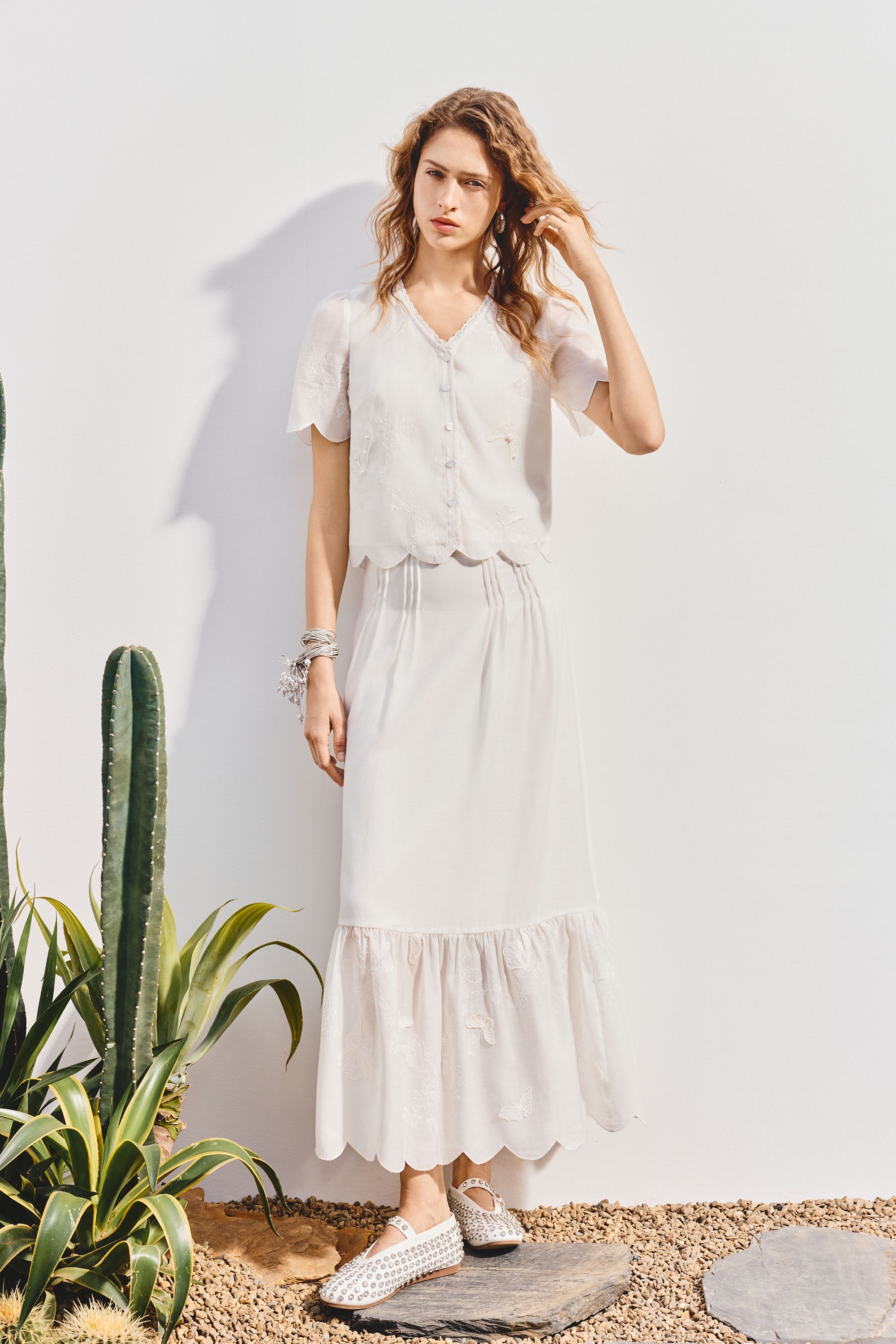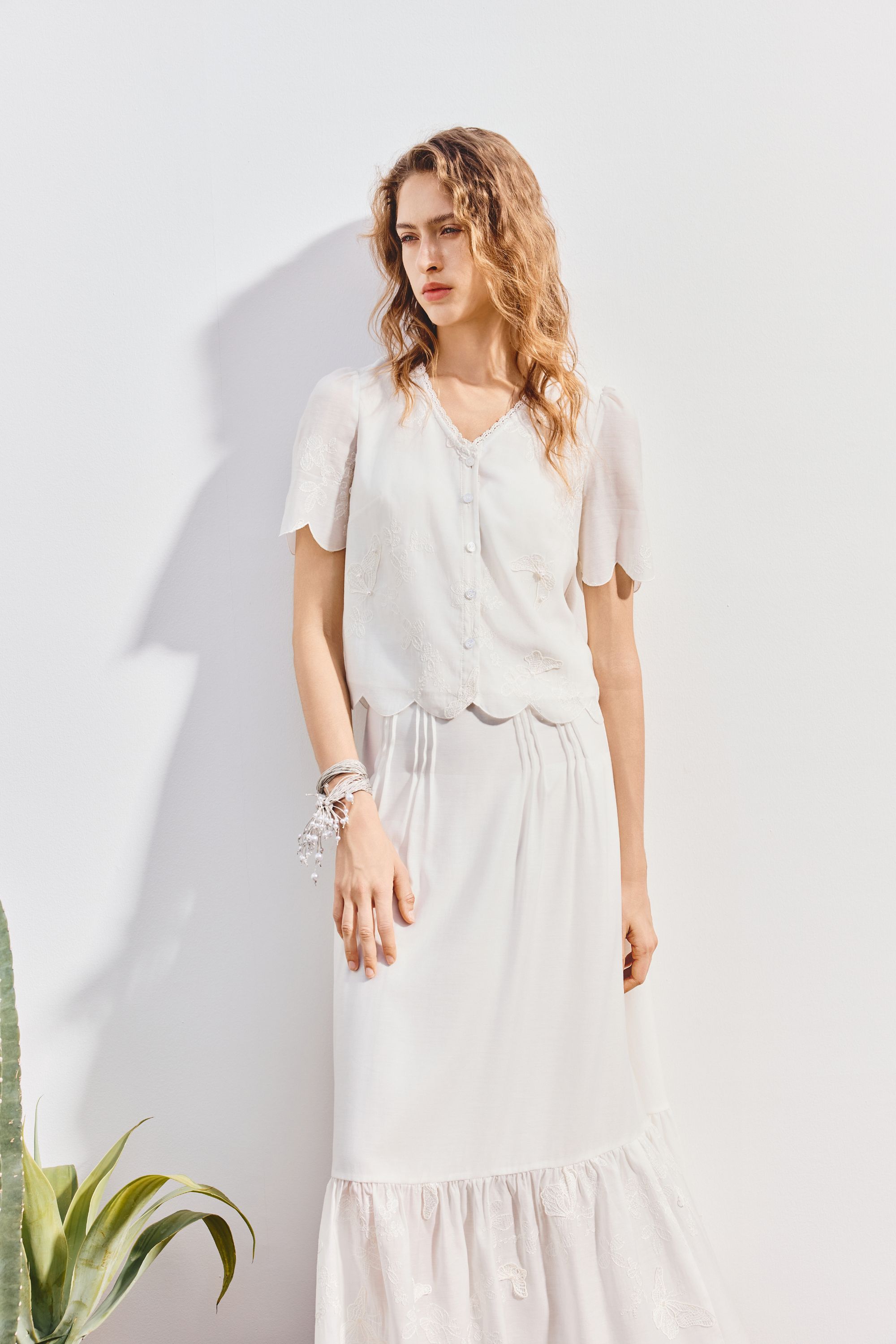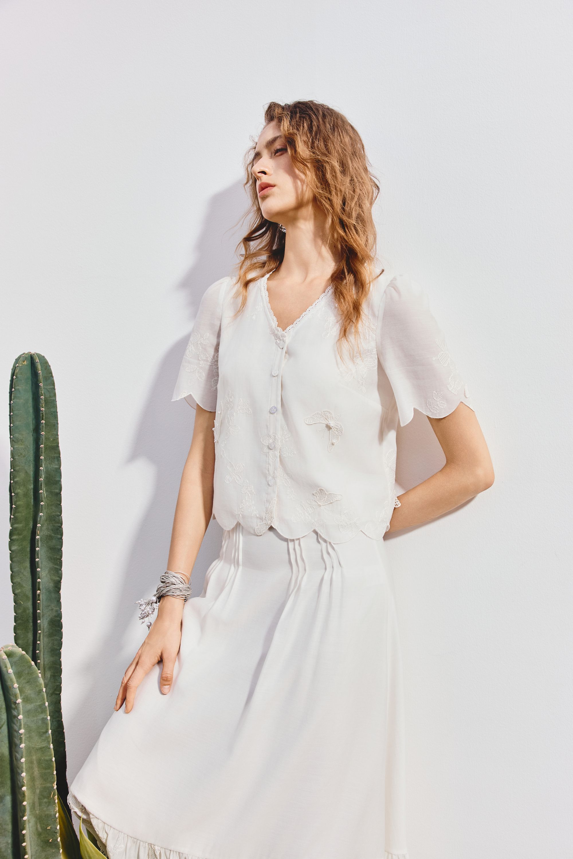 MAXRIENY2025年夏季新款刺绣蝴蝶小衫蕾丝白色百搭精致小香风(货号:MF86TP265)