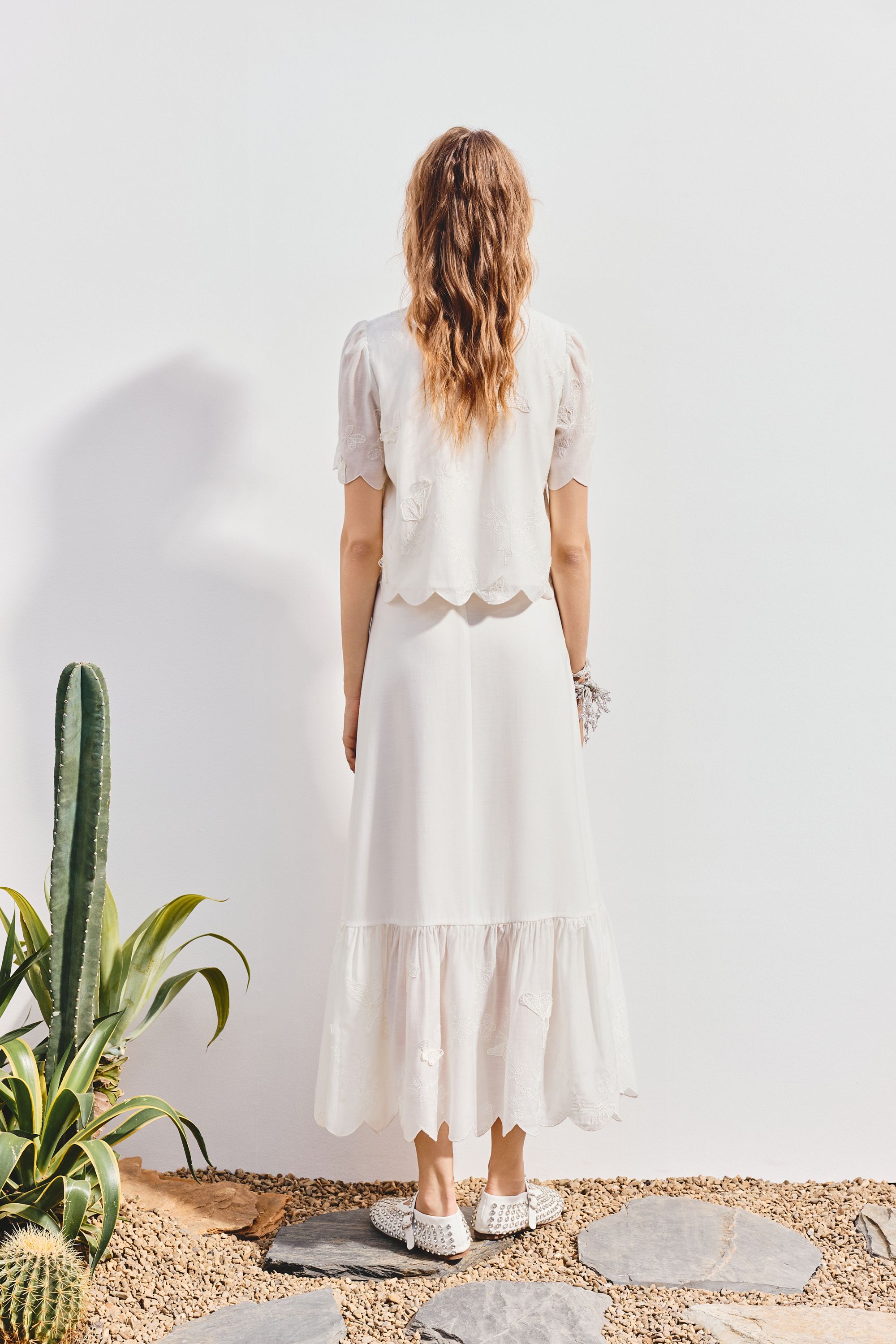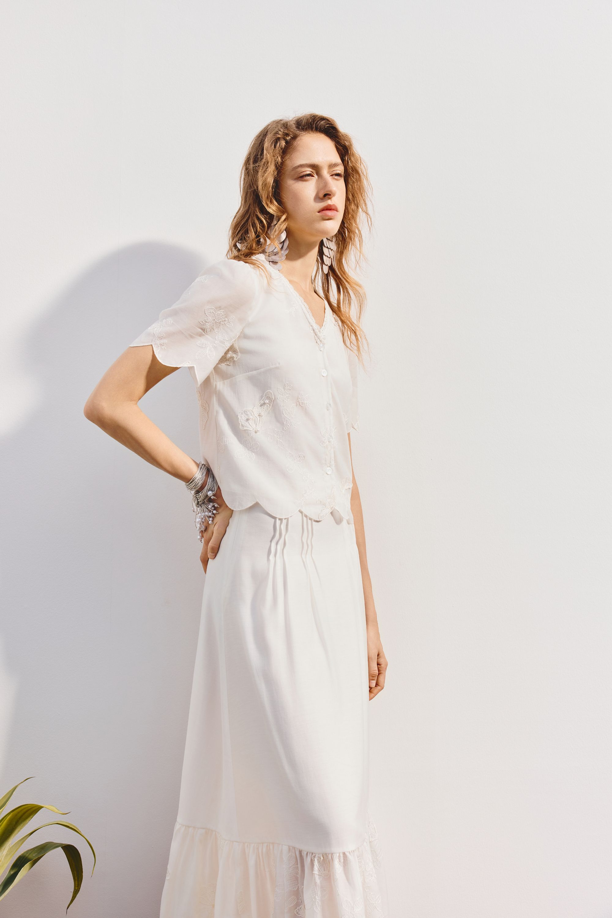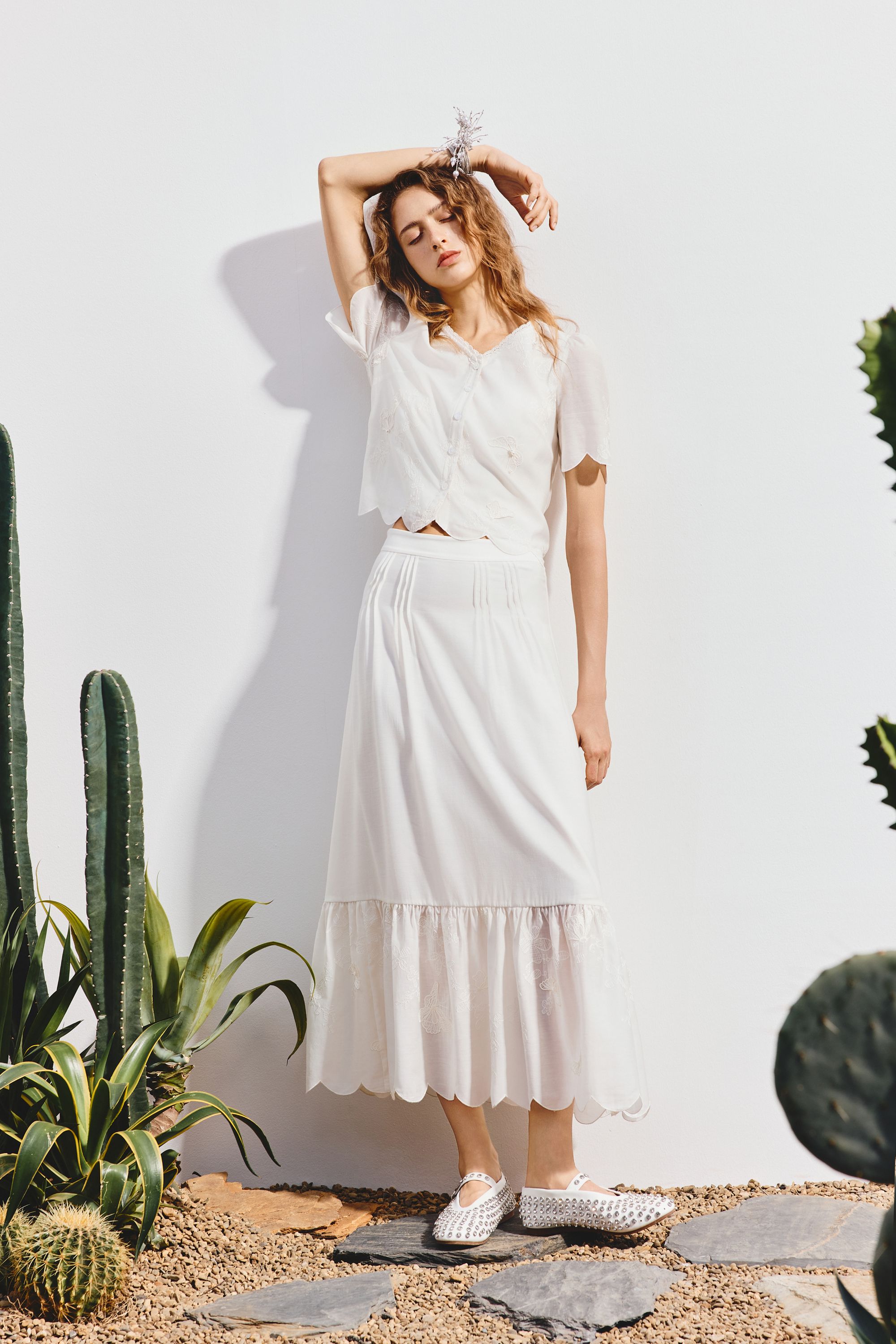 MAXRIENY2025年夏季新款刺绣蝴蝶小衫蕾丝白色百搭精致小香风(货号:MF86TP265)