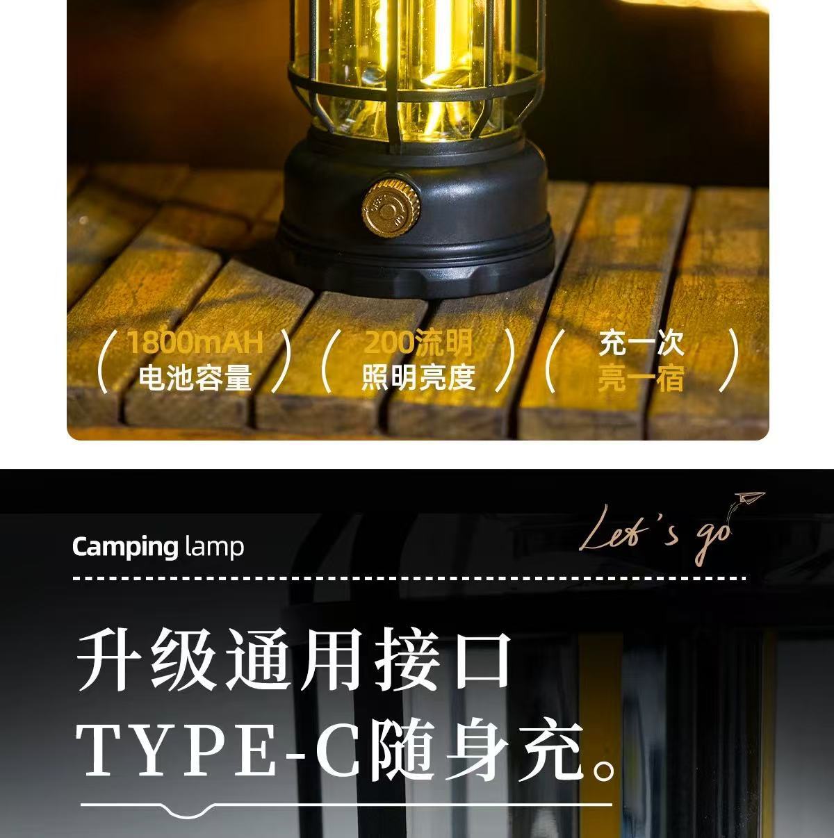 【超长续航!抗造材质】露营户外照明灯照明马灯超长续航复古野营可充电营地氛围帐篷挂式.xb