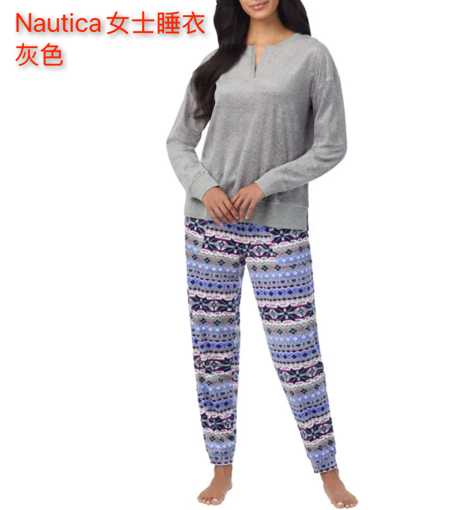 到手价229元 Nautica诺帝卡女士睡衣家居服舒适柔软休闲长袖套装 美国代购,无中文标签,介意慎拍