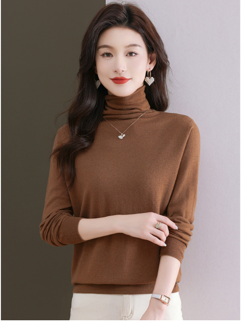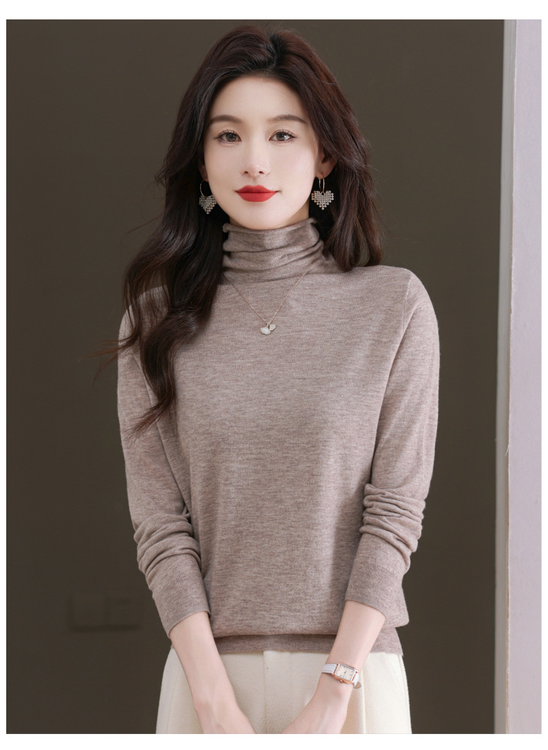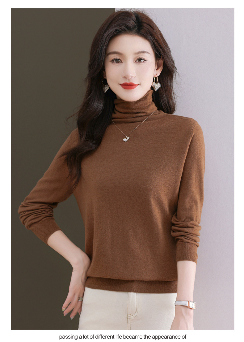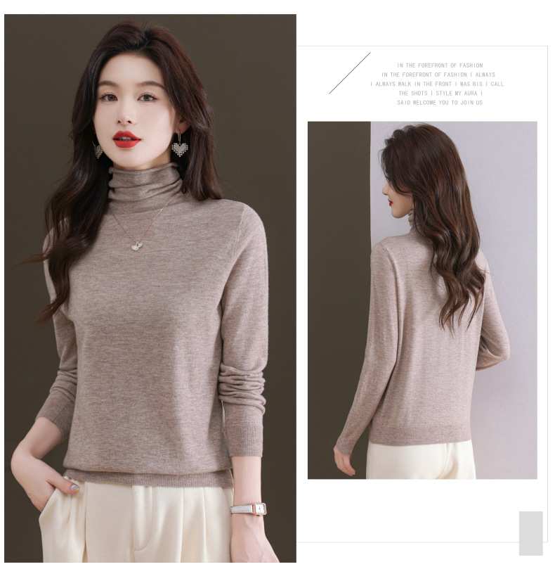 CC-101-807秋冬新款100纯羊毛衫针织堆堆领打底女毛衣内搭纯色长袖上衣