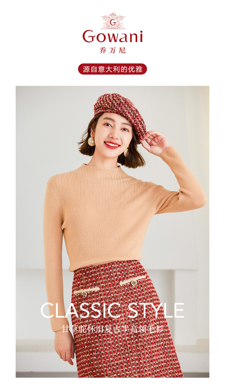 乔万尼针织衫上衣女秋冬打底衫100%绵羊毛ET4M965