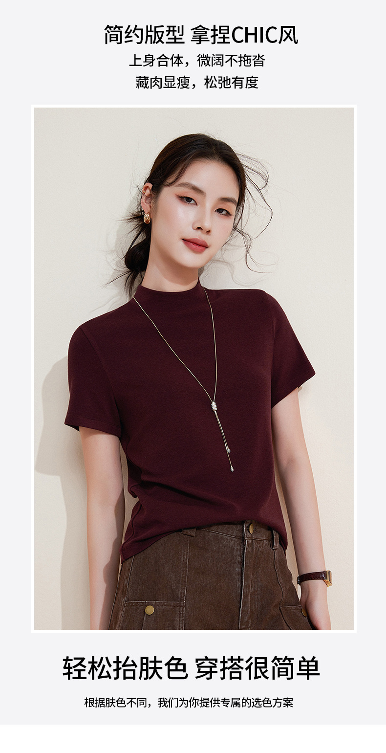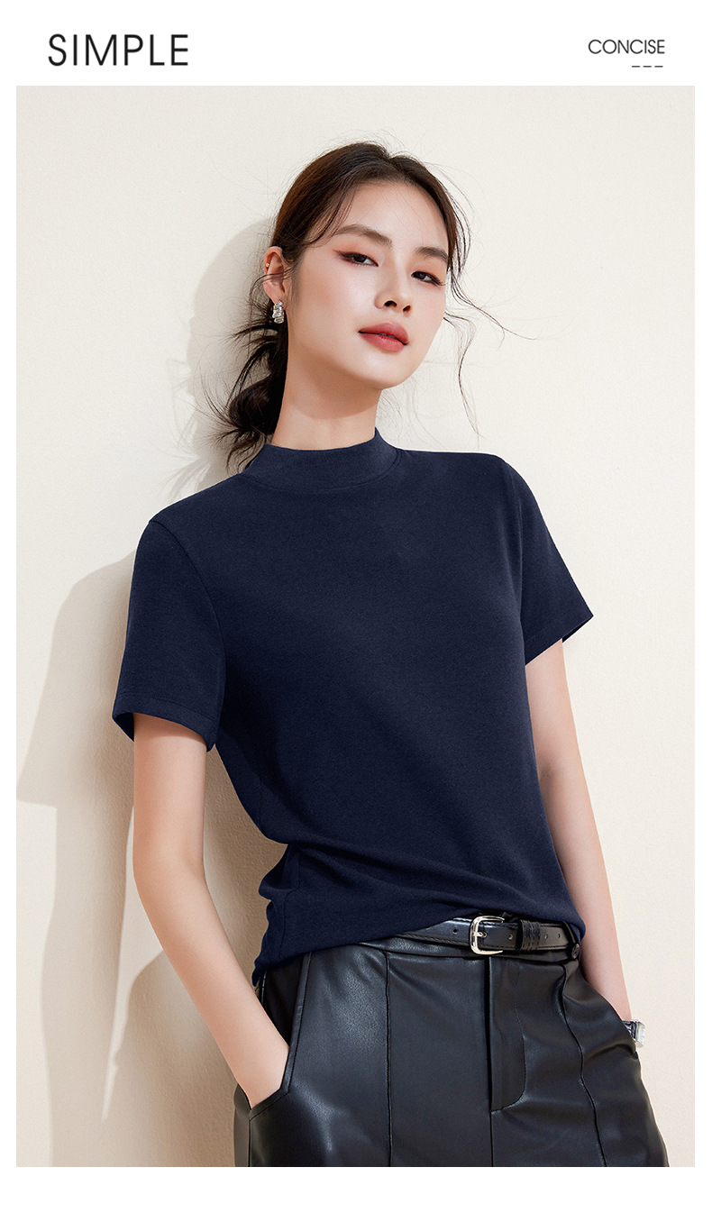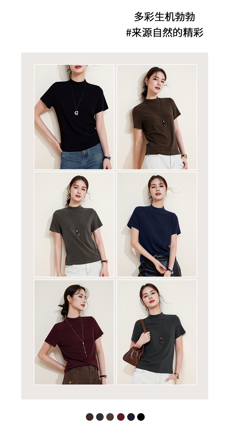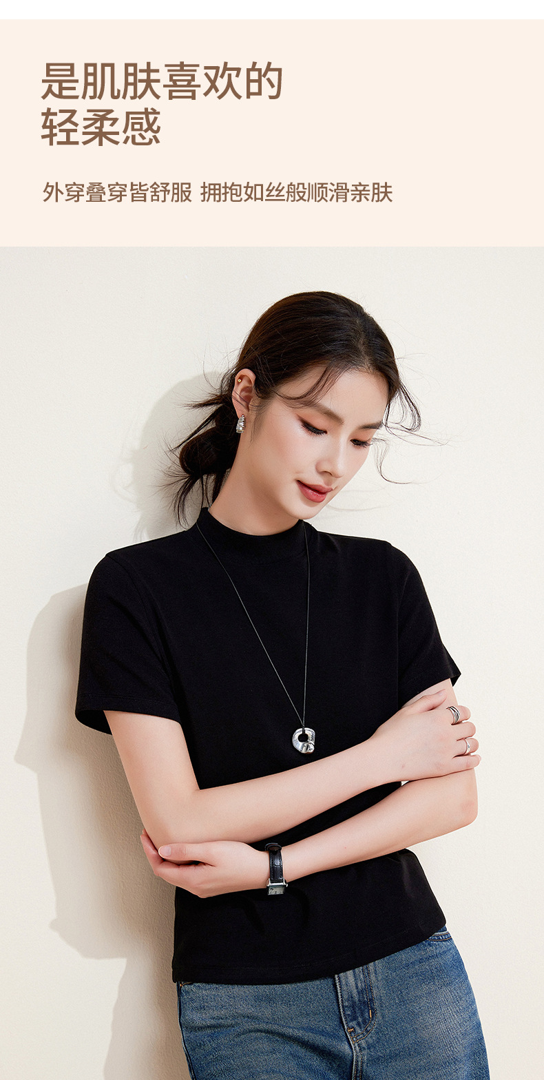 百媚生 中领绵羊毛打底衫女薄款内搭半高领修身上衣M947 商品图2