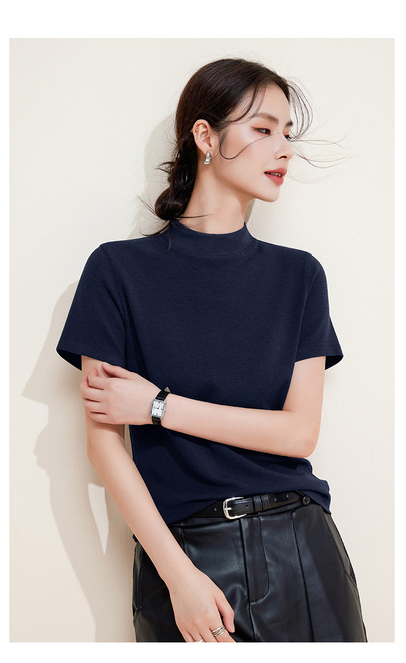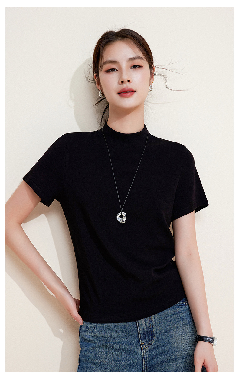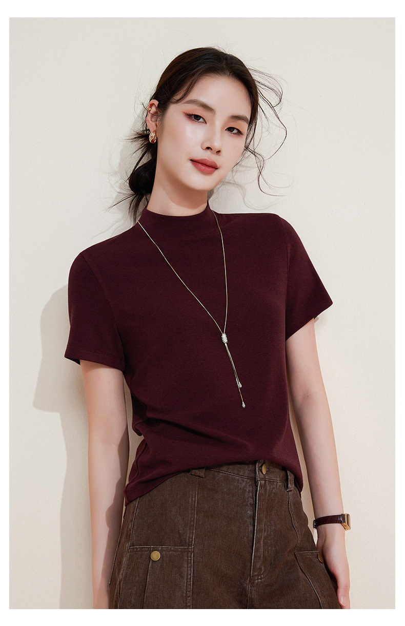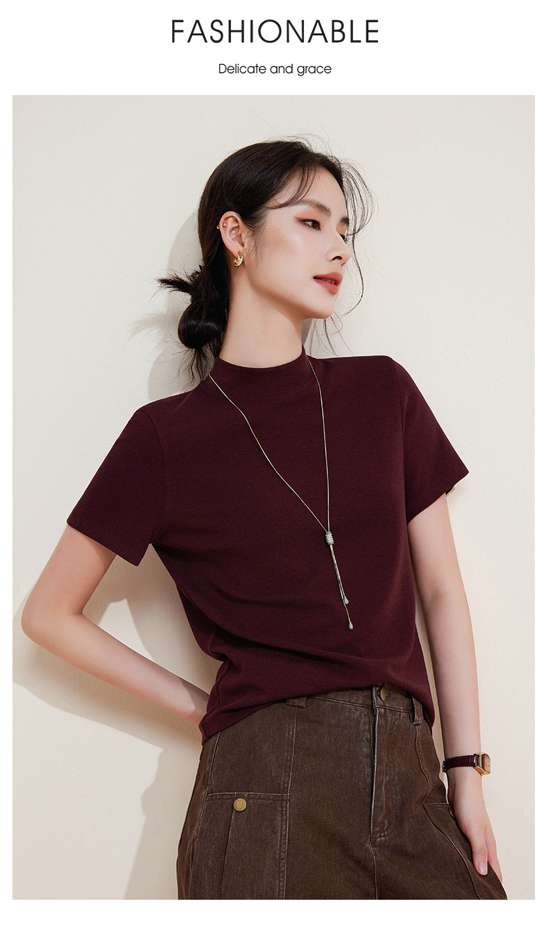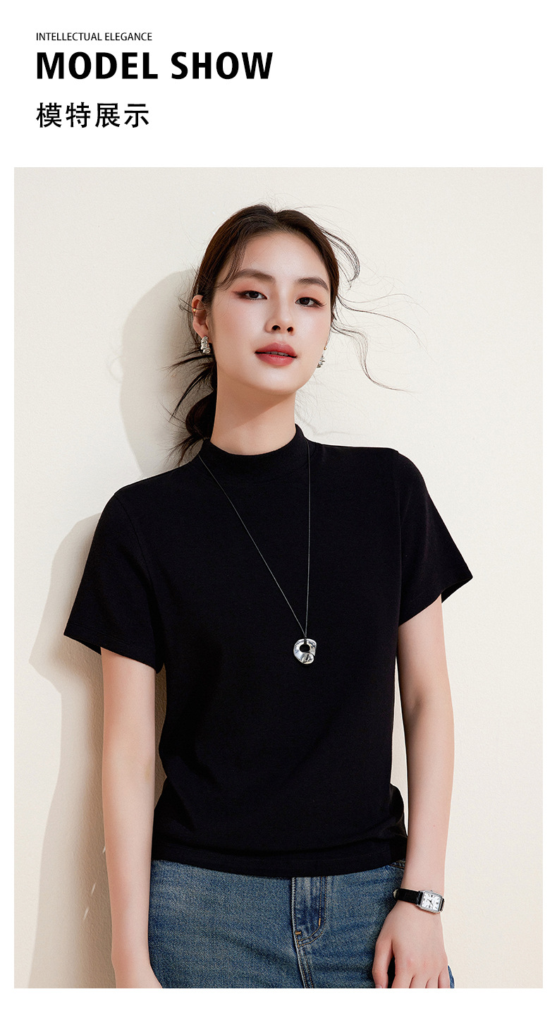 百媚生 中领绵羊毛打底衫女薄款内搭半高领修身上衣M947 商品图2