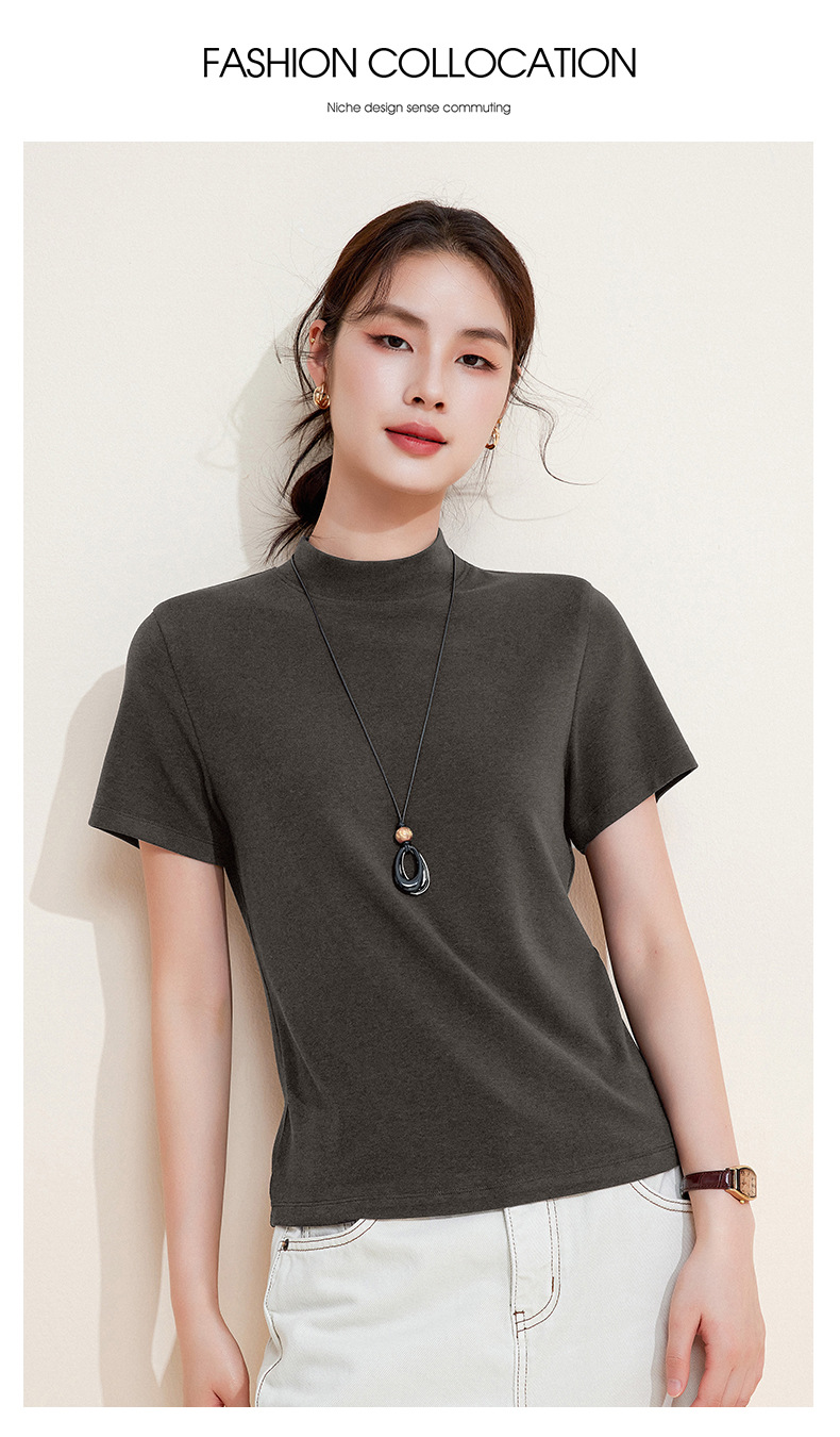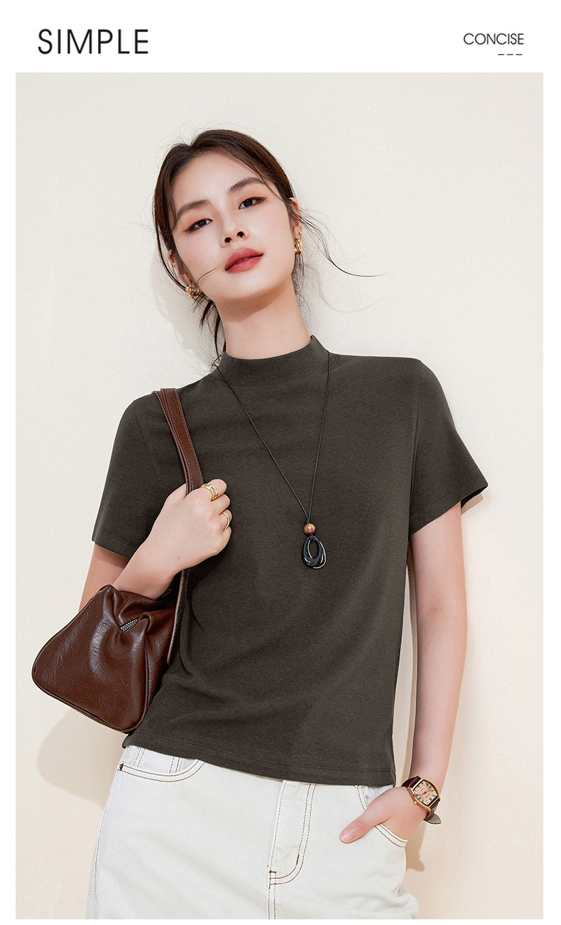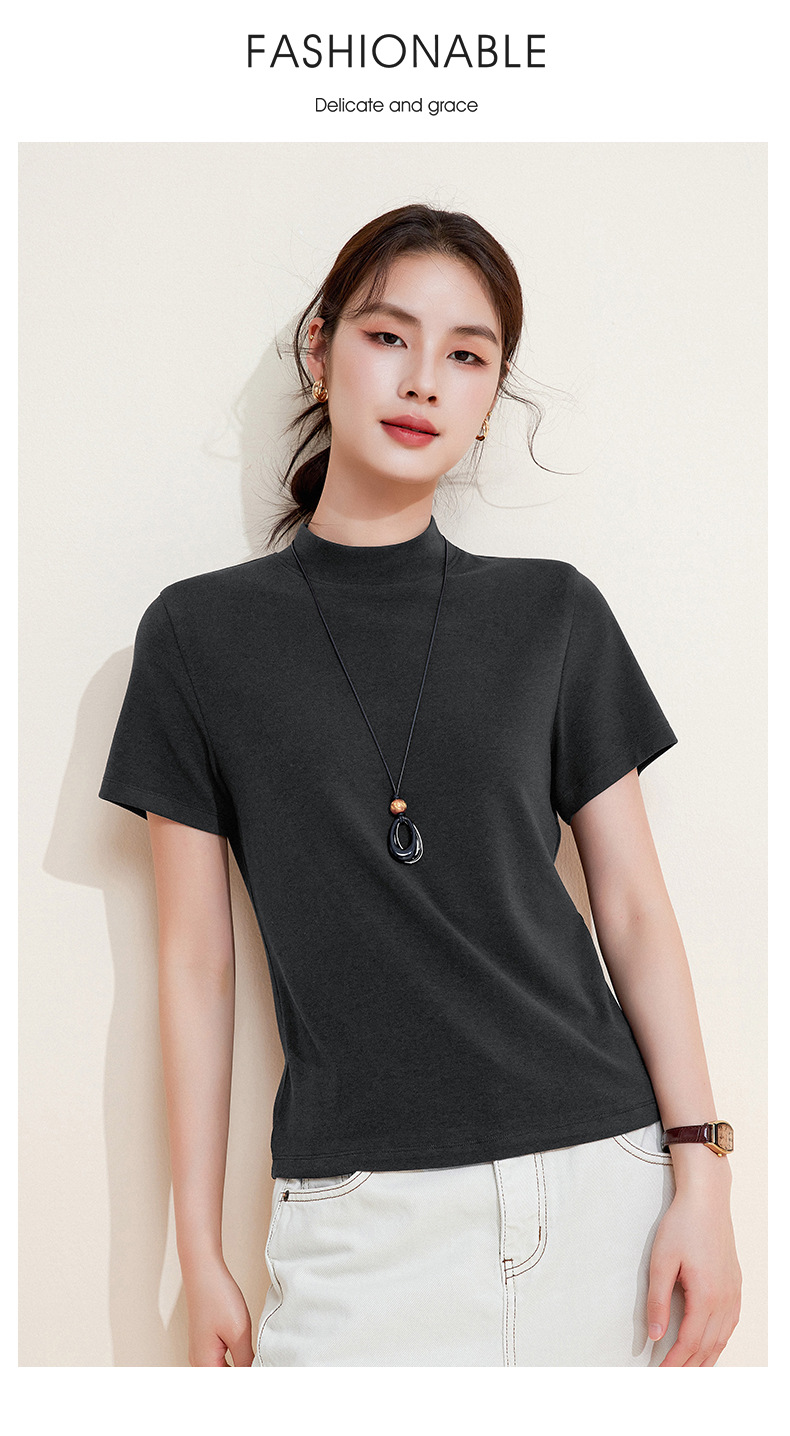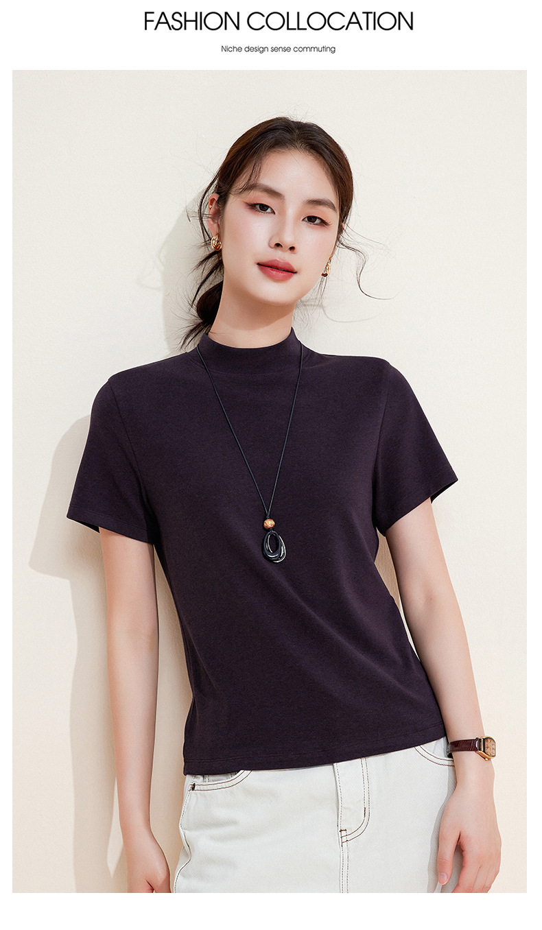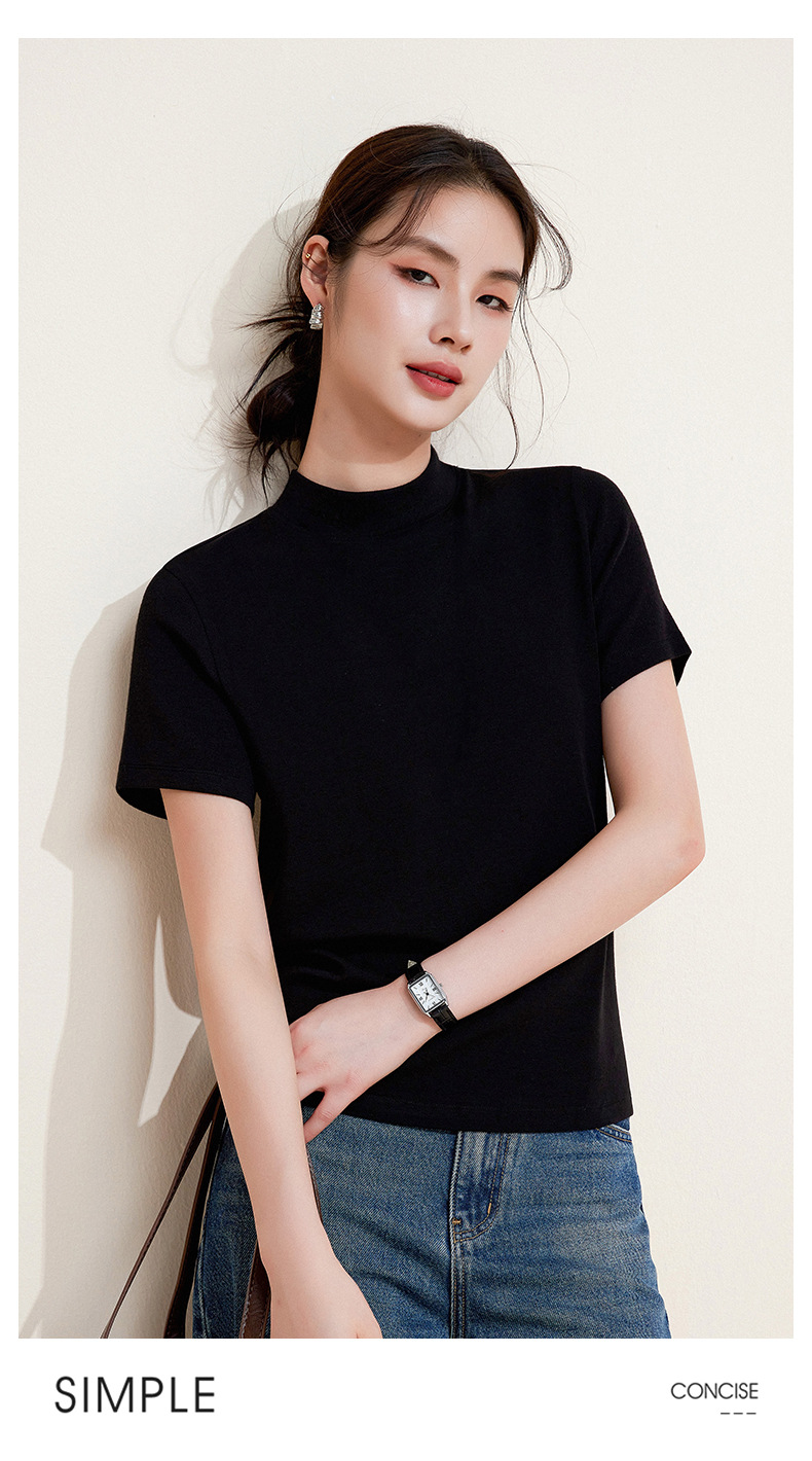 百媚生 中领绵羊毛打底衫女薄款内搭半高领修身上衣M947 商品图2