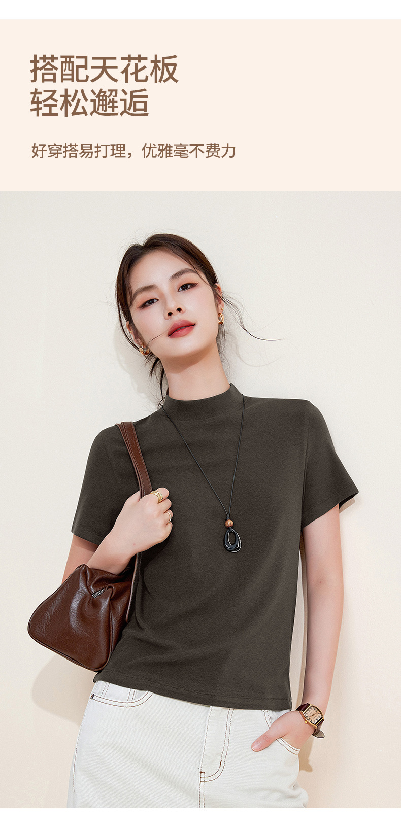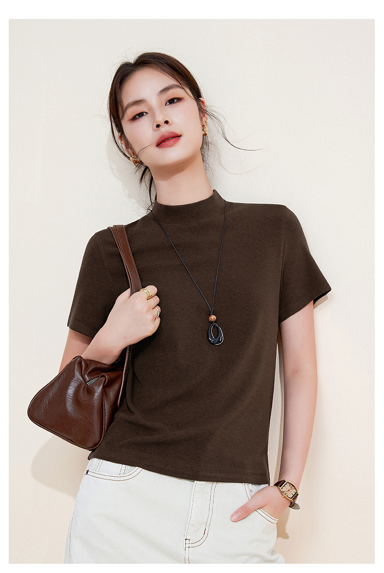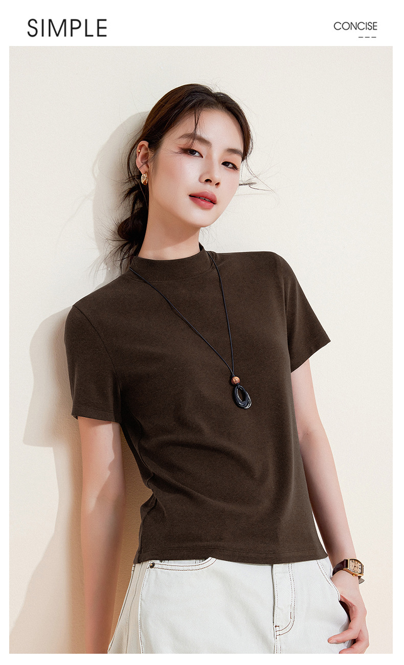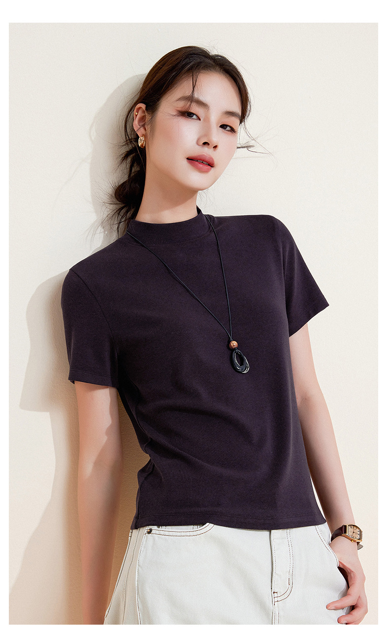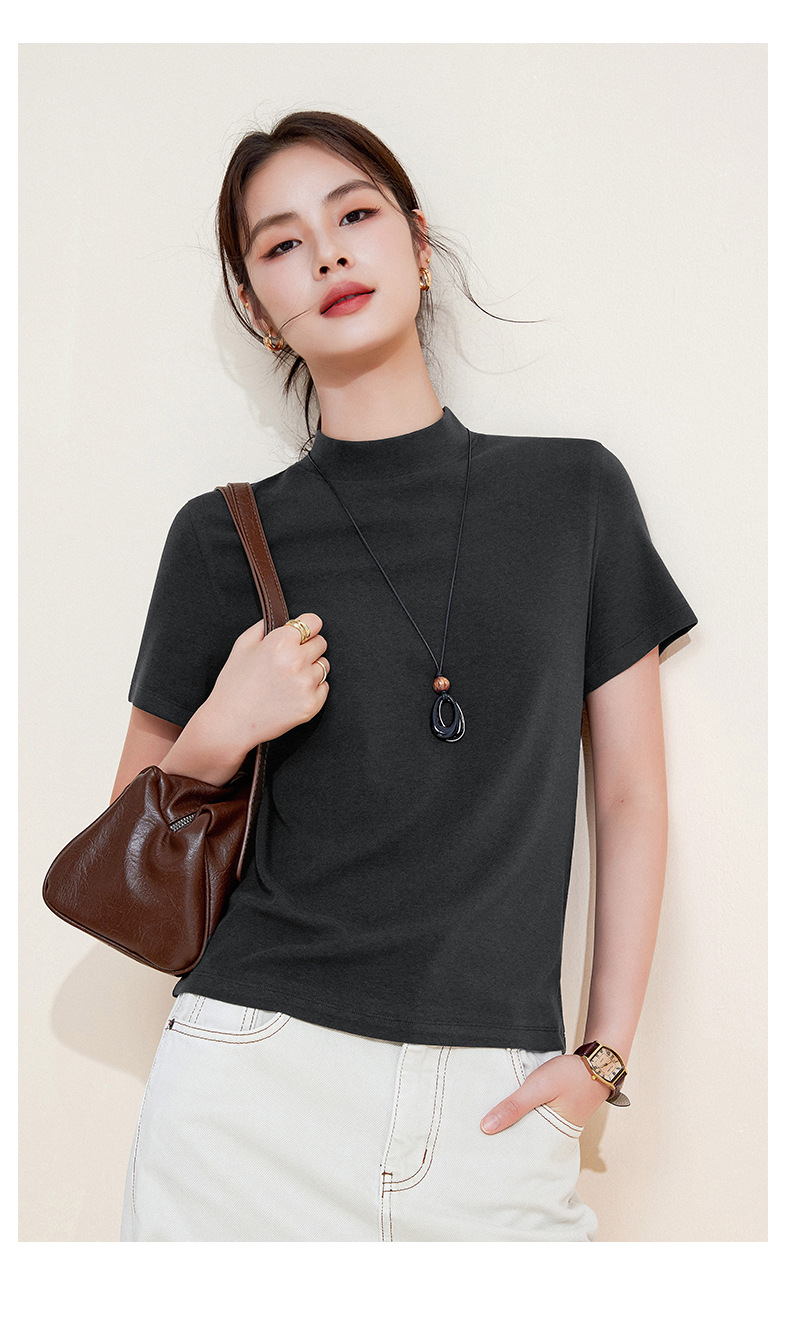 百媚生 中领绵羊毛打底衫女薄款内搭半高领修身上衣M947 商品图2