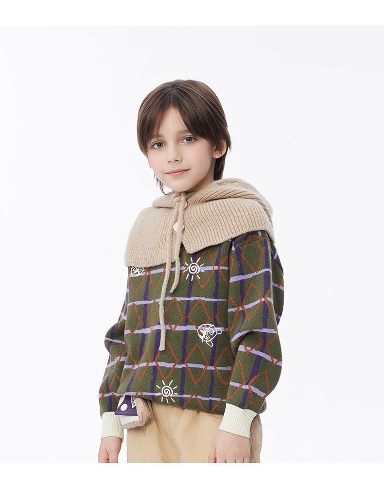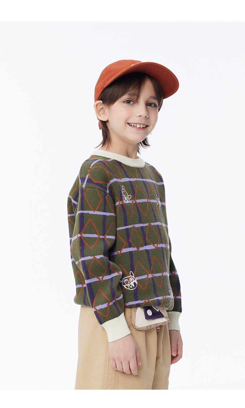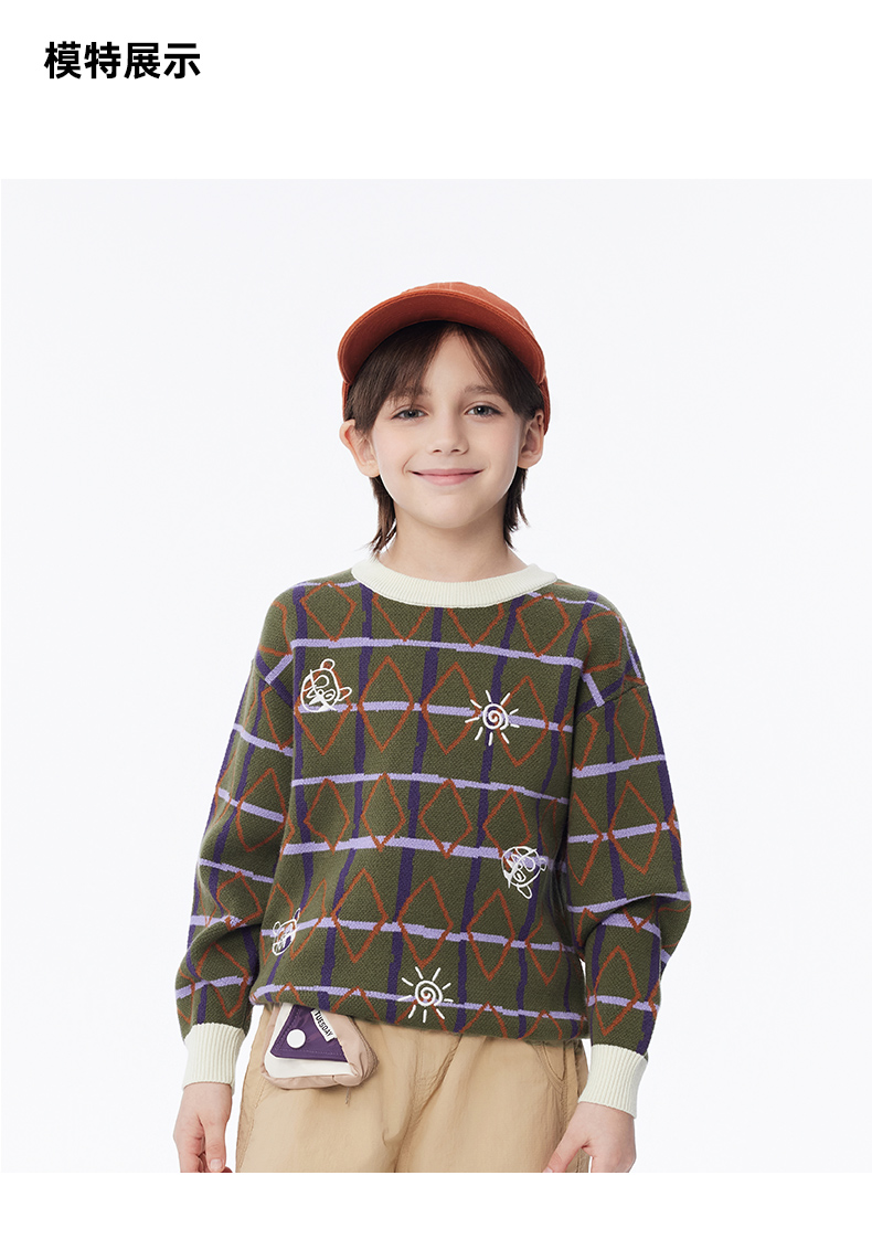 【MQD】男童潮酷满版印花撞色休闲圆领针织衫