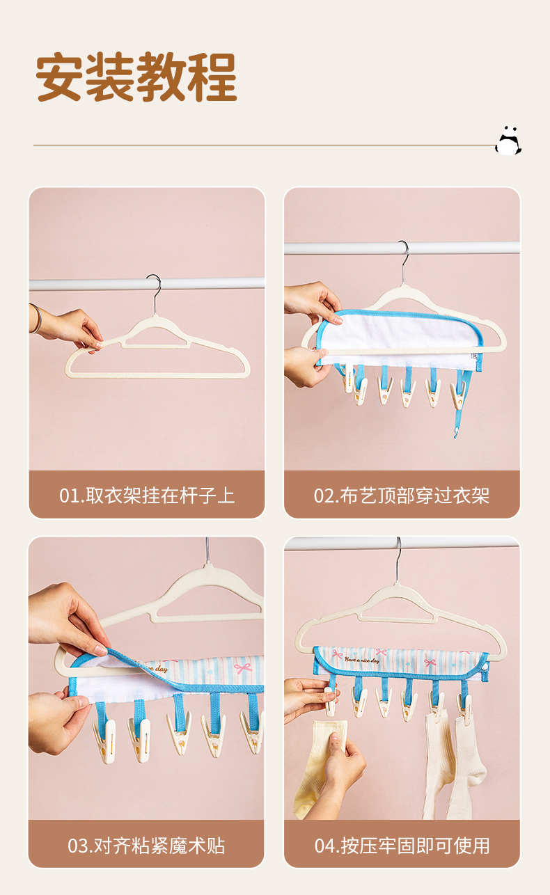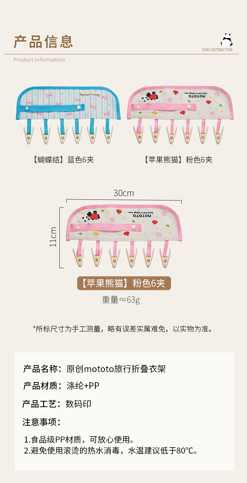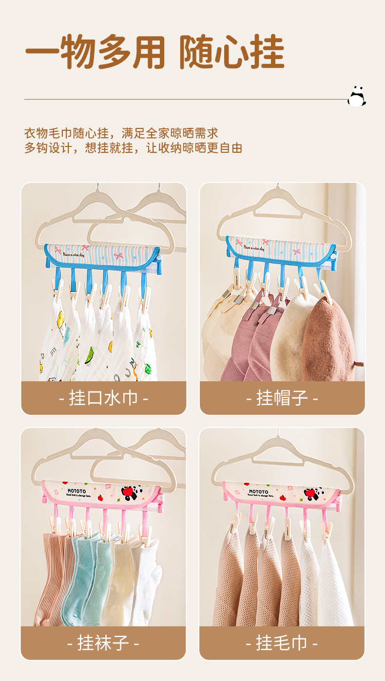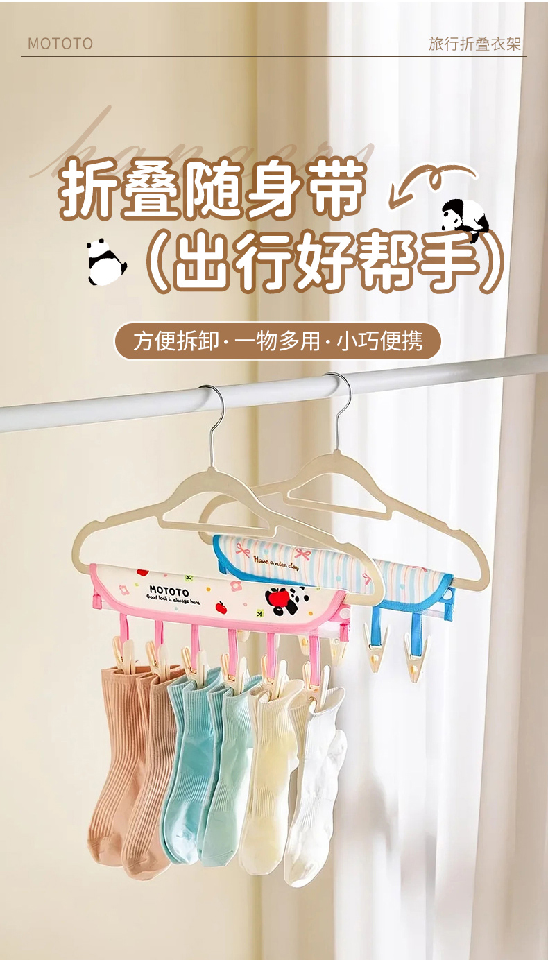 摩登主妇mototo熊猫旅行折叠衣架出差便携多功能内衣袜子晾衣神器