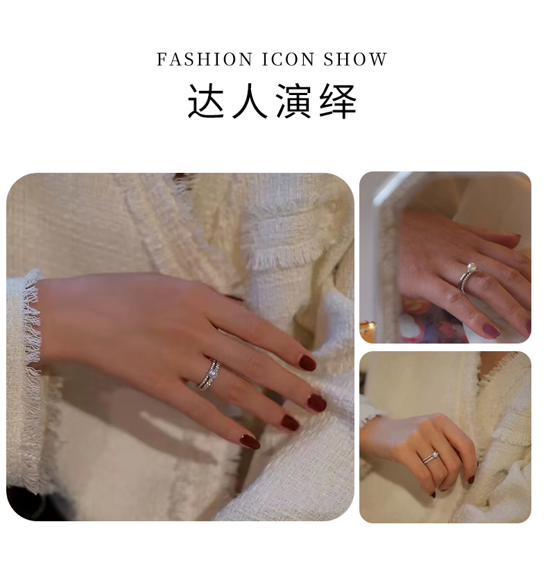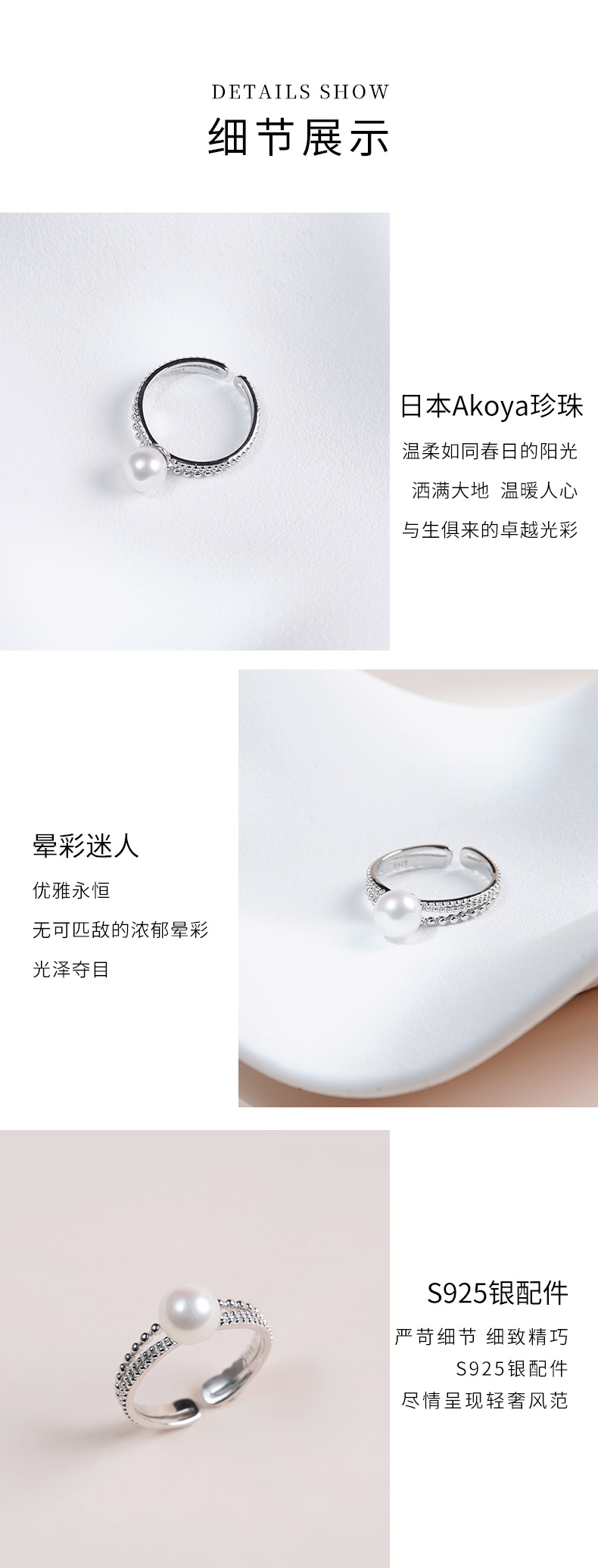 阮仕珍珠 心语系列S925银日本珠AKOYA珍珠戒指 6.5-7mm 正圆 极微瑕 极强光