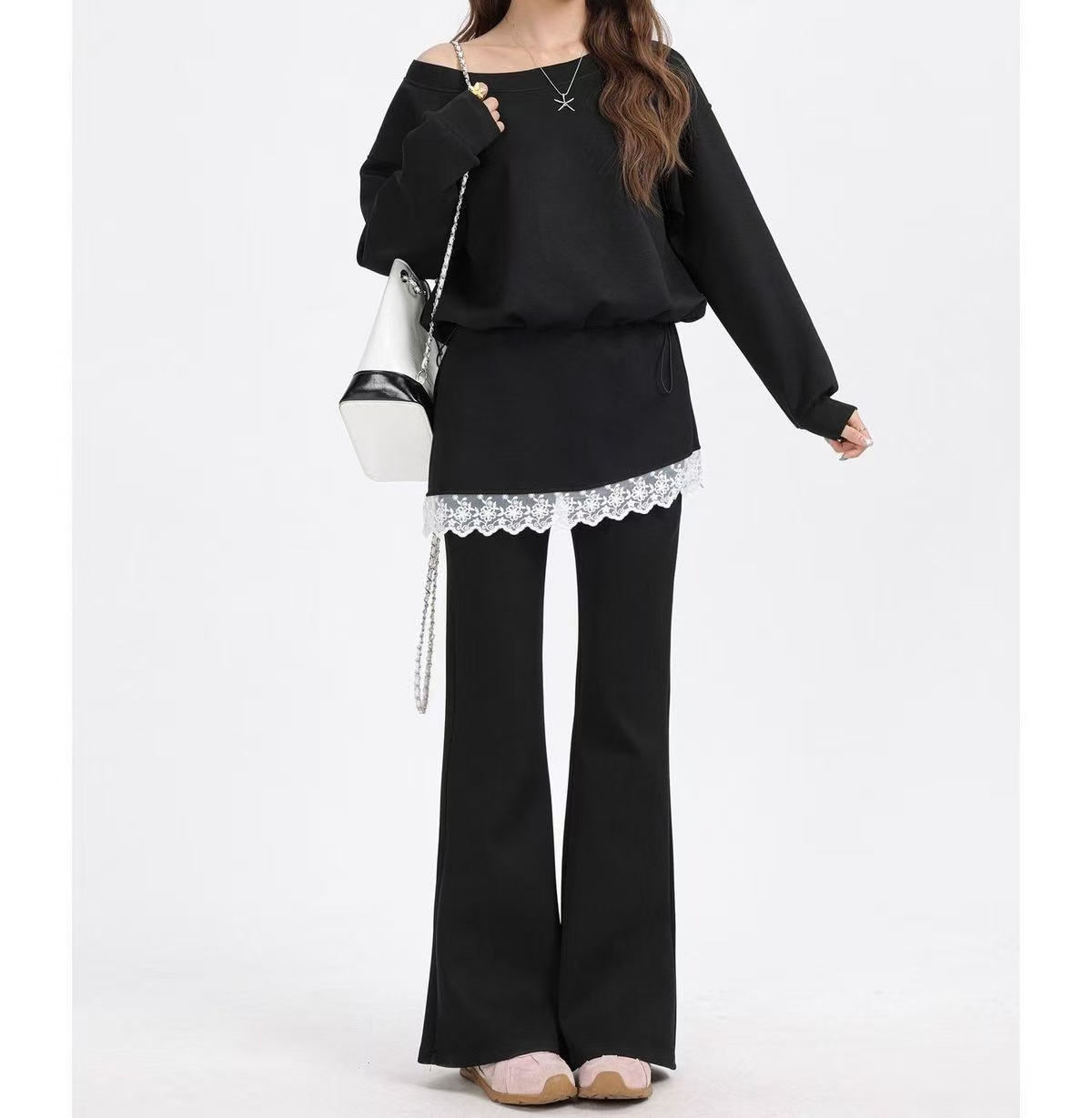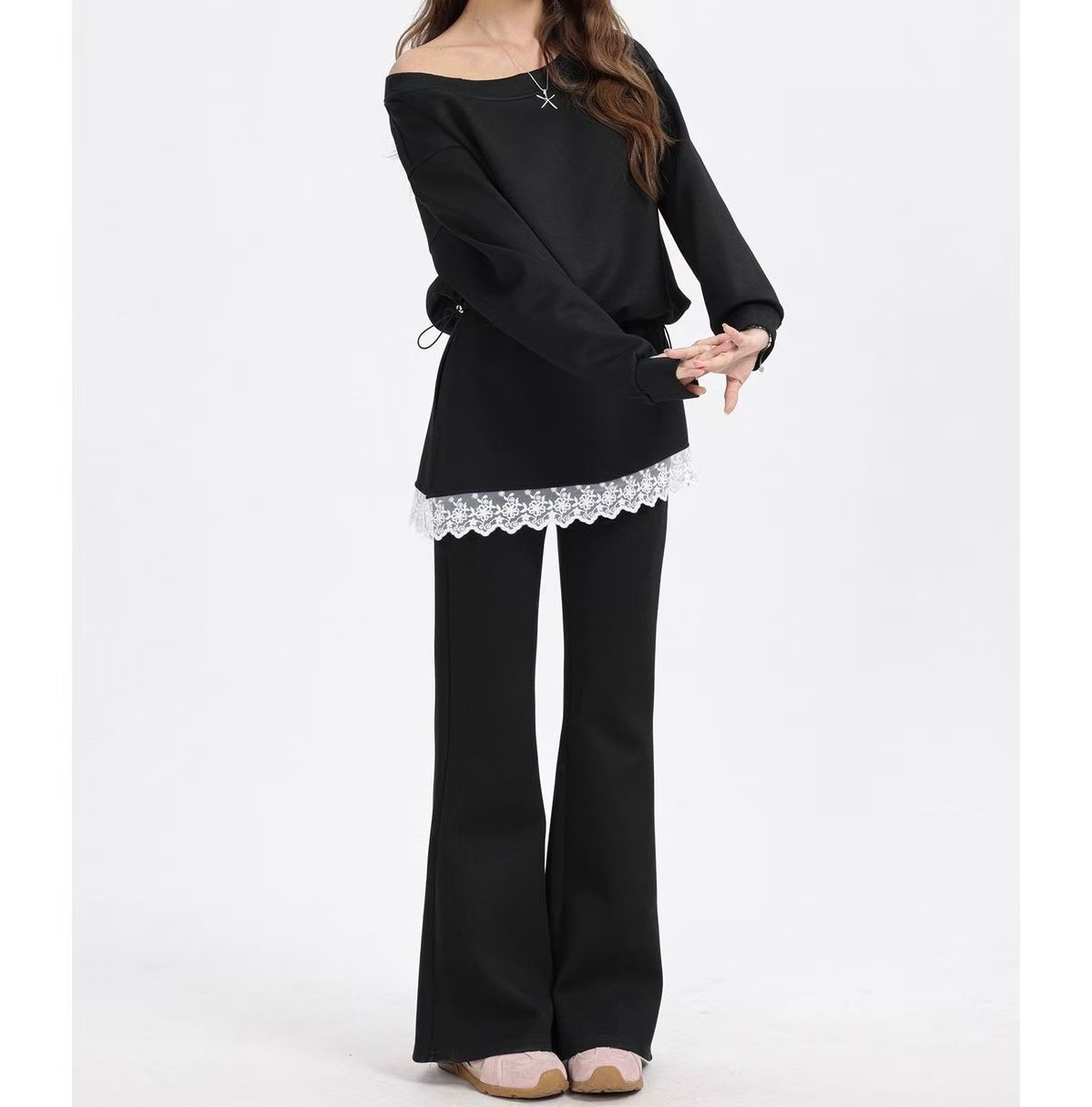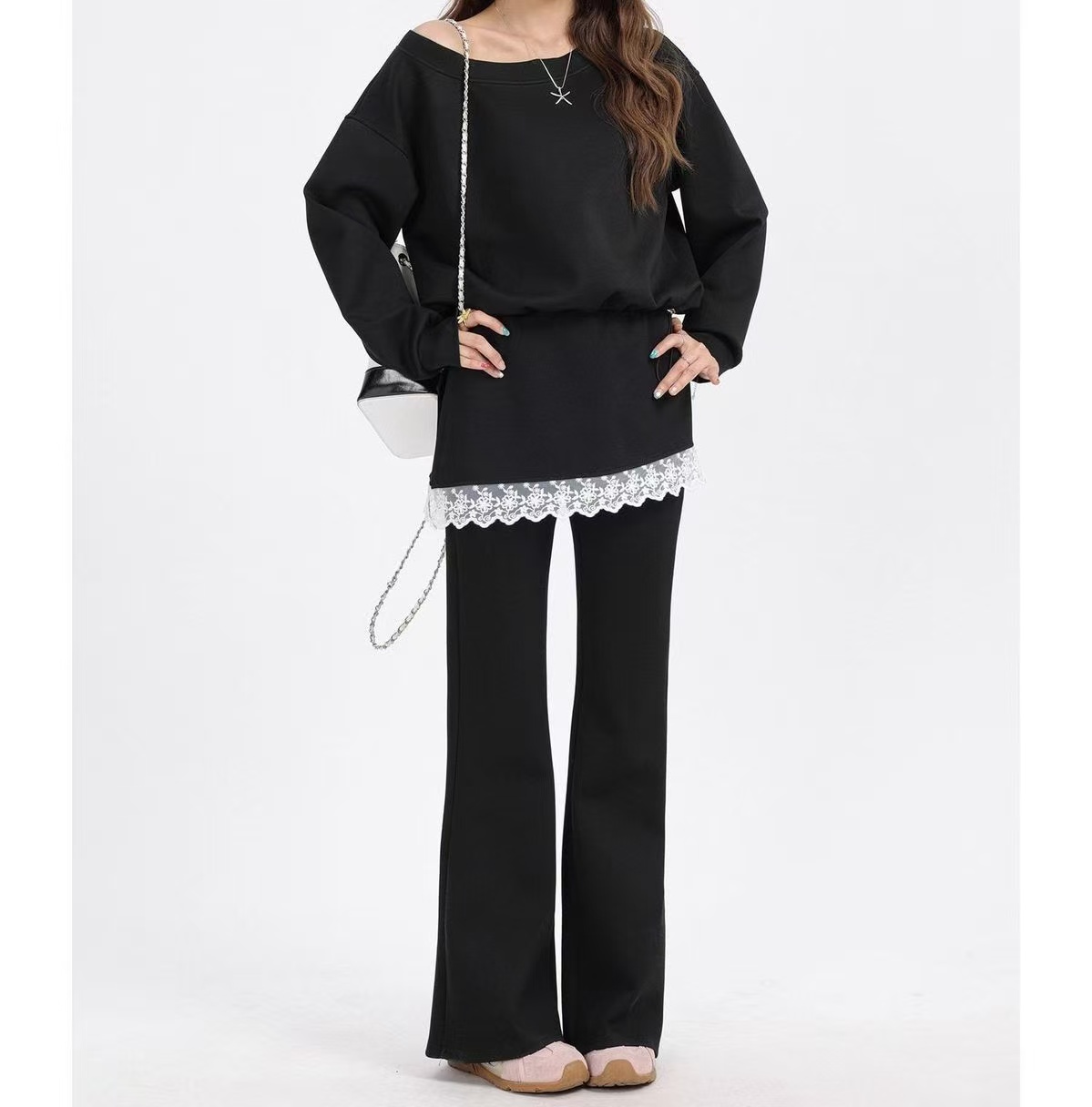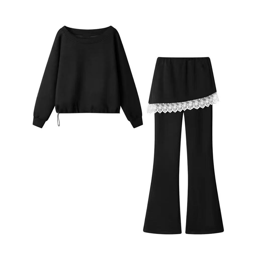 11.11直降到底!!【秋上新】(套装)25003黑色上衣➕蕾丝微喇裤两件套-喜出