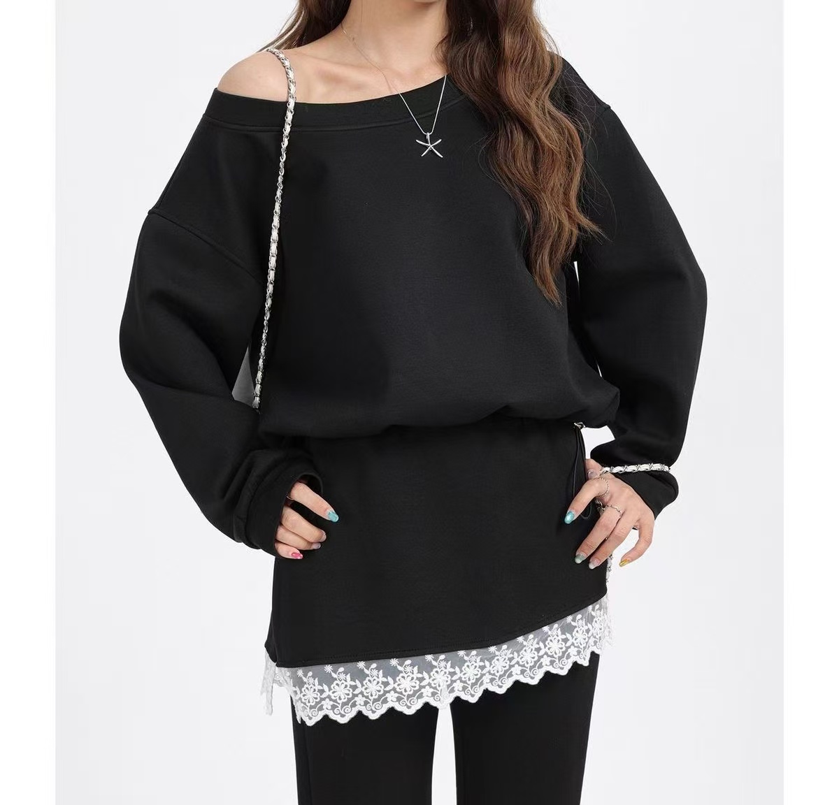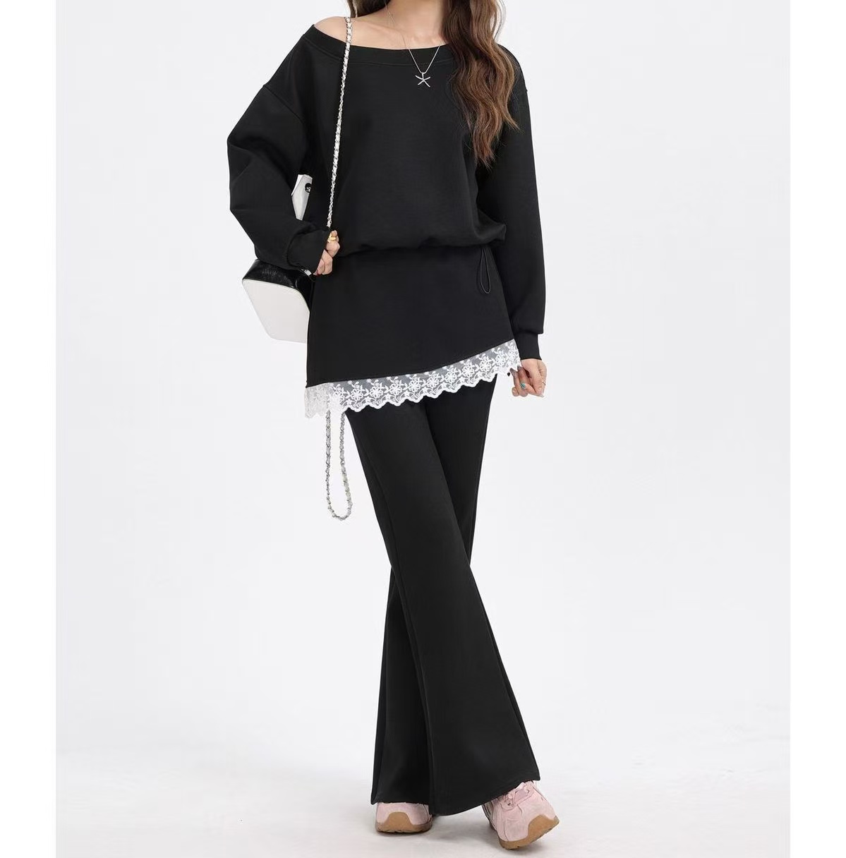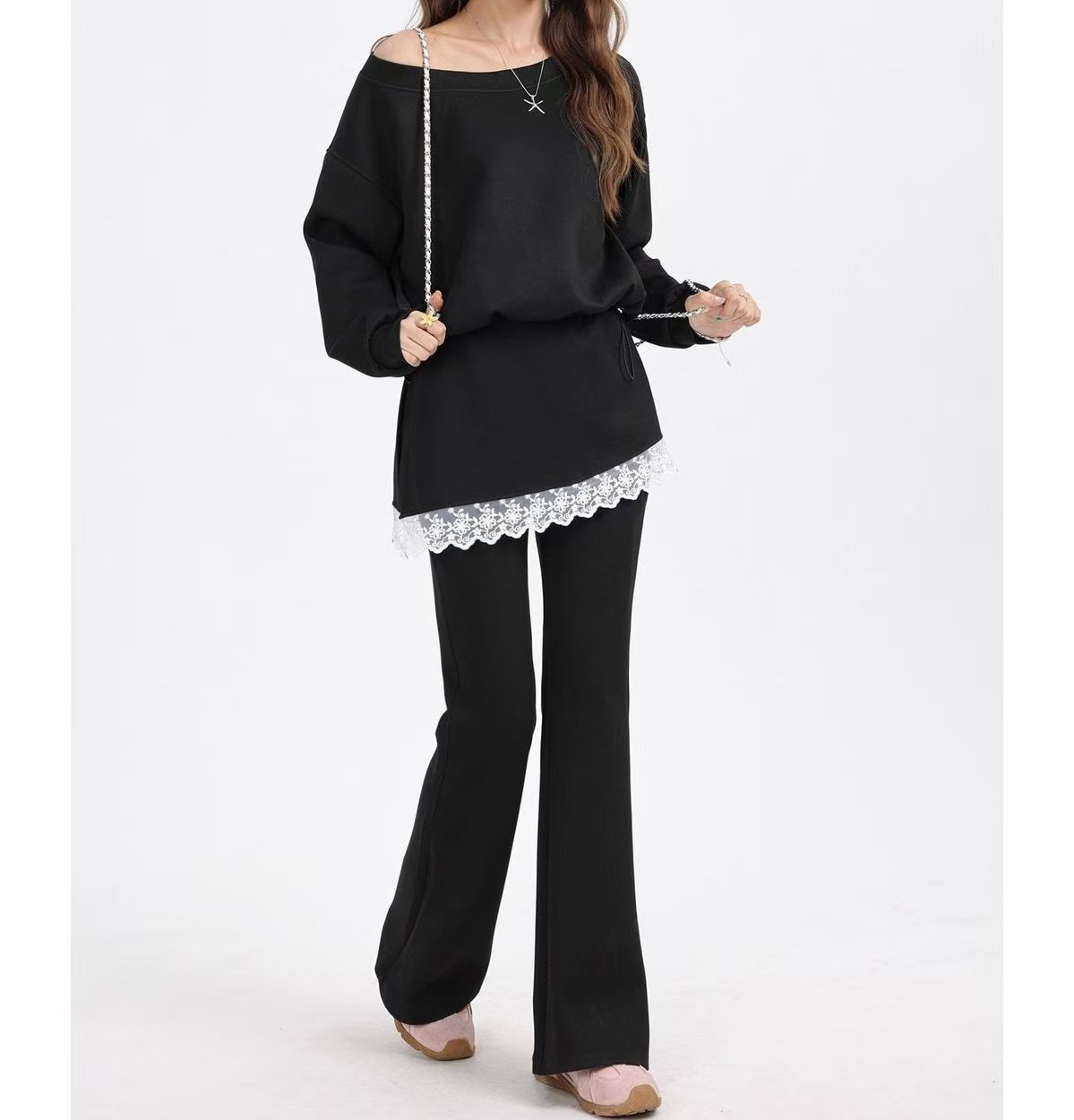 11.11直降到底!!【秋上新】(套装)25003黑色上衣➕蕾丝微喇裤两件套-喜出