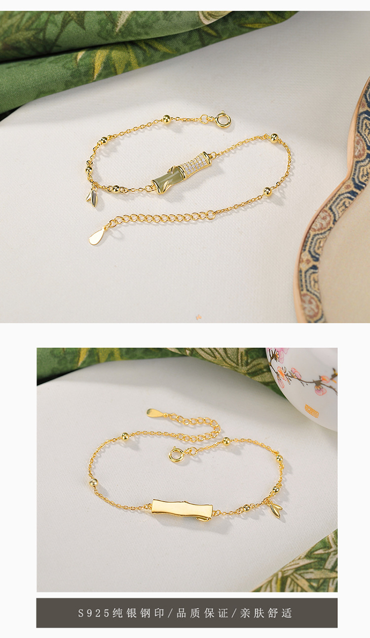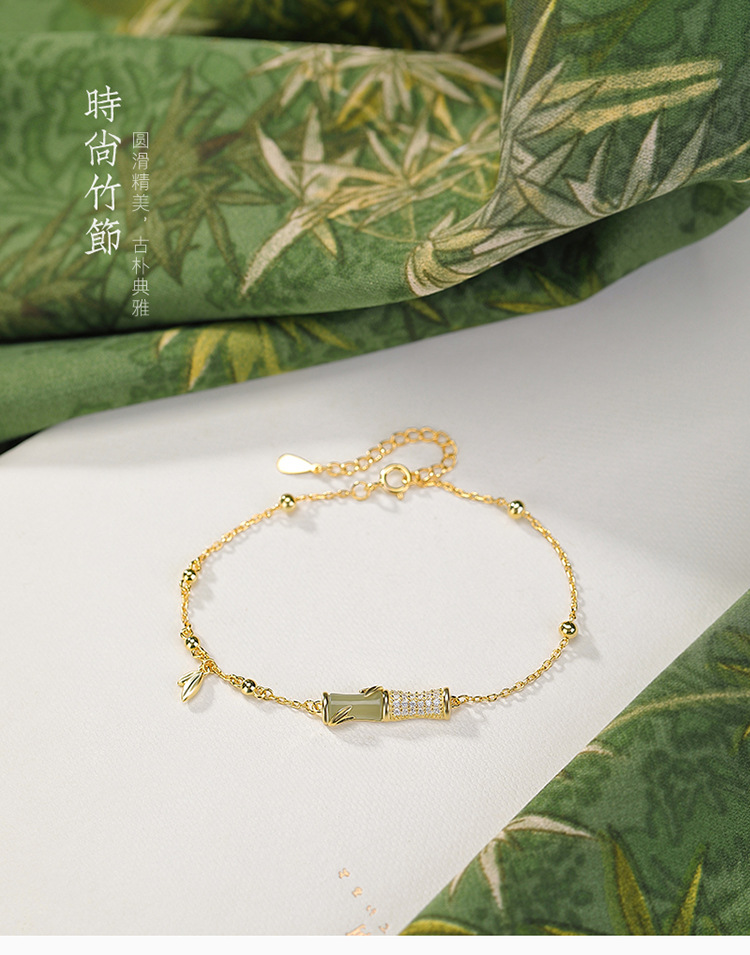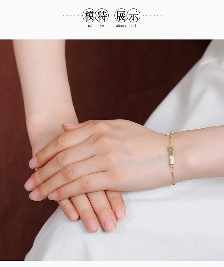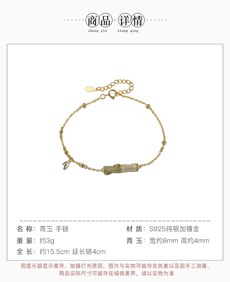 S925纯银镀金天然和田玉,青玉手链新中式竹节CW-SL11823