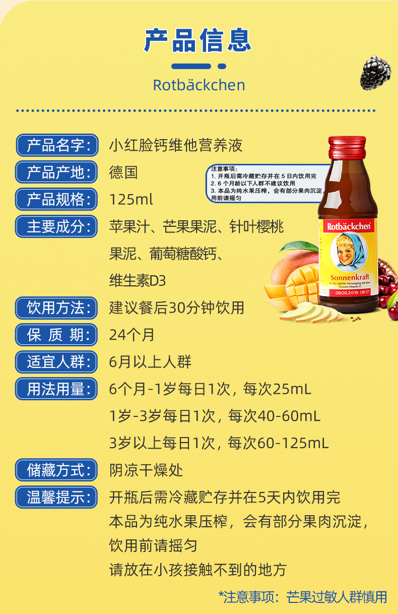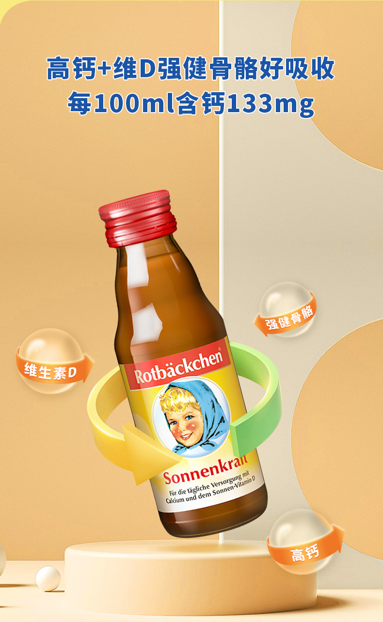 德国进口RBH百年小红脸 儿童营养钙 125ml 科学防佝偻 仿母乳 钙磷配比1.5:1 缓解夜啼盗汗 防O/X型腿