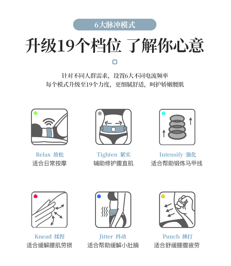 【行走的按摩院】第二代瘦腰带按摩器微电流仿生按摩6大模式19种力度缓解酸胀血液循环修护受损腹直肌打造迷人腰型