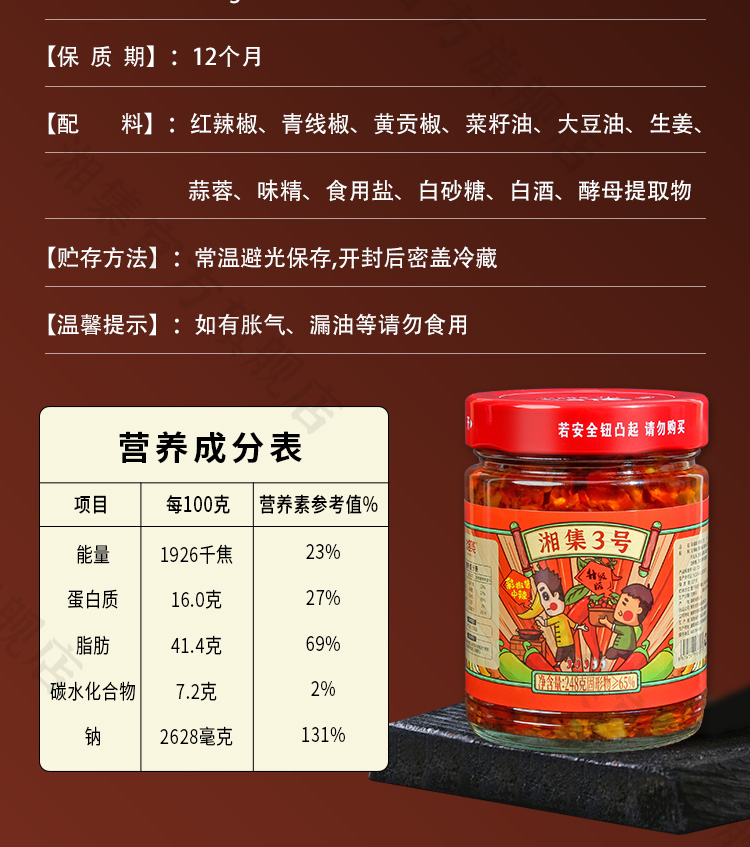 湘集3号彩椒酱升级版三色辣椒酱中辣微辣拌饭炒菜蒸煮调味剁辣椒