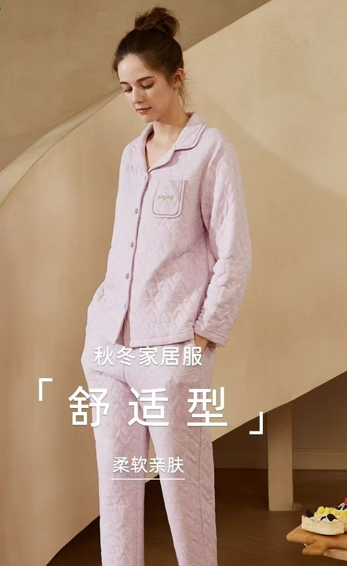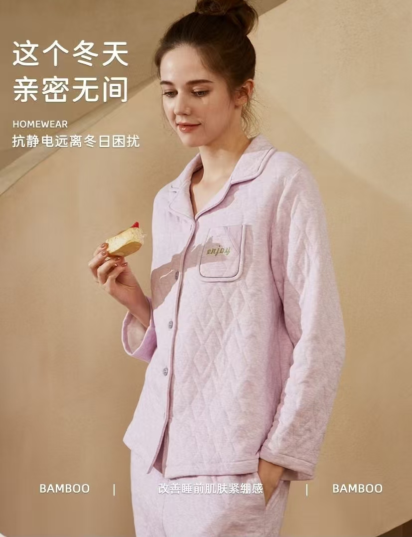 【品名】TZ竹纤维女士3层加厚竹棉翻领分体家居套2348