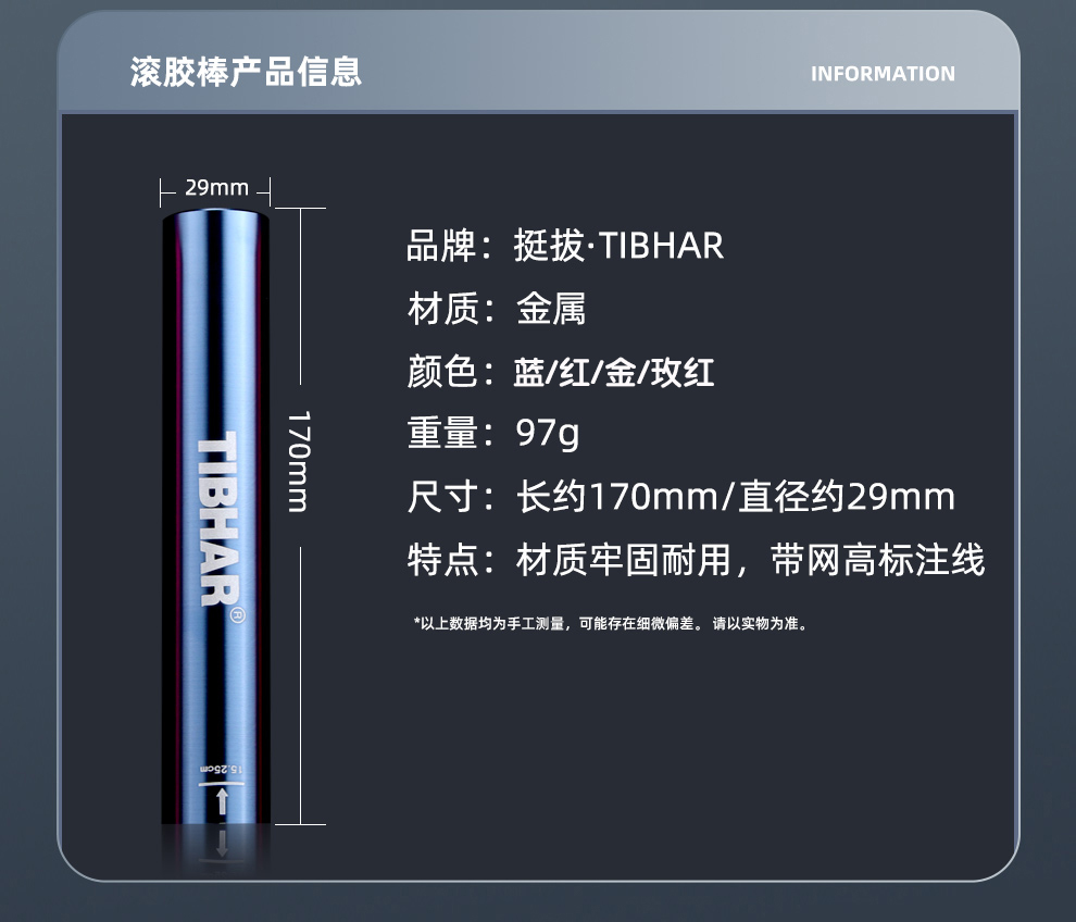 TIBHAR挺拔乒乓球滚胶棒压胶棒乒乓球拍粘胶皮工具贴胶皮棒筒配件