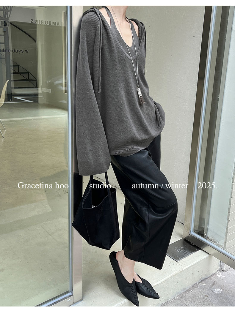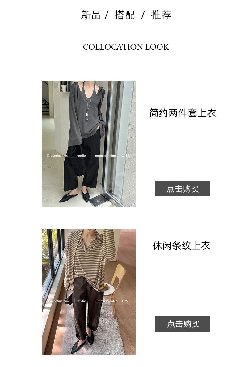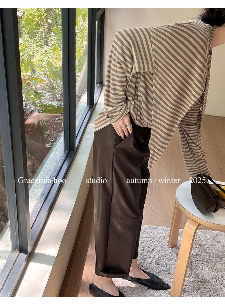 KA753/KA783GRACETINAHOO秋新法式简约大气慵懒九分气球时髦感阔腿休闲皮裤