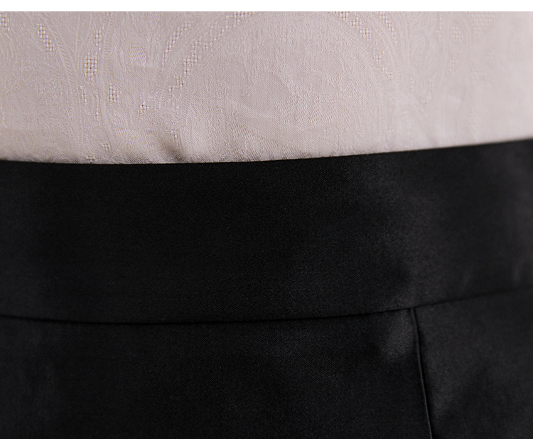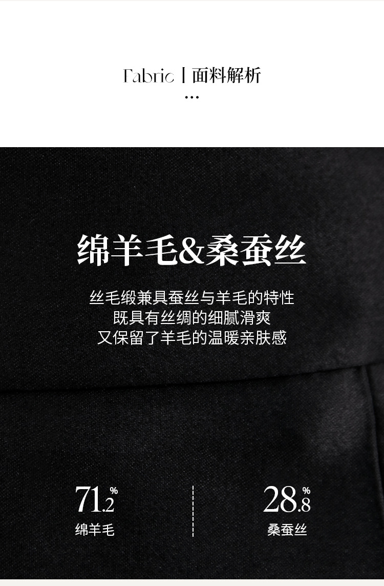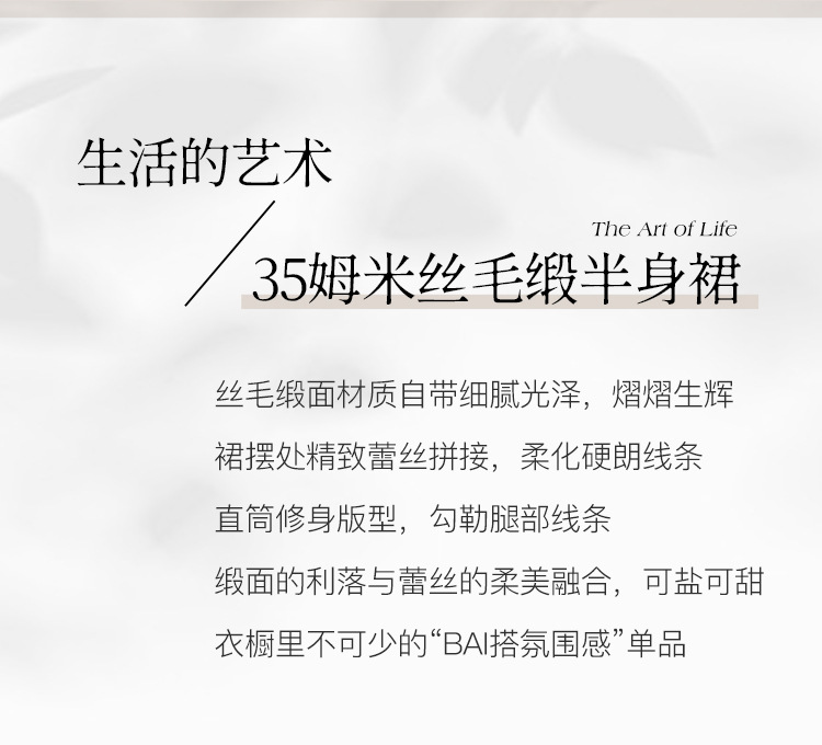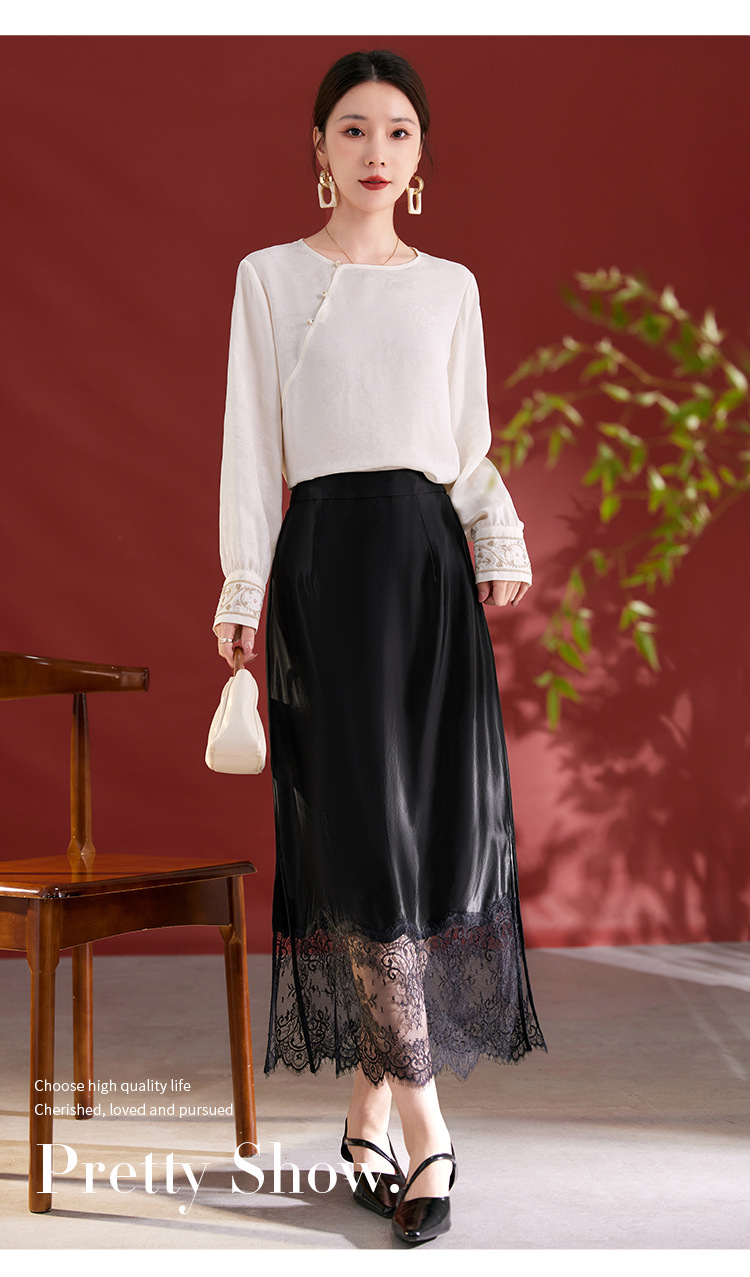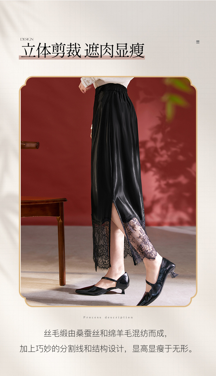 QS法式丝毛缎黑色蕾丝拼接半身裙女真丝秋季新款高腰显瘦a字裙1813