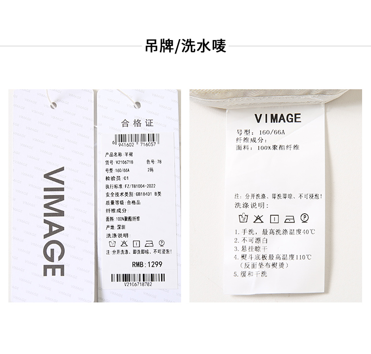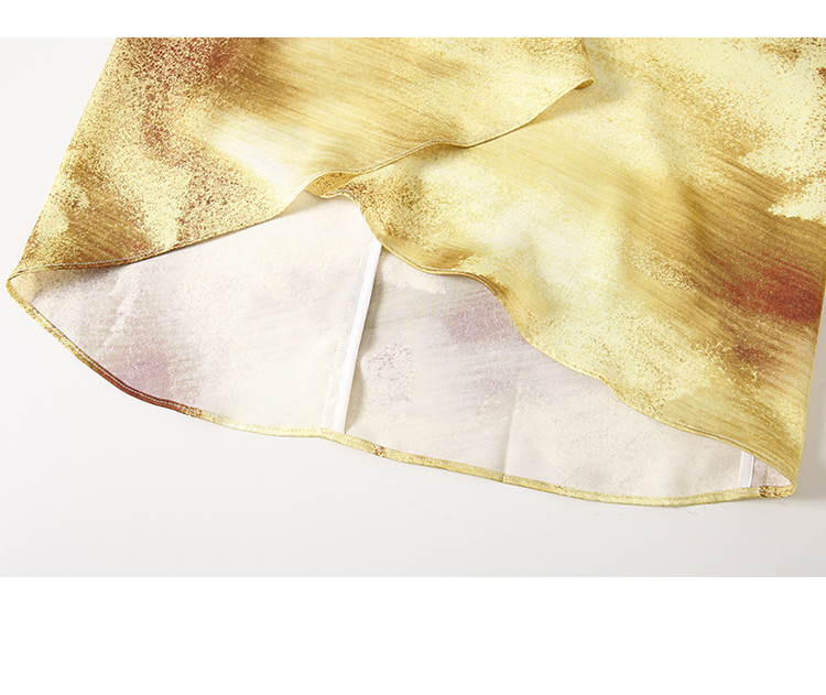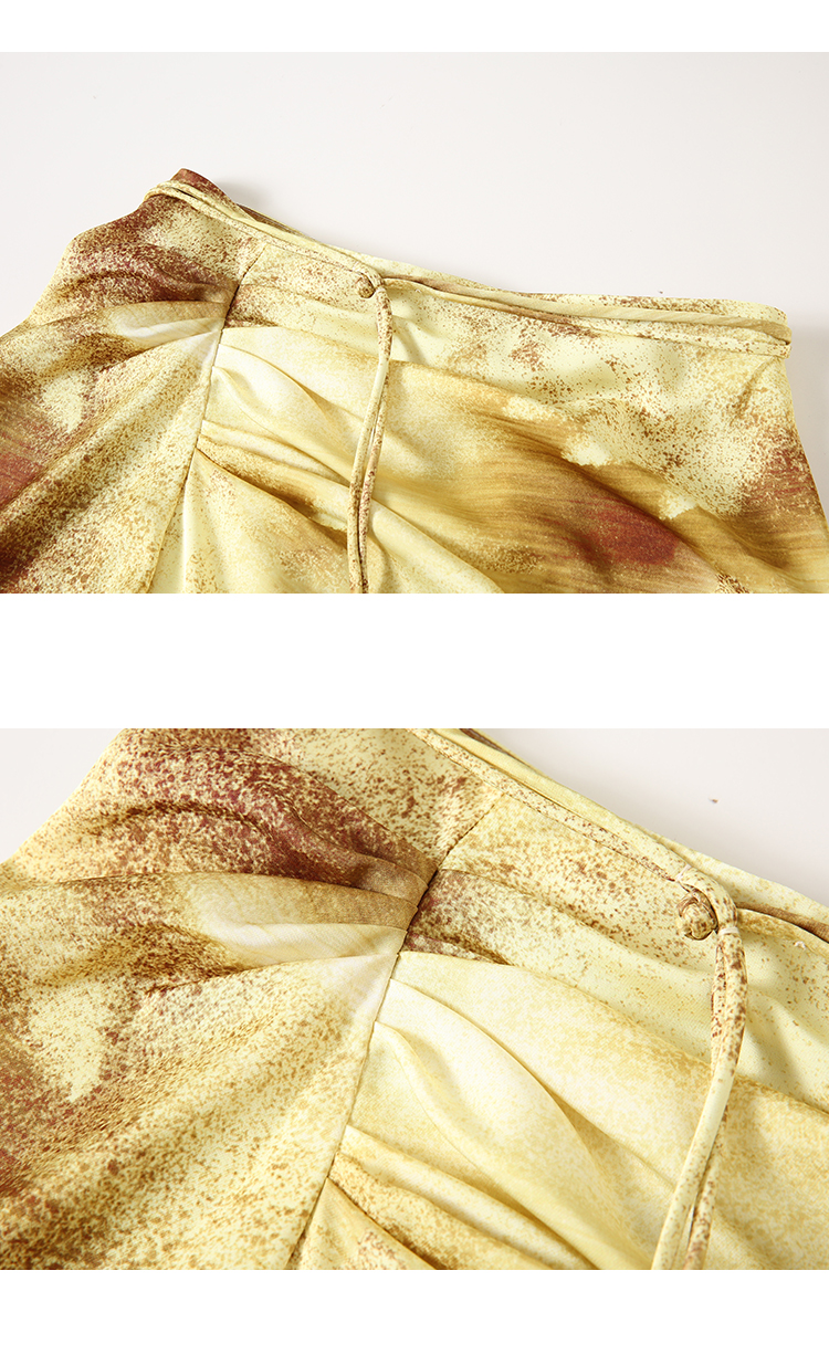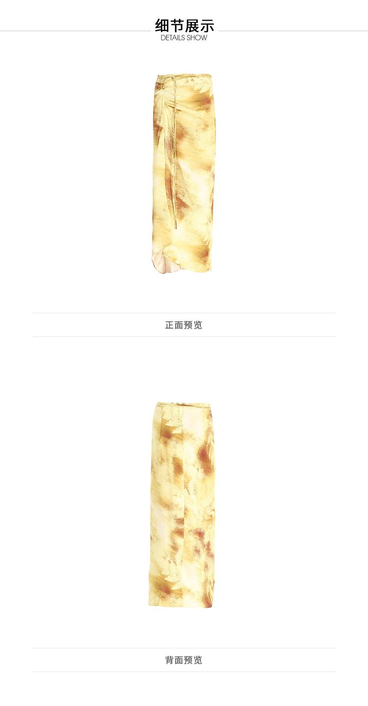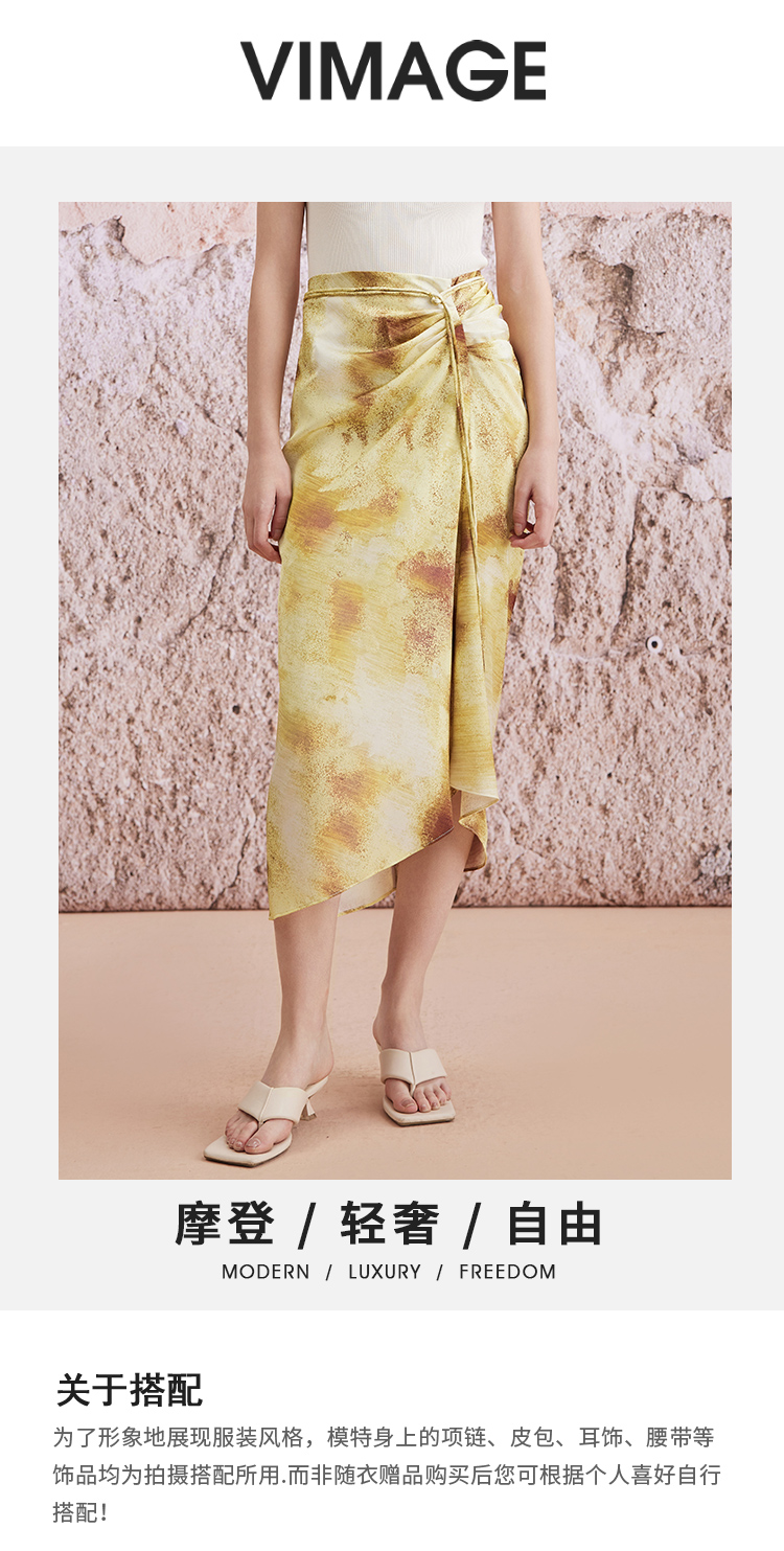 VIMAGE纬漫纪夏季新款中式国风系带提褶晕染印花过膝半身裙V2106718