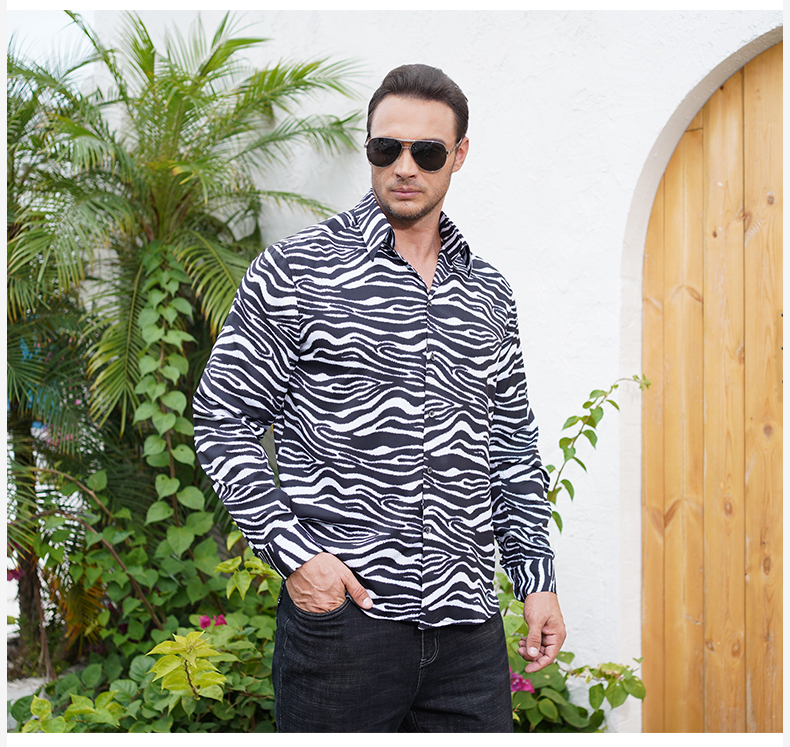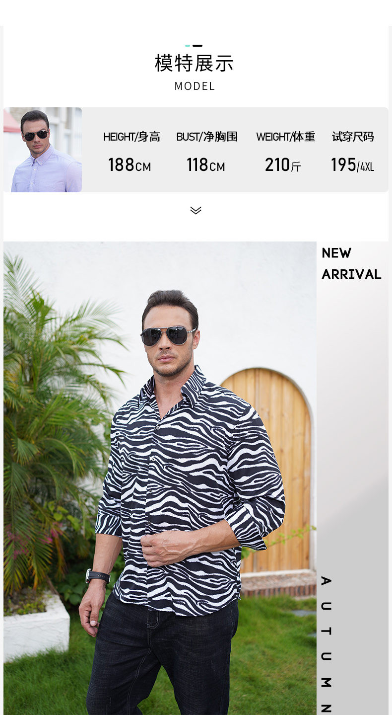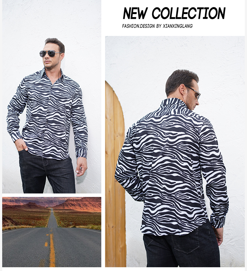 【一口价】【特大码】【新款DM】大依优型长袖衬衫花衬衫斑马纹男宽松加肥加大码男士休闲商务衬衣上衣胖子