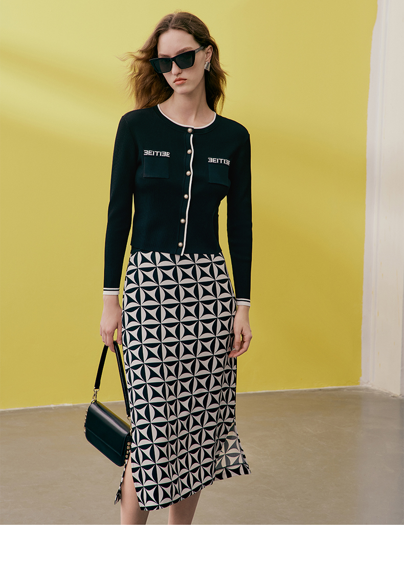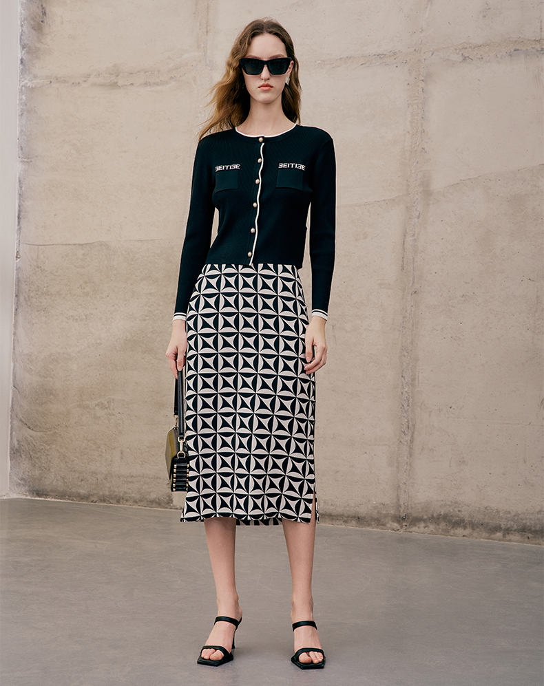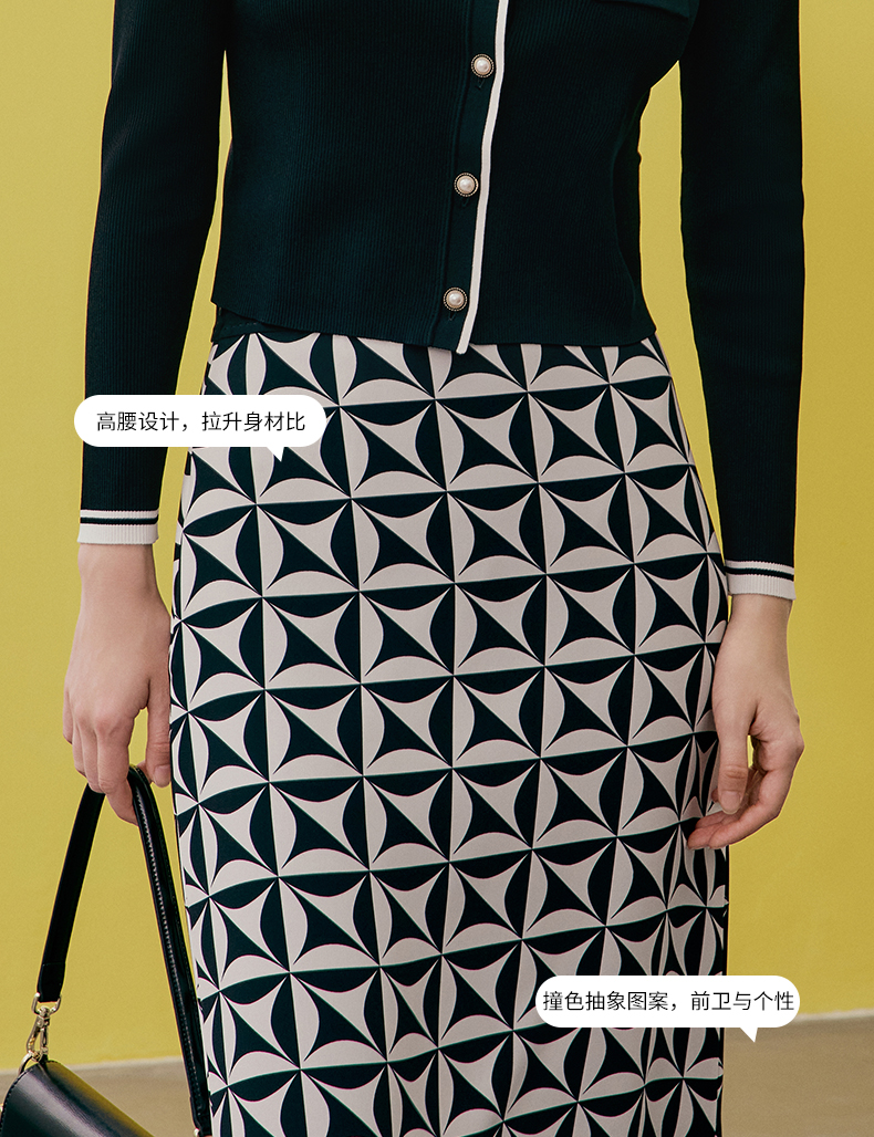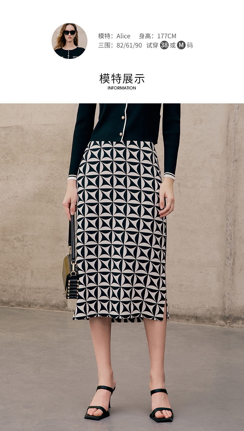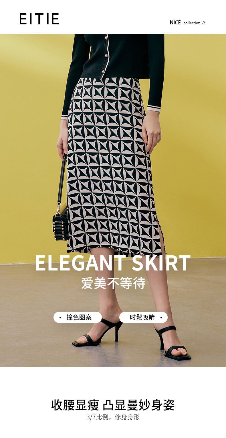 EITIE爱特爱春季新款印花侧开叉半裙7306003