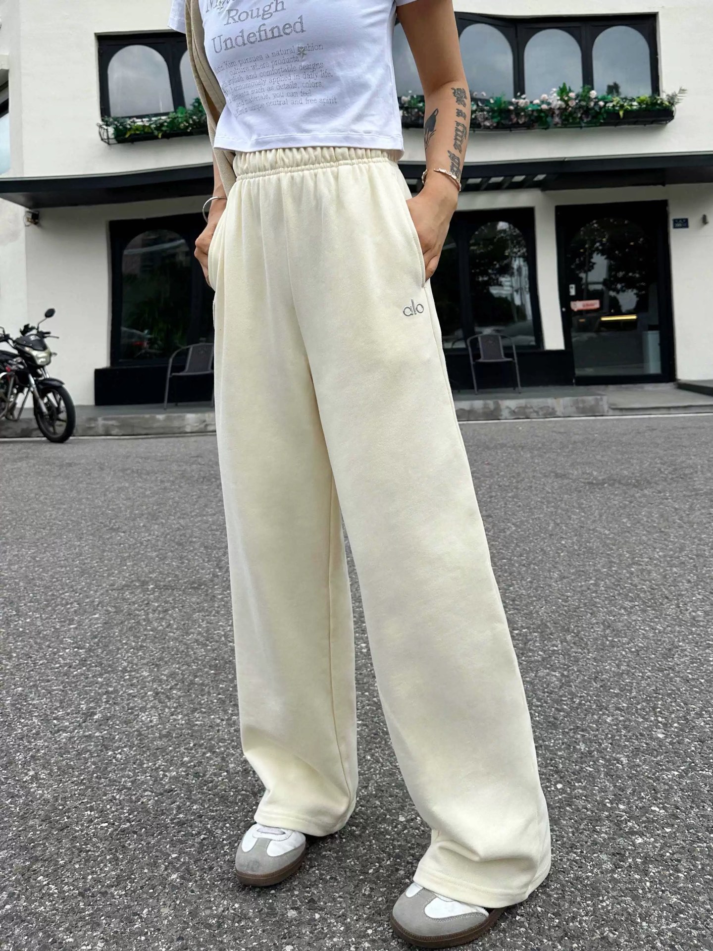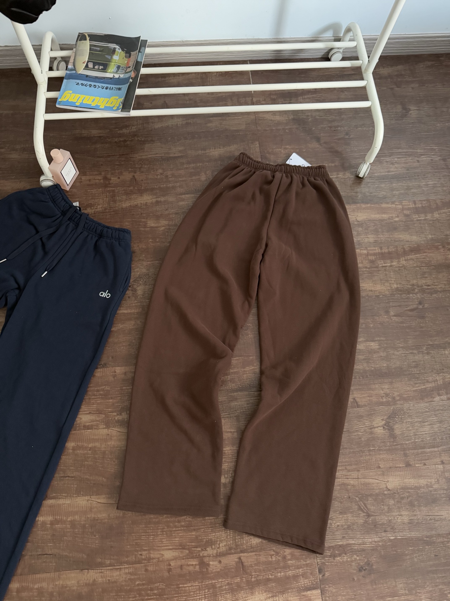 alo新款女士裤子 阔腿裤alo拉绒卫裤休闲户外运动瑜伽长裤女加绒收脚套装绝对是你的不二之选!心这款裤子采用柔软的拉绒材质,触感舒适,上身效果一流。