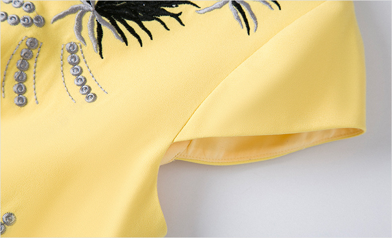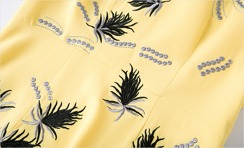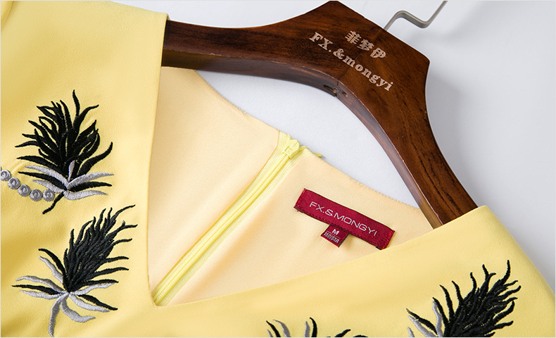 FMY-F20XL31199绣花连衣气质V领修身一步裙