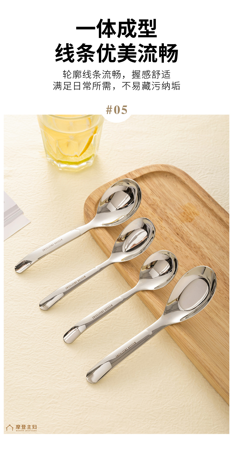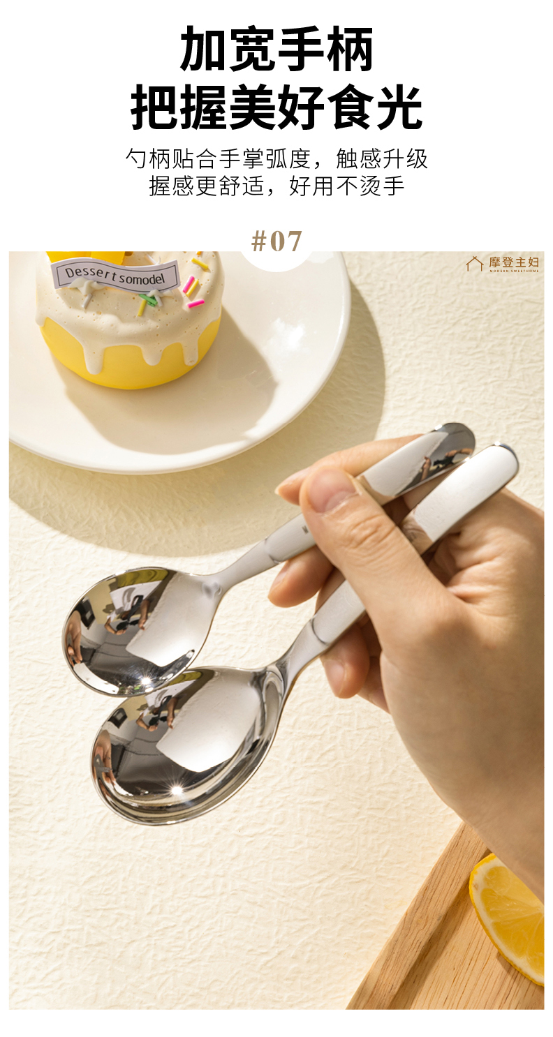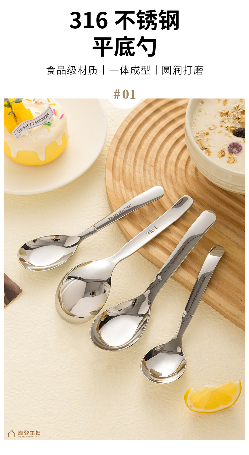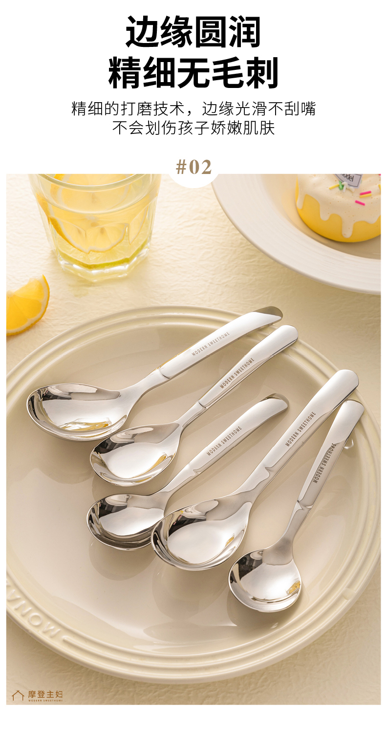 摩登主妇316食品级不锈钢勺子家用平底勺儿童吃饭专用餐勺汤勺