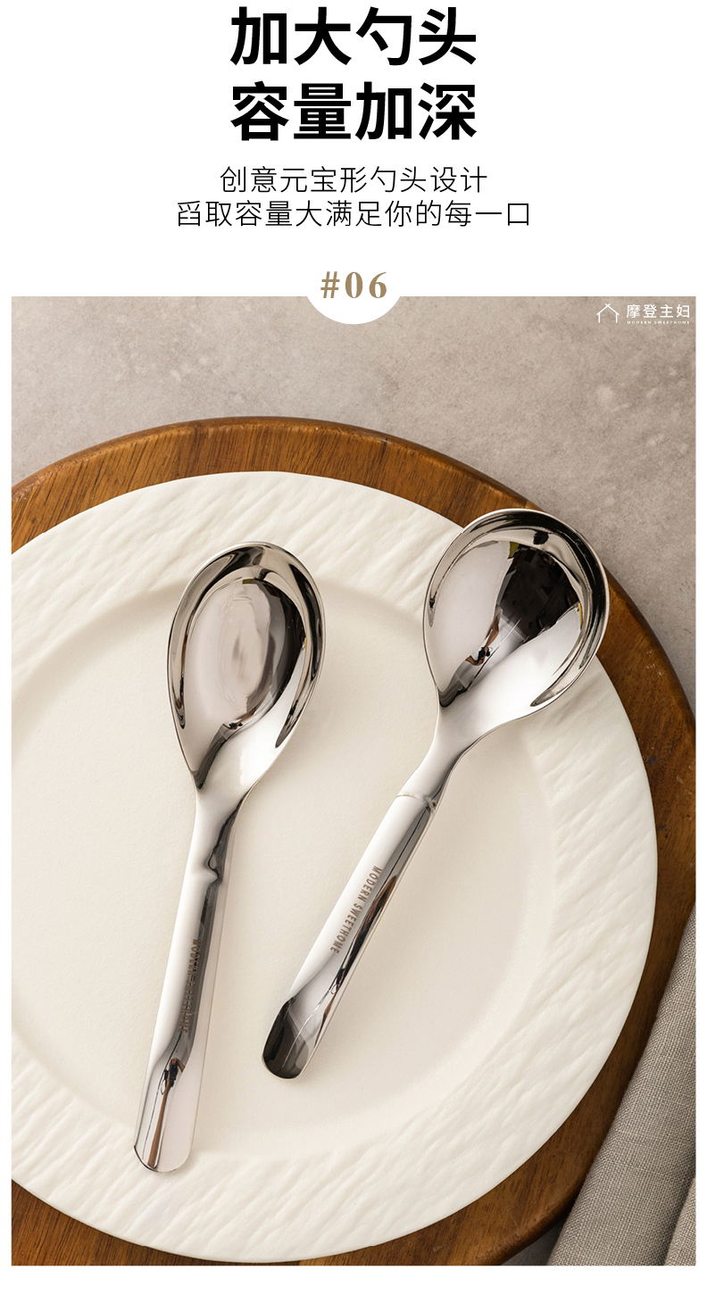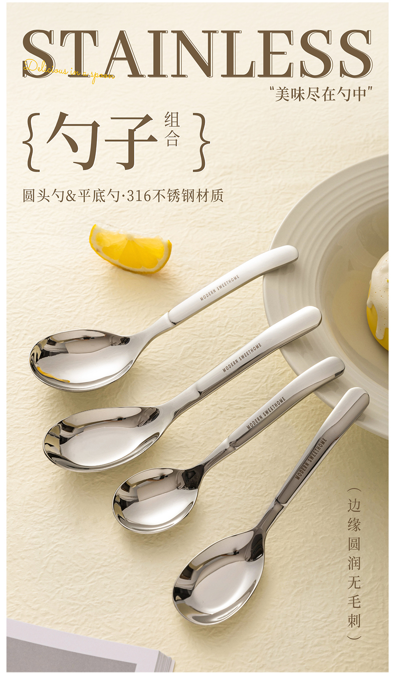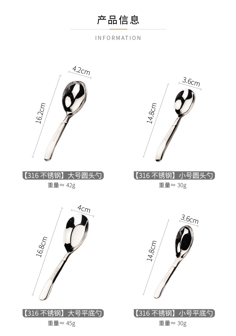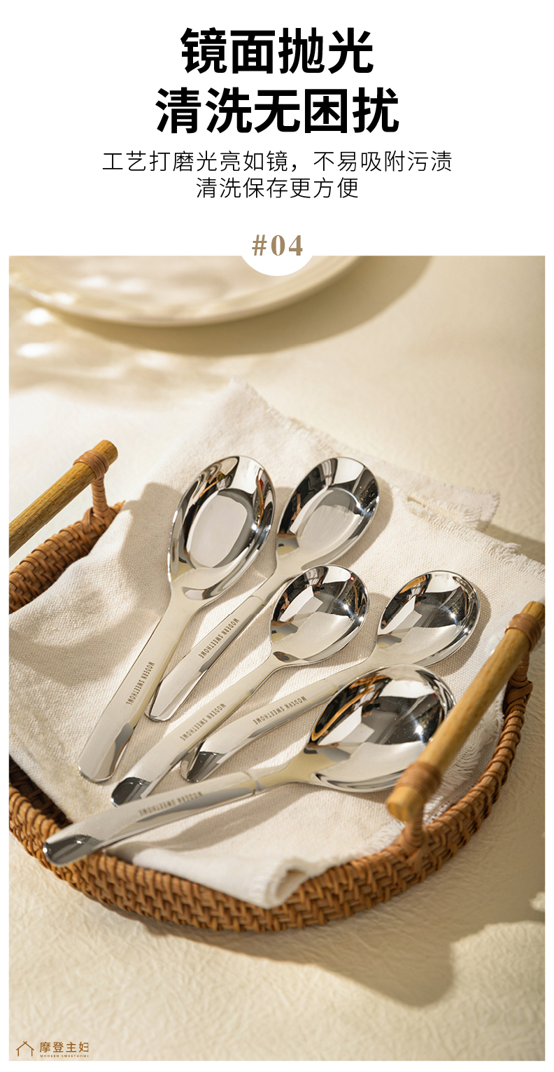 摩登主妇316食品级不锈钢勺子家用平底勺儿童吃饭专用餐勺汤勺