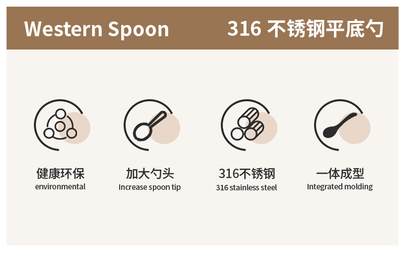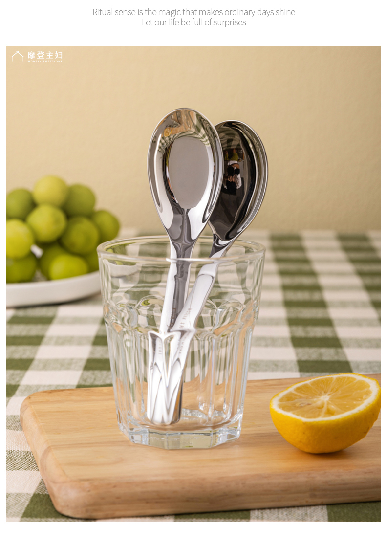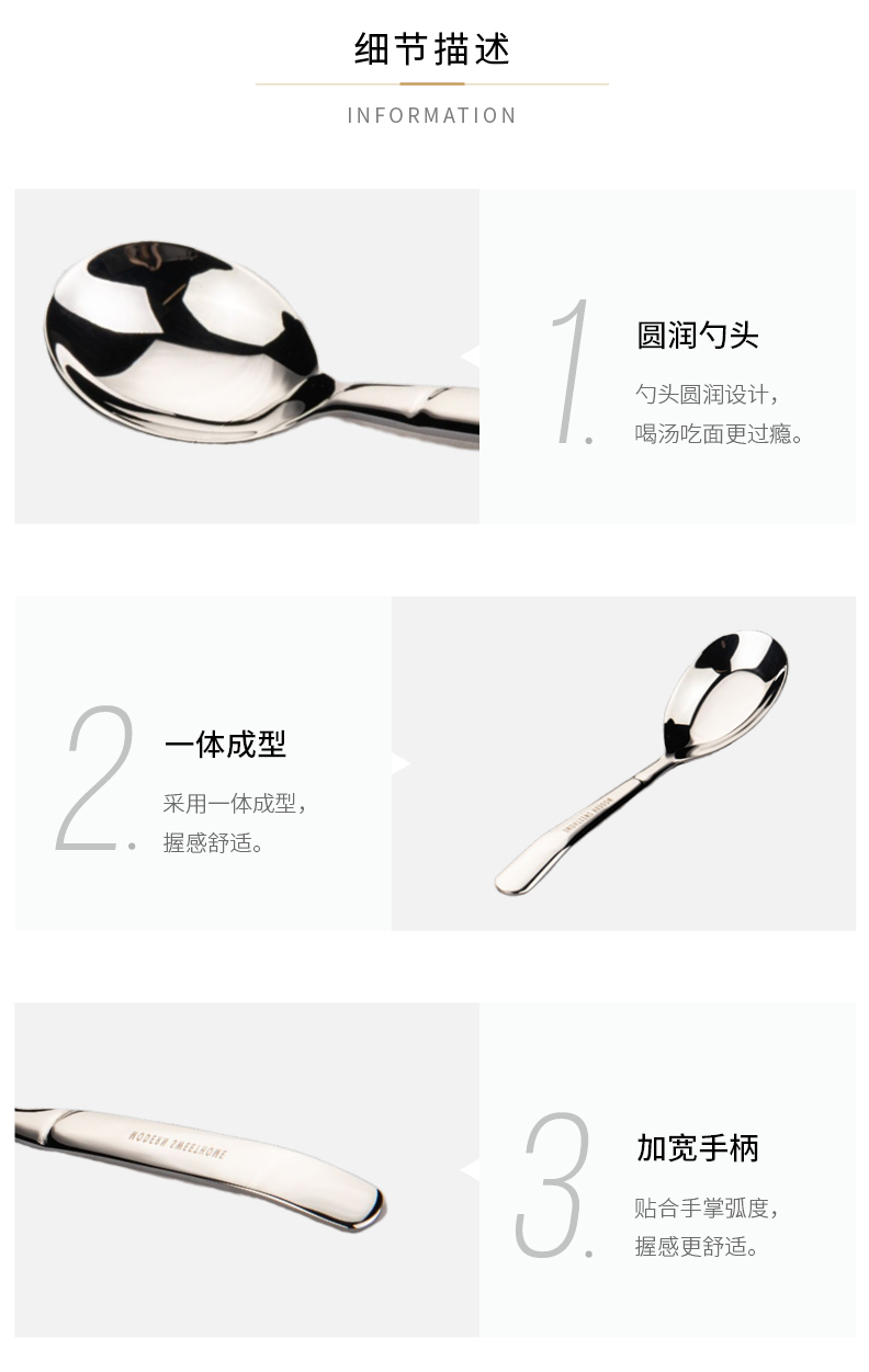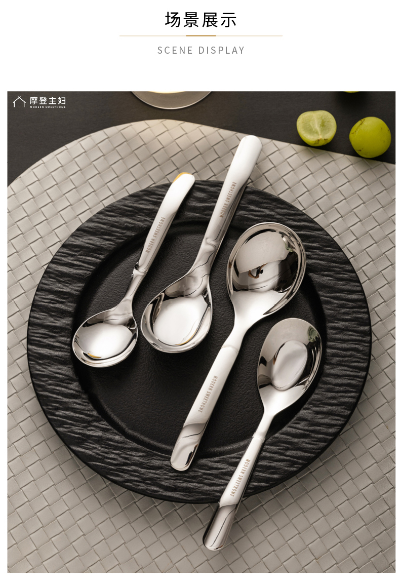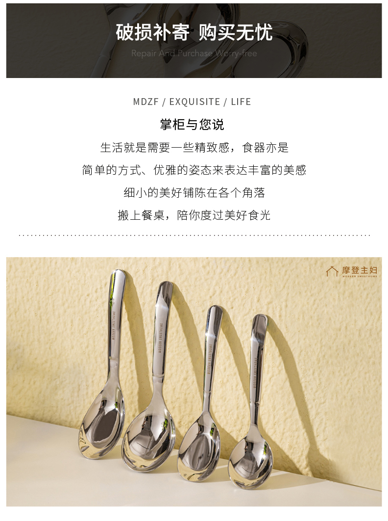 摩登主妇316食品级不锈钢勺子家用平底勺儿童吃饭专用餐勺汤勺