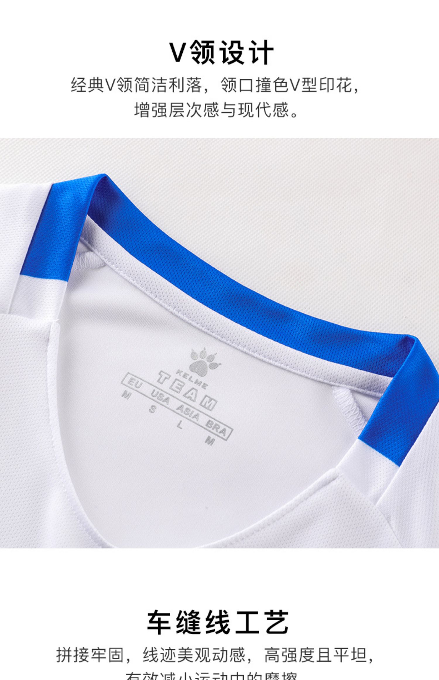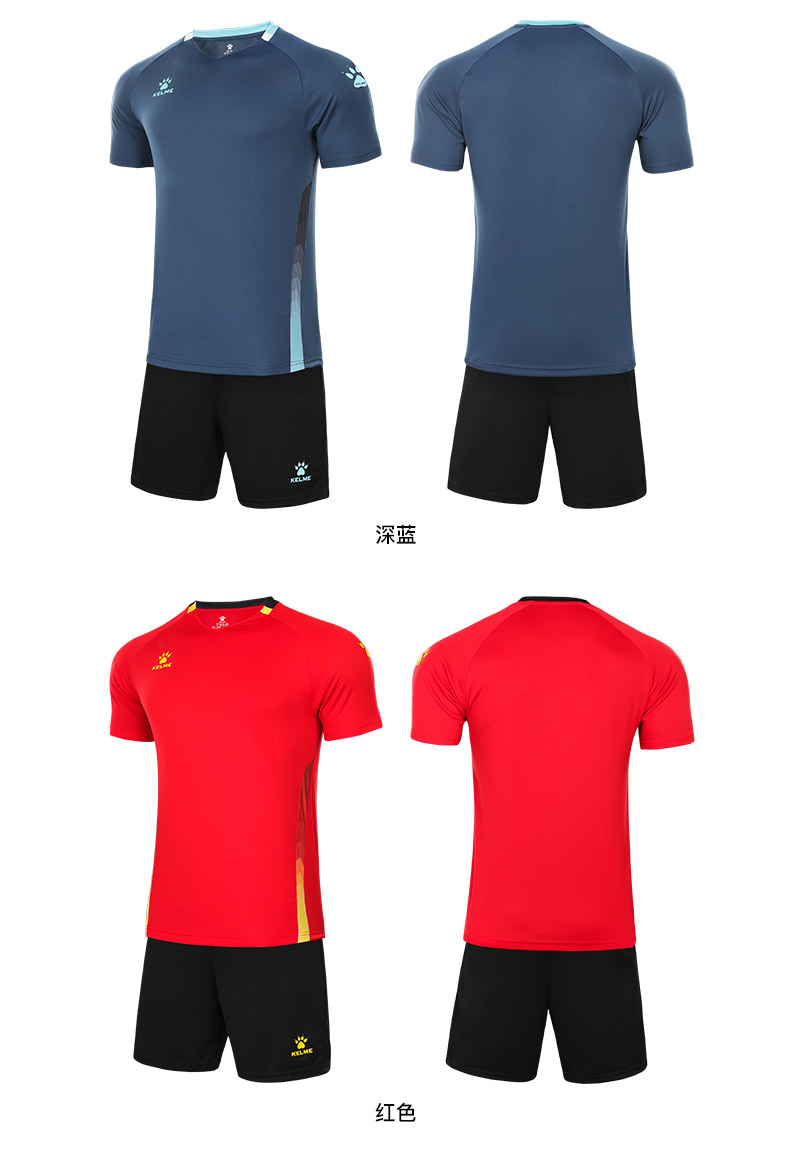 卡尔美新款短袖圆领足球服套装 男比赛训练组队印制印号球衣