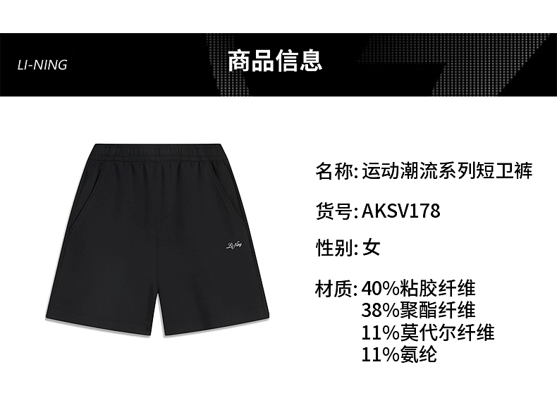 李宁短运动裤女子25春夏新款日常百搭刺绣LOGO休闲宽松卫裤AKSV178