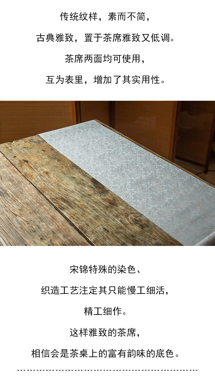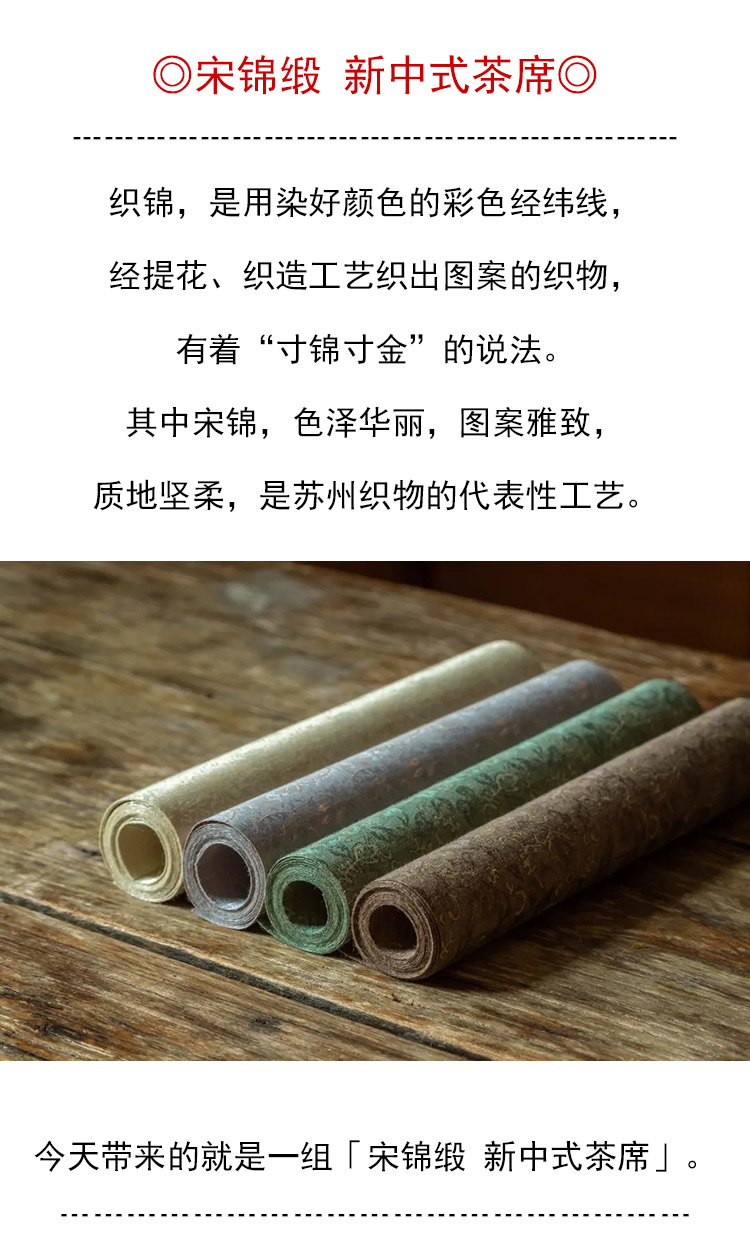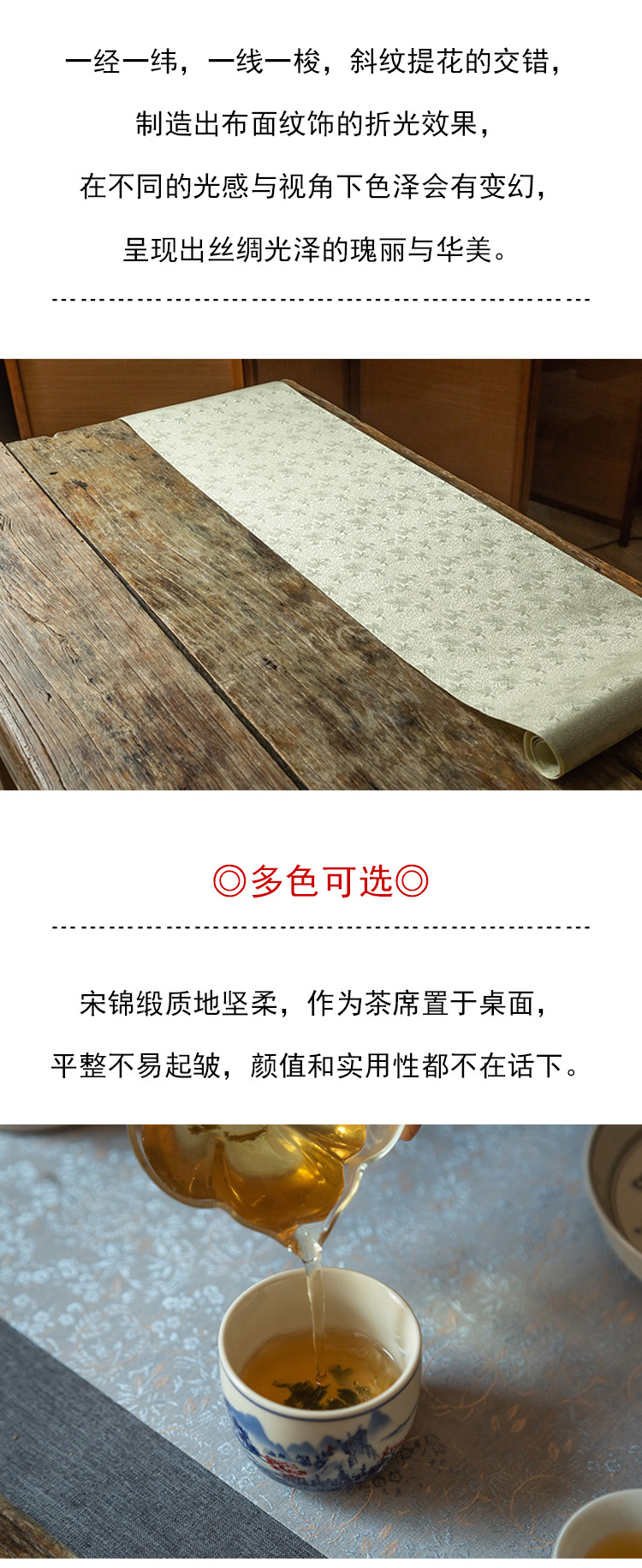 茶香记 宋锦缎 新中式茶席 茶席布 银灰 浅绿 米黄 咖色 织锦工艺