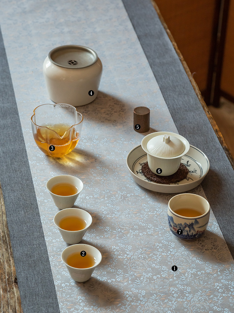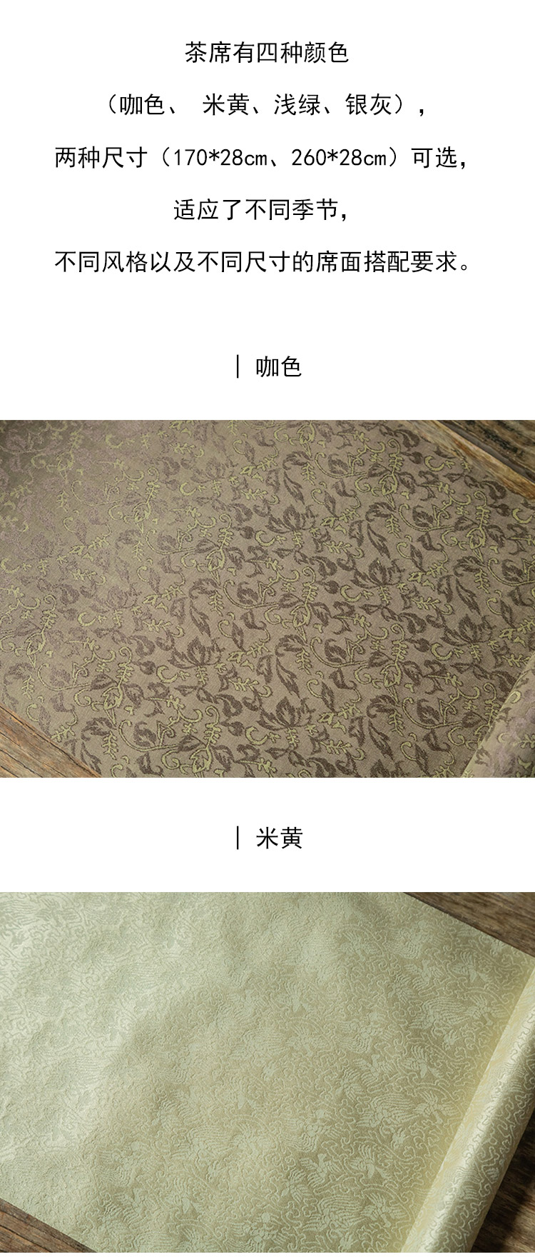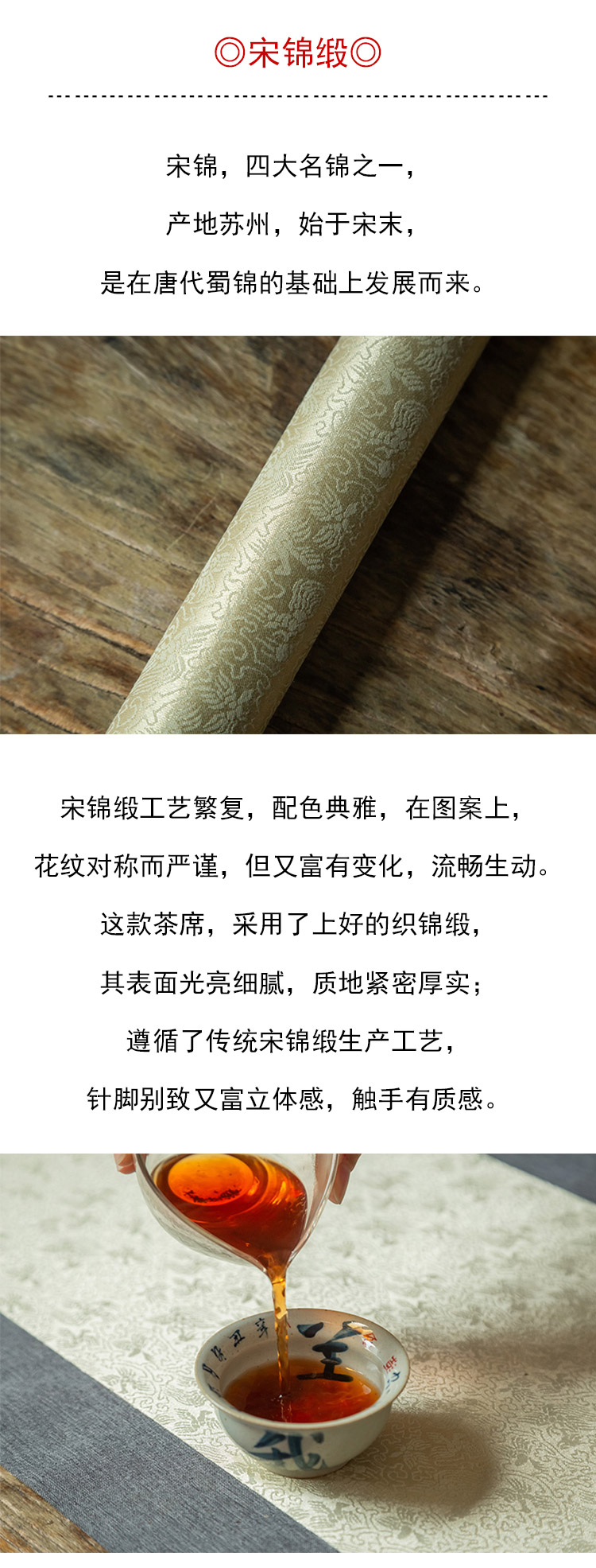 茶香记 宋锦缎 新中式茶席 茶席布 银灰 浅绿 米黄 咖色 织锦工艺