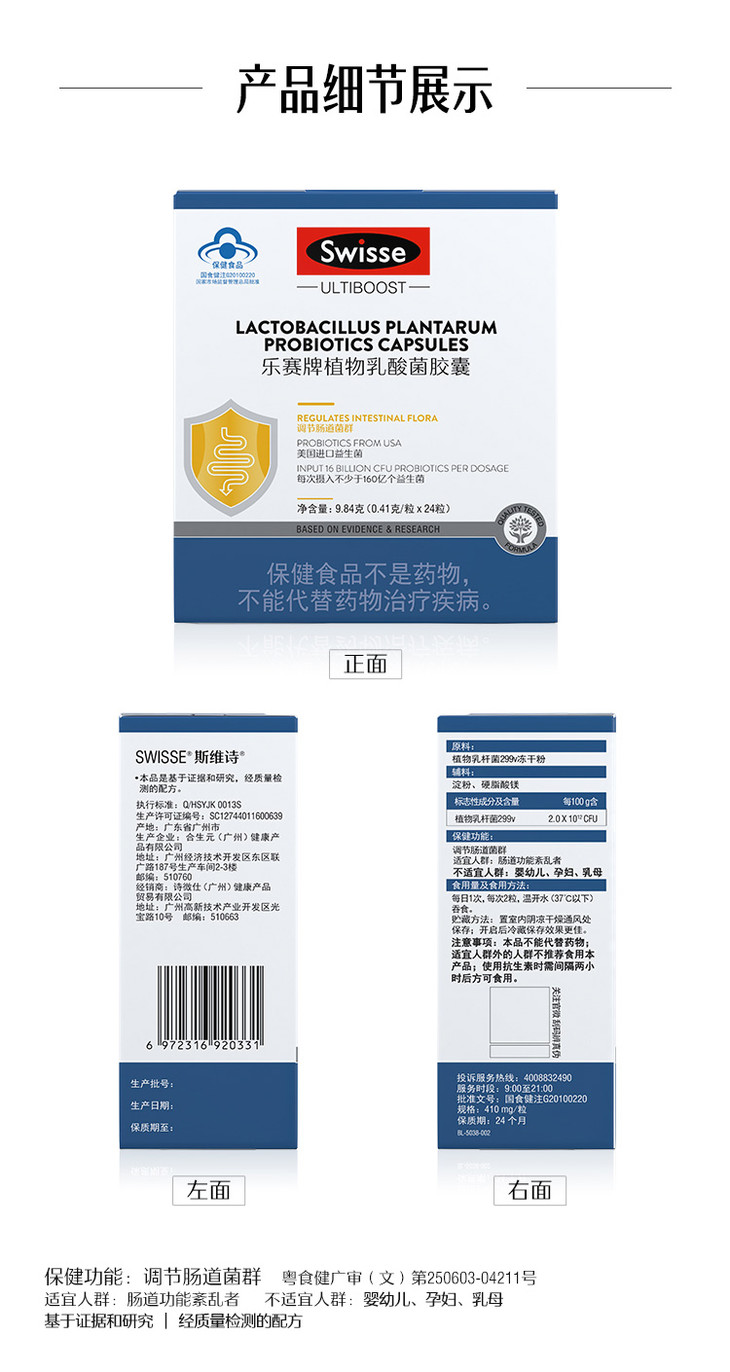 9.84gSwisse乐赛牌植物乳酸菌胶囊