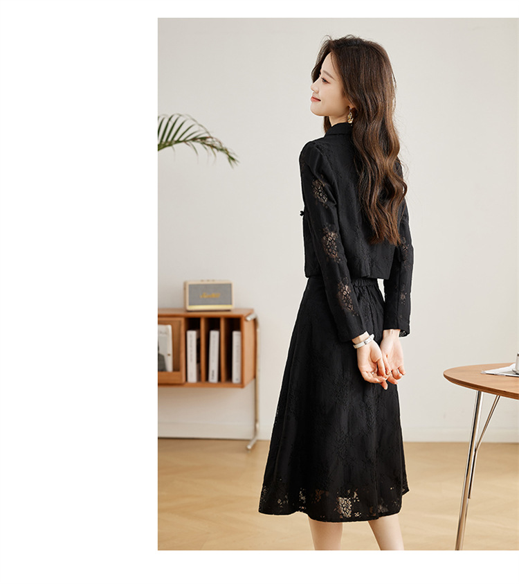 HRWC80079 2024年春季上新气质时尚polo领中式风高腰A字收腰显瘦两件套裙 商品图4
