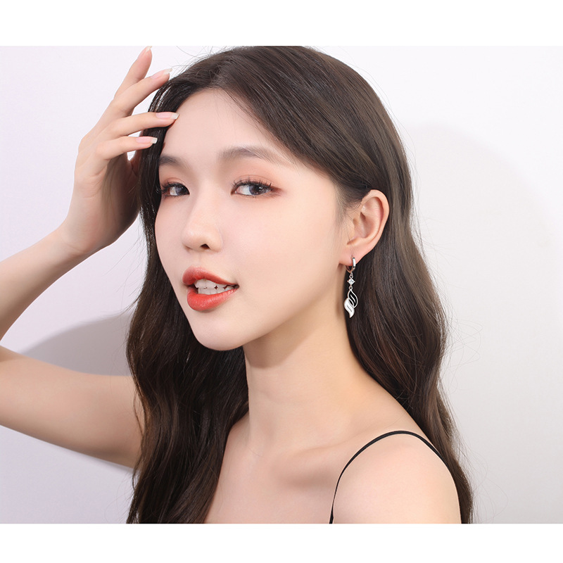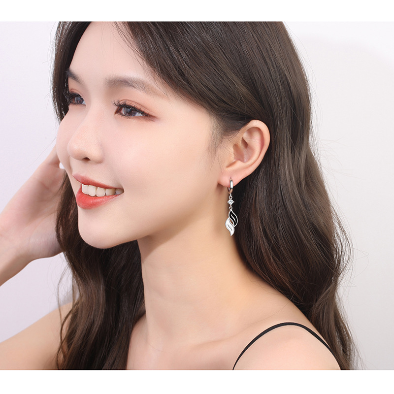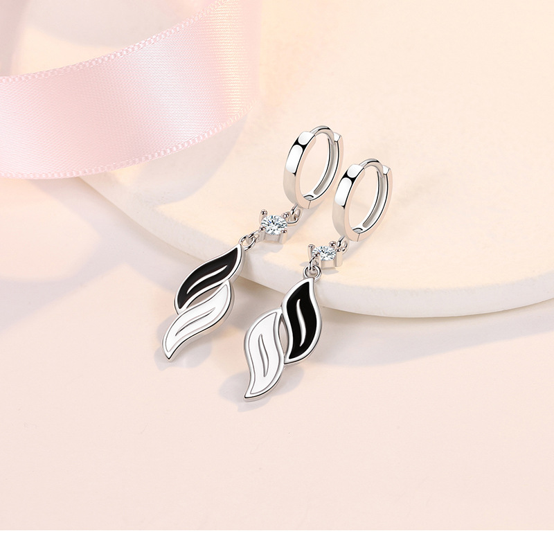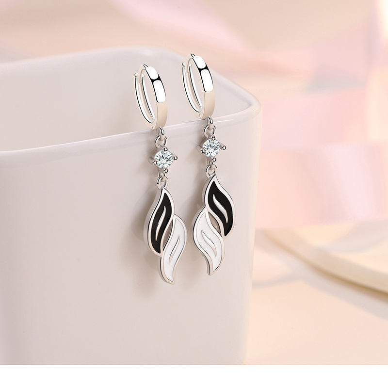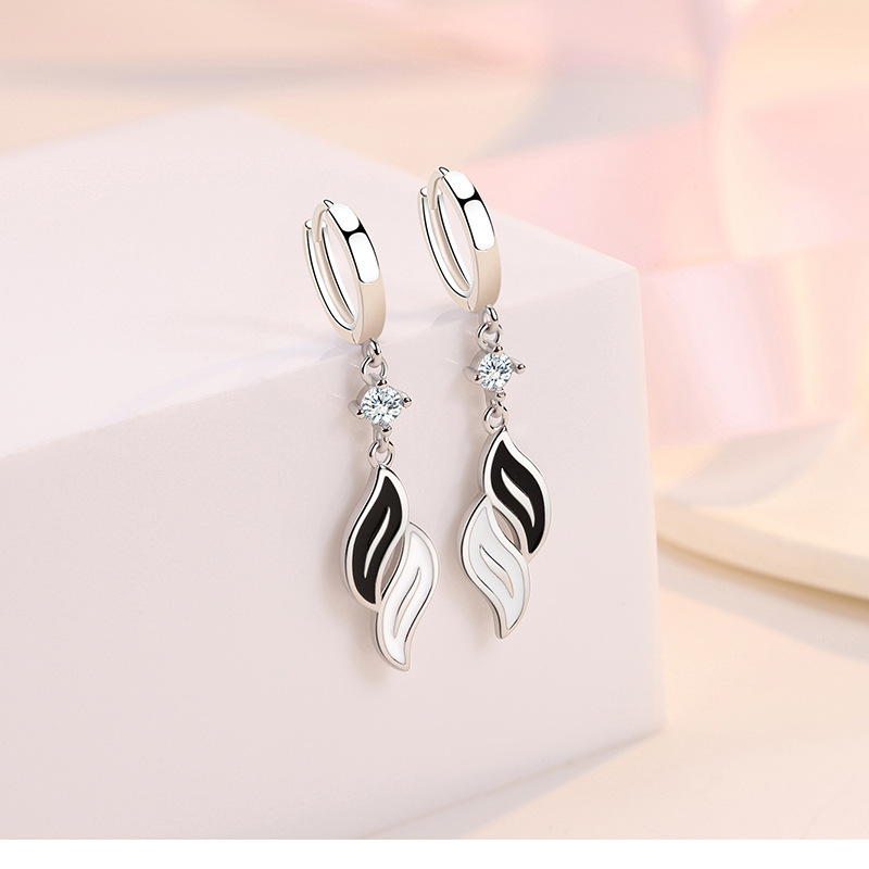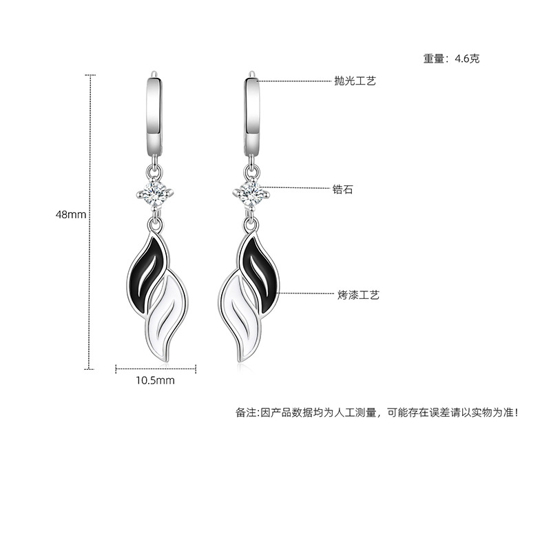 SWZH-EH732镶钻逆流而上耳环相濡以沫耳坠新款黑白时尚长款耳饰