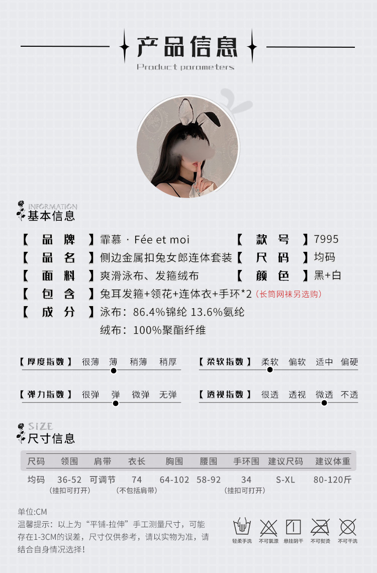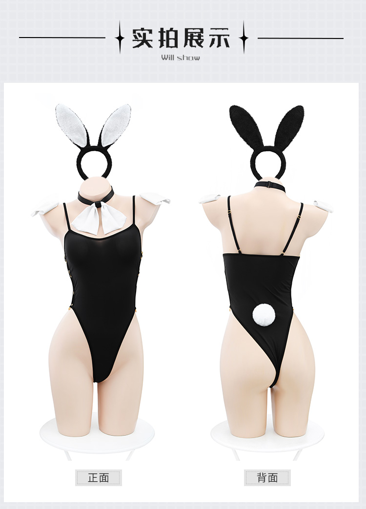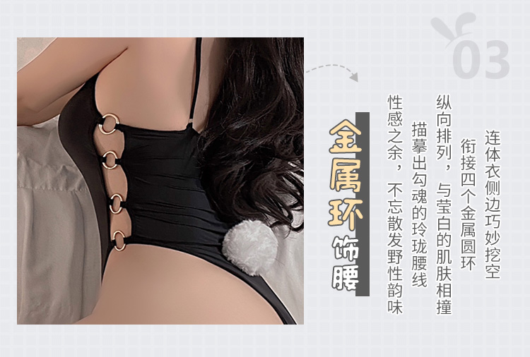 【腰环露臀 尽显婀娜】霏慕侧边金属扣兔女郎连体套装 情趣内衣7995
