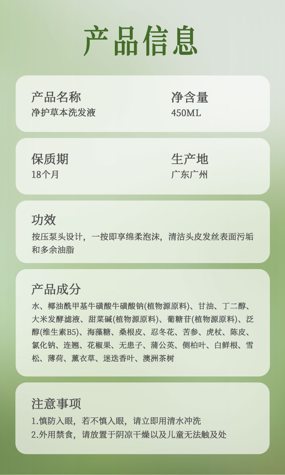 乐活田园净护草本洗发液 一瓶专为头皮护理的植物洗发液