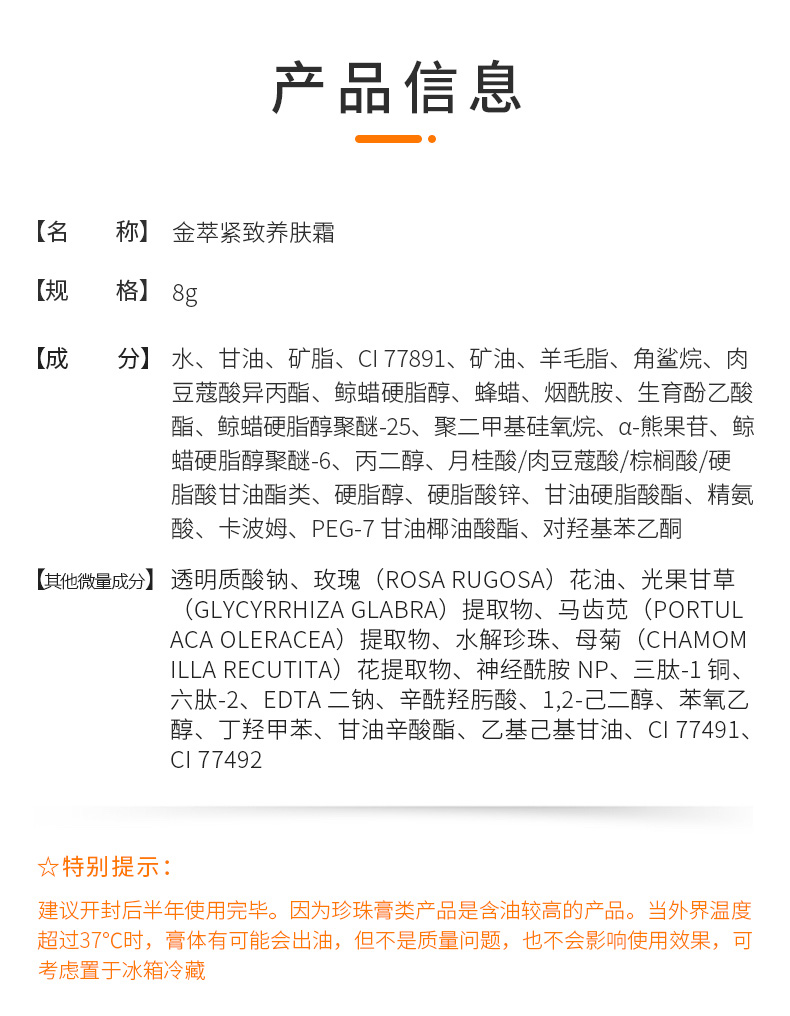 2025升级款!EVER FLORE/老国货 永芳金萃紧致养肤珍珠霜面霜贵妇膏 8g/瓶