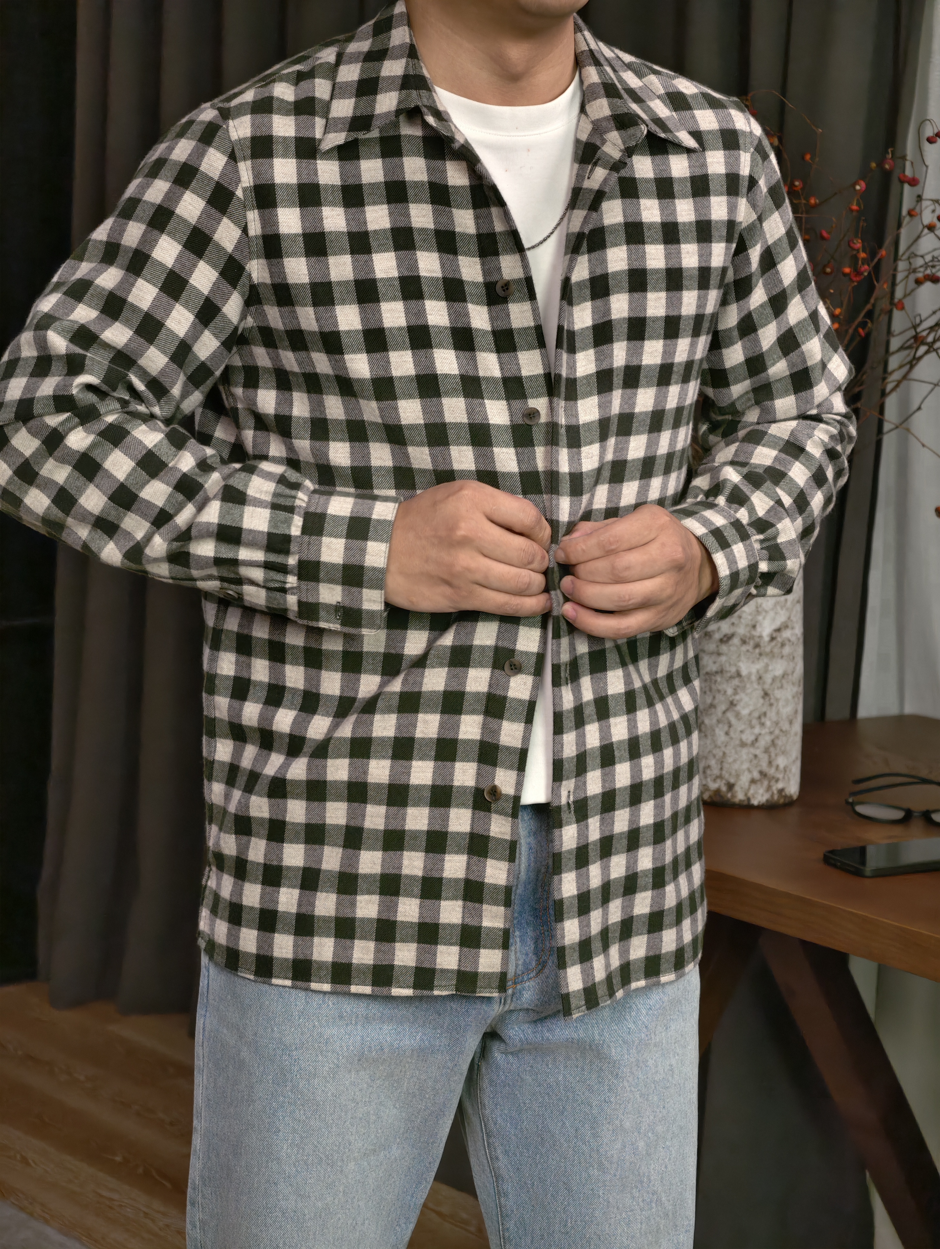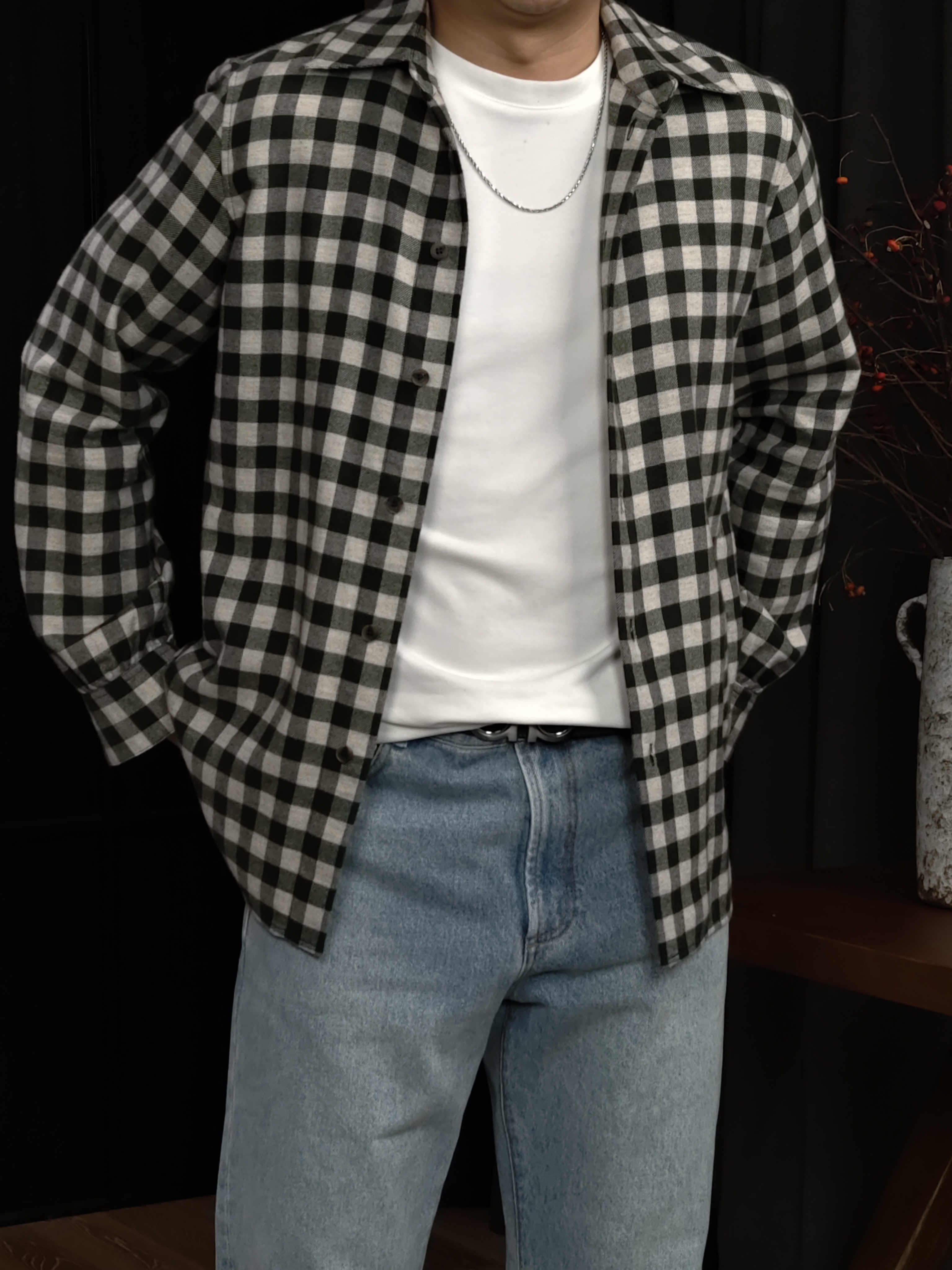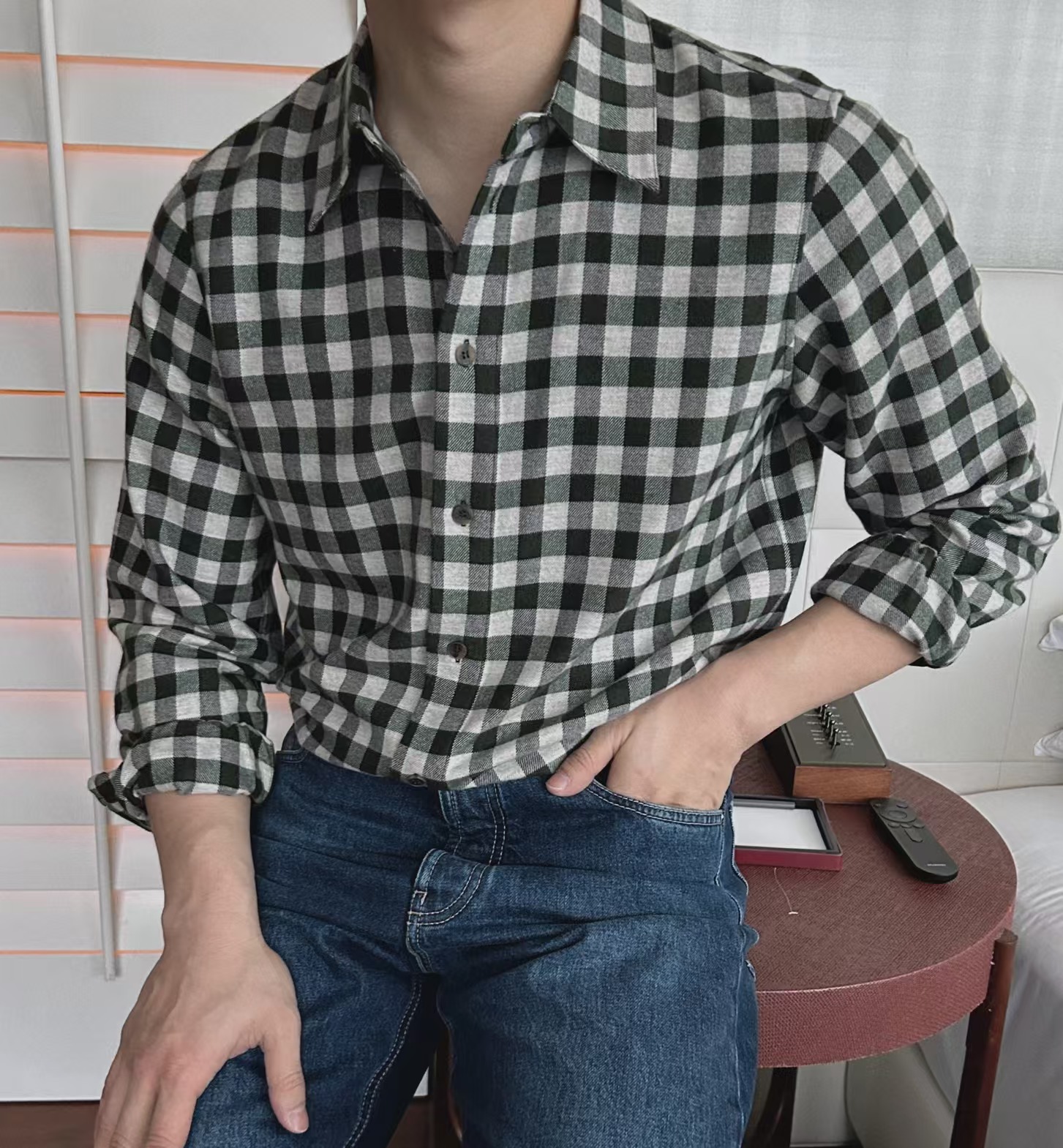 瓜哥私服· 牦牛绒(藏地软黄金)绿色格子polo领衬衣【Lor* piano同款】